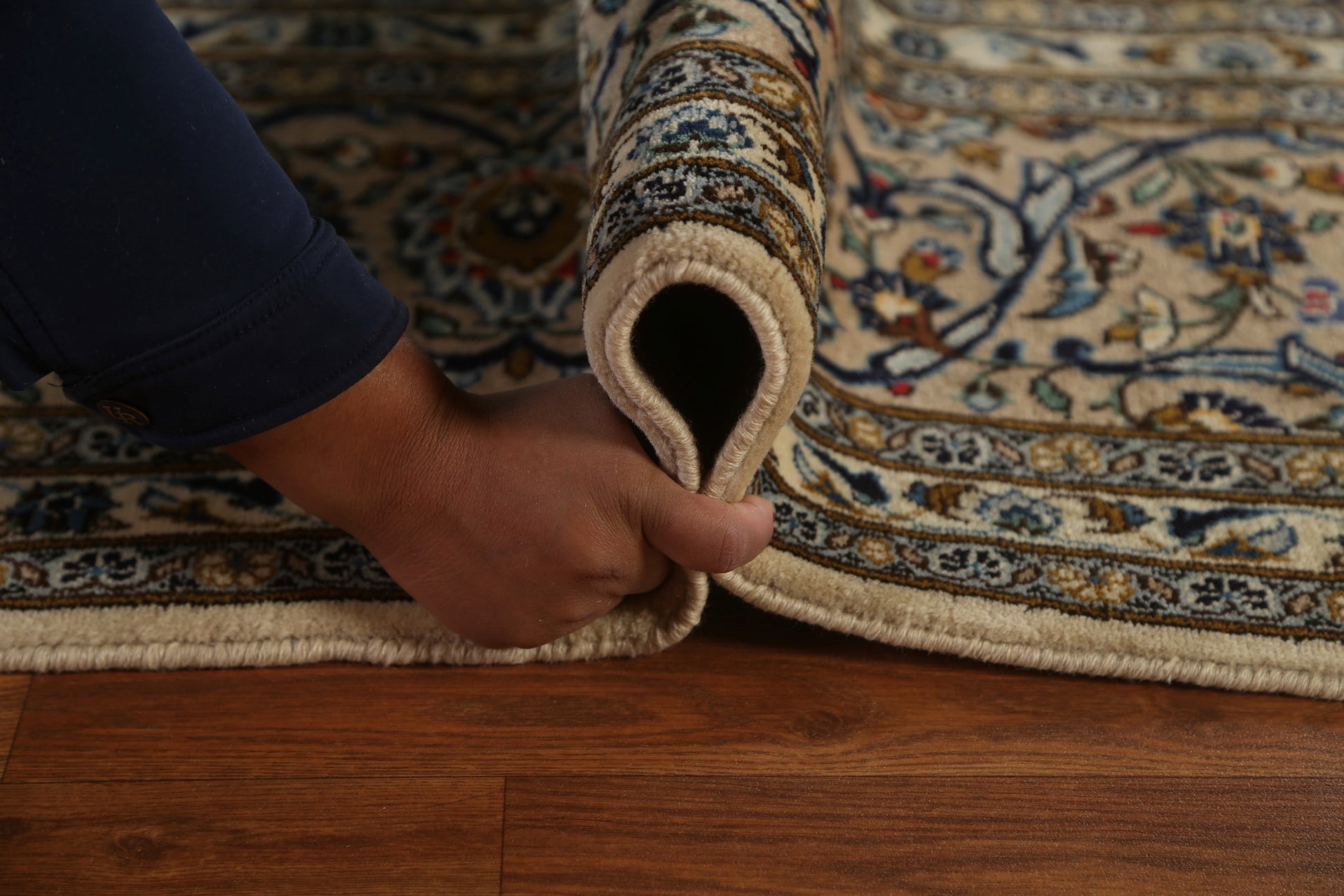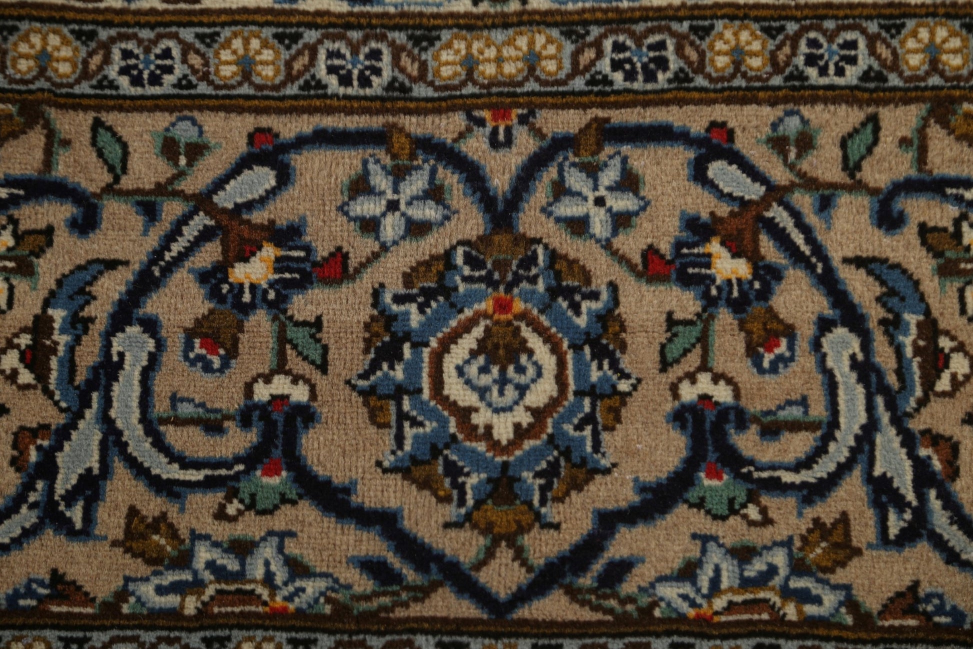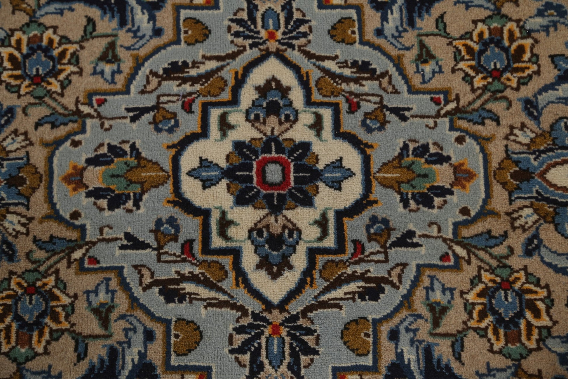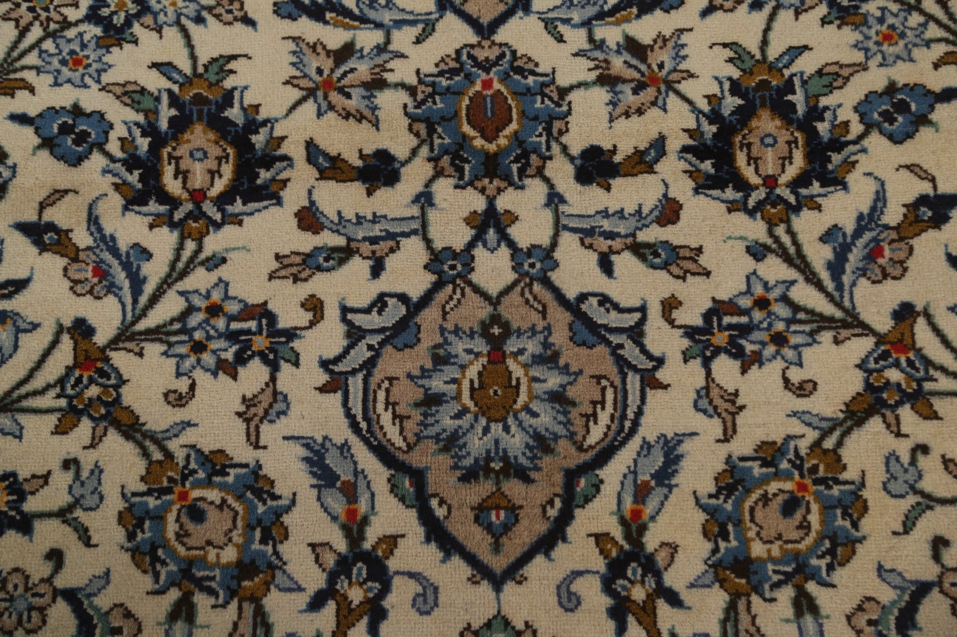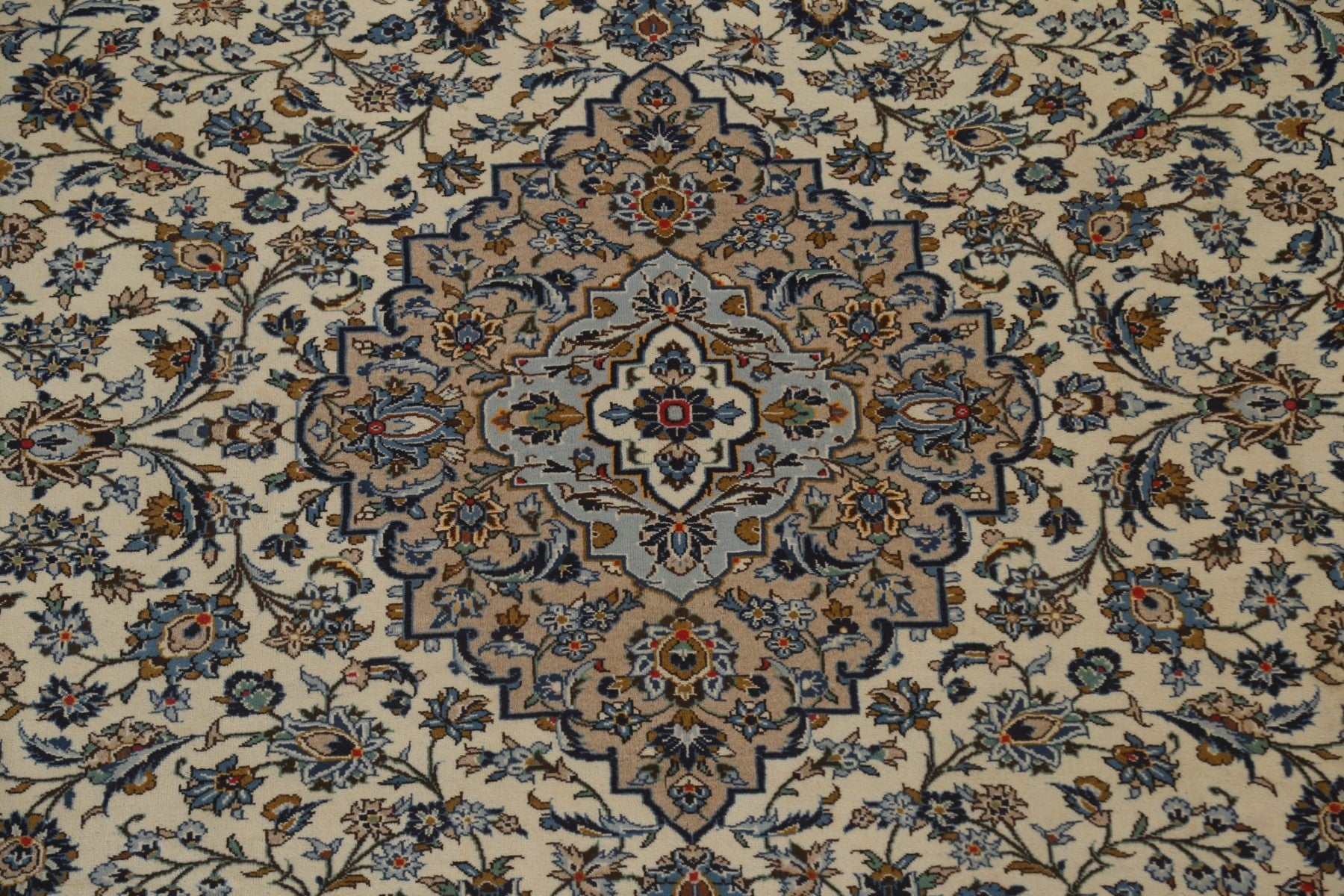 A Beautiful Genuine Persia ( Persia ) Kashan rug is Hand Knotted by skillful weavers in Persia ( Persia ) with 100% Wool Material. This rug is in Very Good condition. dimensions are 13' 3'' X 9' 6'' in foot and 404 X 290 in centimeter. the primary color is Beige & Ivories.