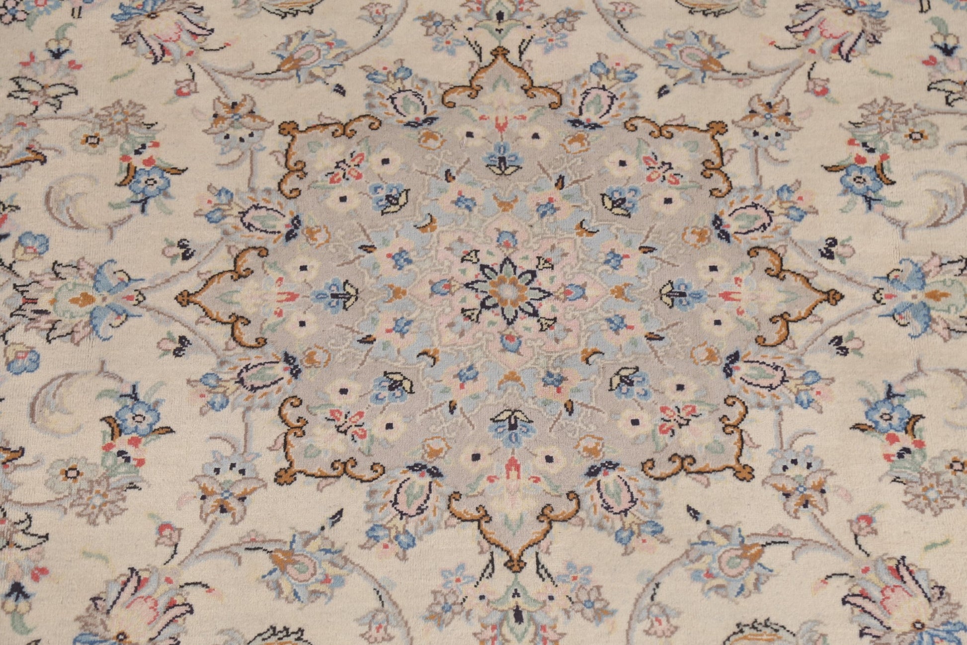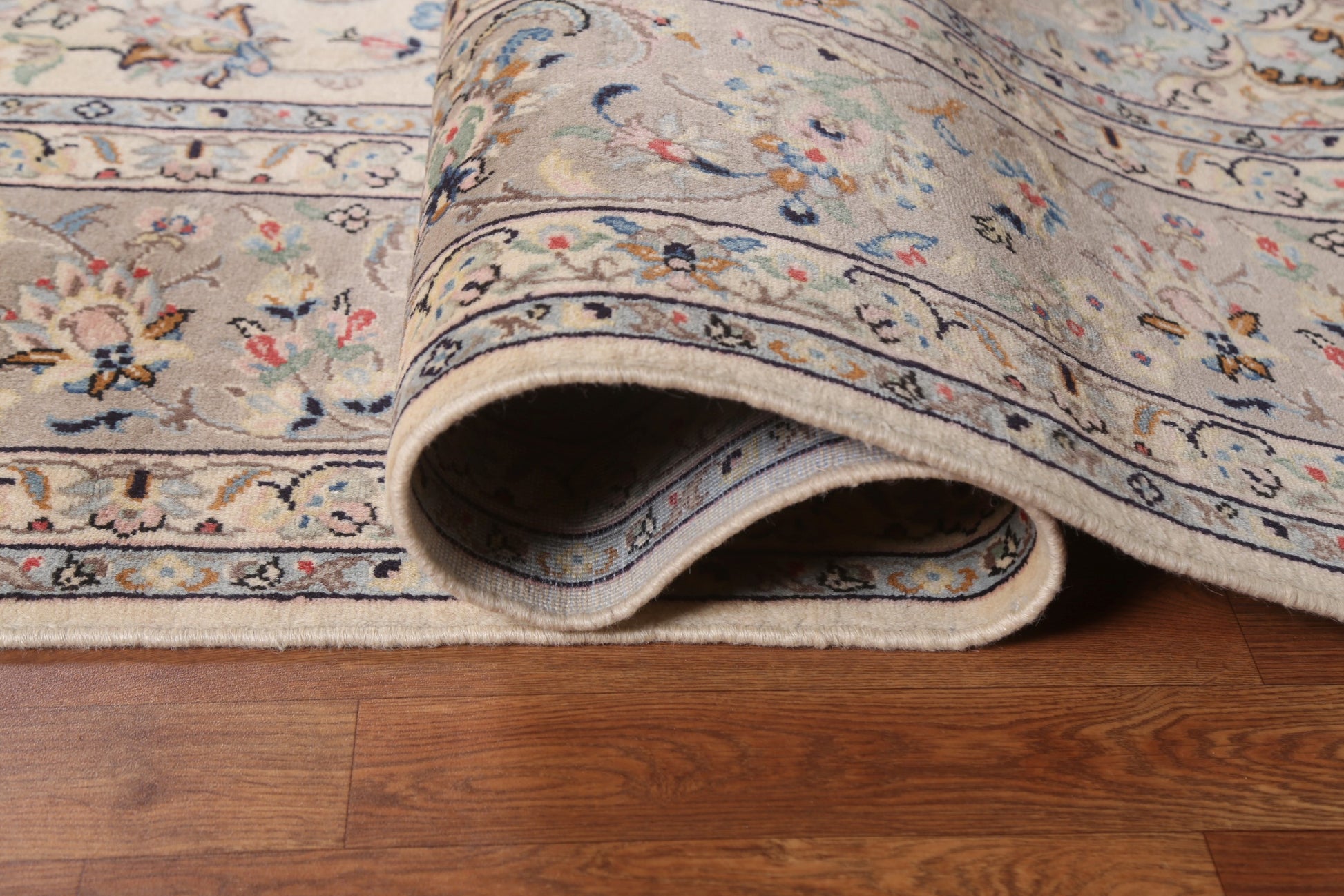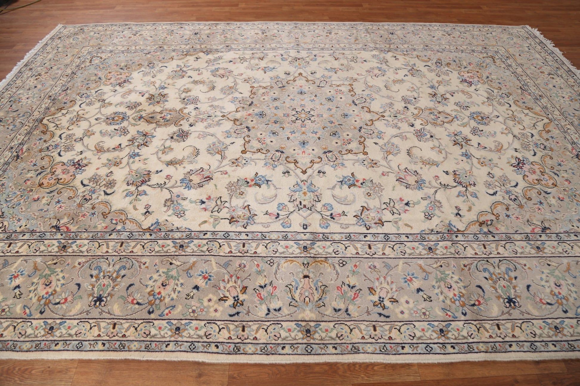 A Beautiful Genuine Persia ( Persia ) Kashan rug is Hand Knotted by skillful weavers in Persia ( Persia ) with 100% Wool Material. This rug is in Very Good condition. dimensions are 11' 4'' X 8' 0'' in foot and 345 X 244 in centimeter. the primary color is Beige & Ivories.