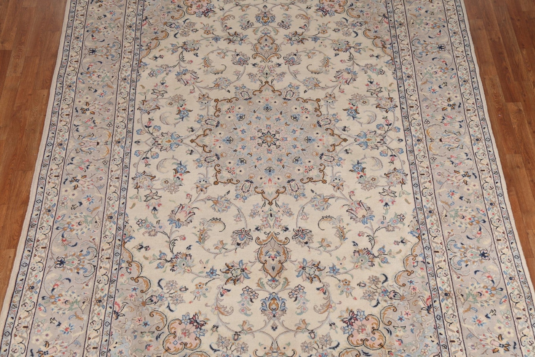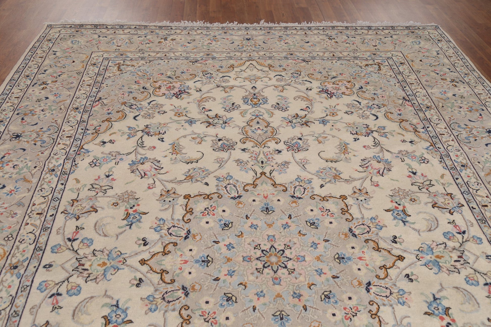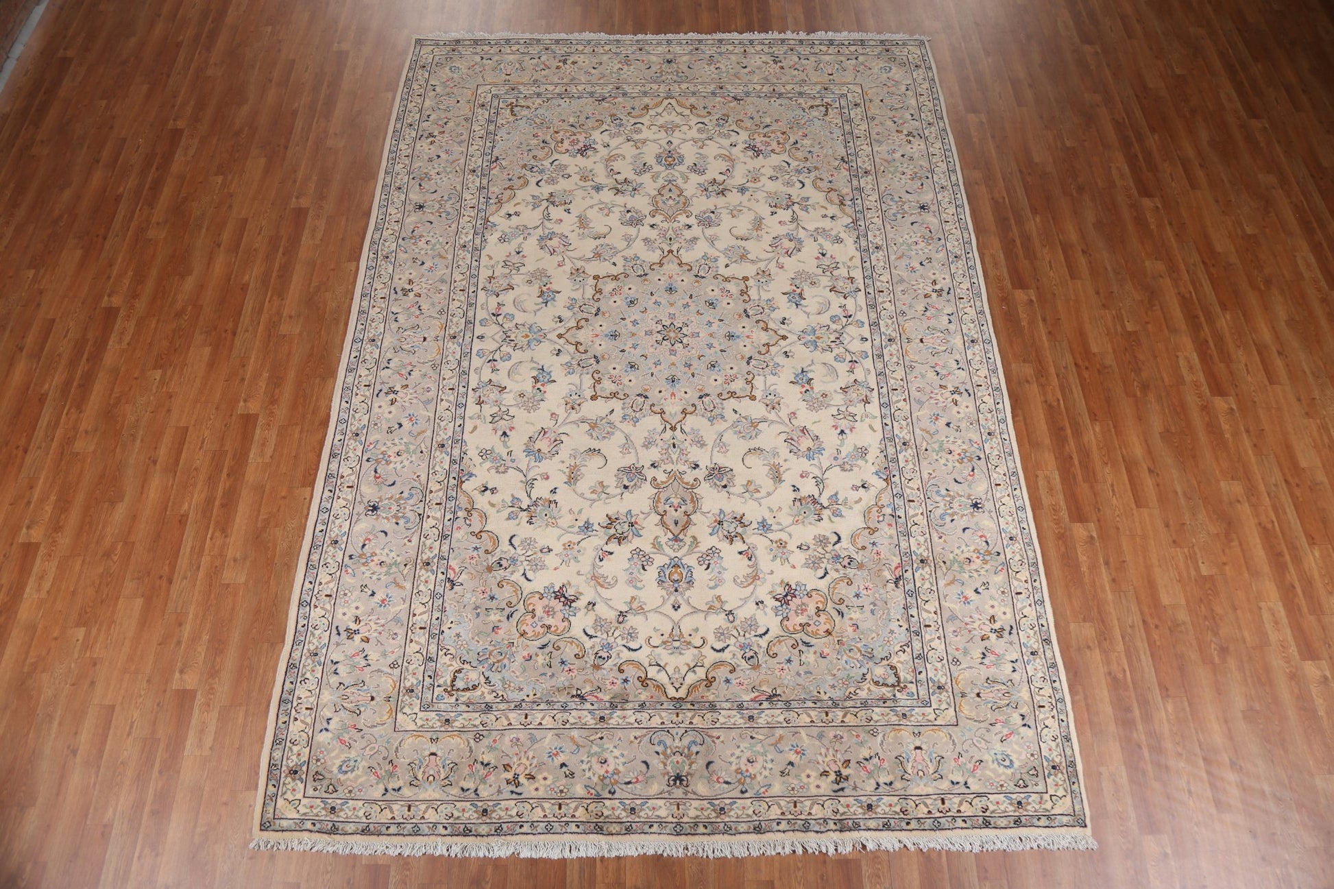 A Beautiful Genuine Persia ( Persia ) Kashan rug is Hand Knotted by skillful weavers in Persia ( Persia ) with 100% Wool Material. This rug is in Very Good condition. dimensions are 11' 4'' X 8' 0'' in foot and 345 X 244 in centimeter. the primary color is Beige & Ivories.