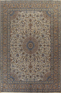 A Beautiful Genuine Persia ( Persia ) Kashmar rug is Hand Knotted by skillful weavers in Persia ( Persia ) with 100% Wool Material. This rug is in Very Good condition. dimensions are 13' 2'' X 9' 6'' in foot and 401 X 290 in centimeter. the primary color is Beige & Ivories.