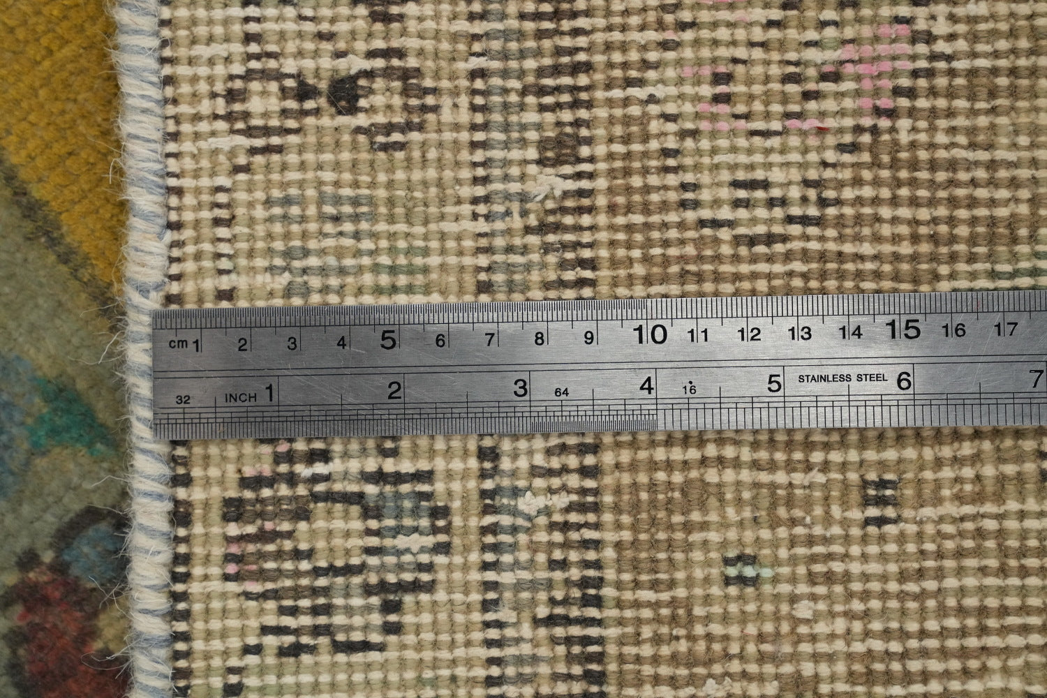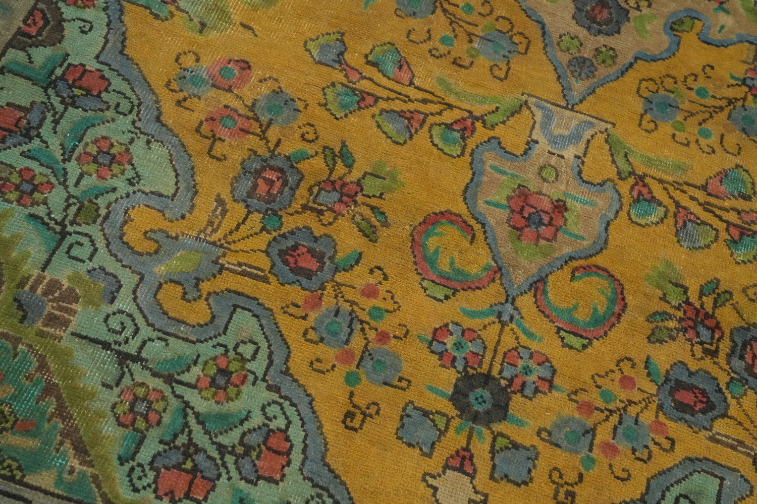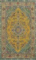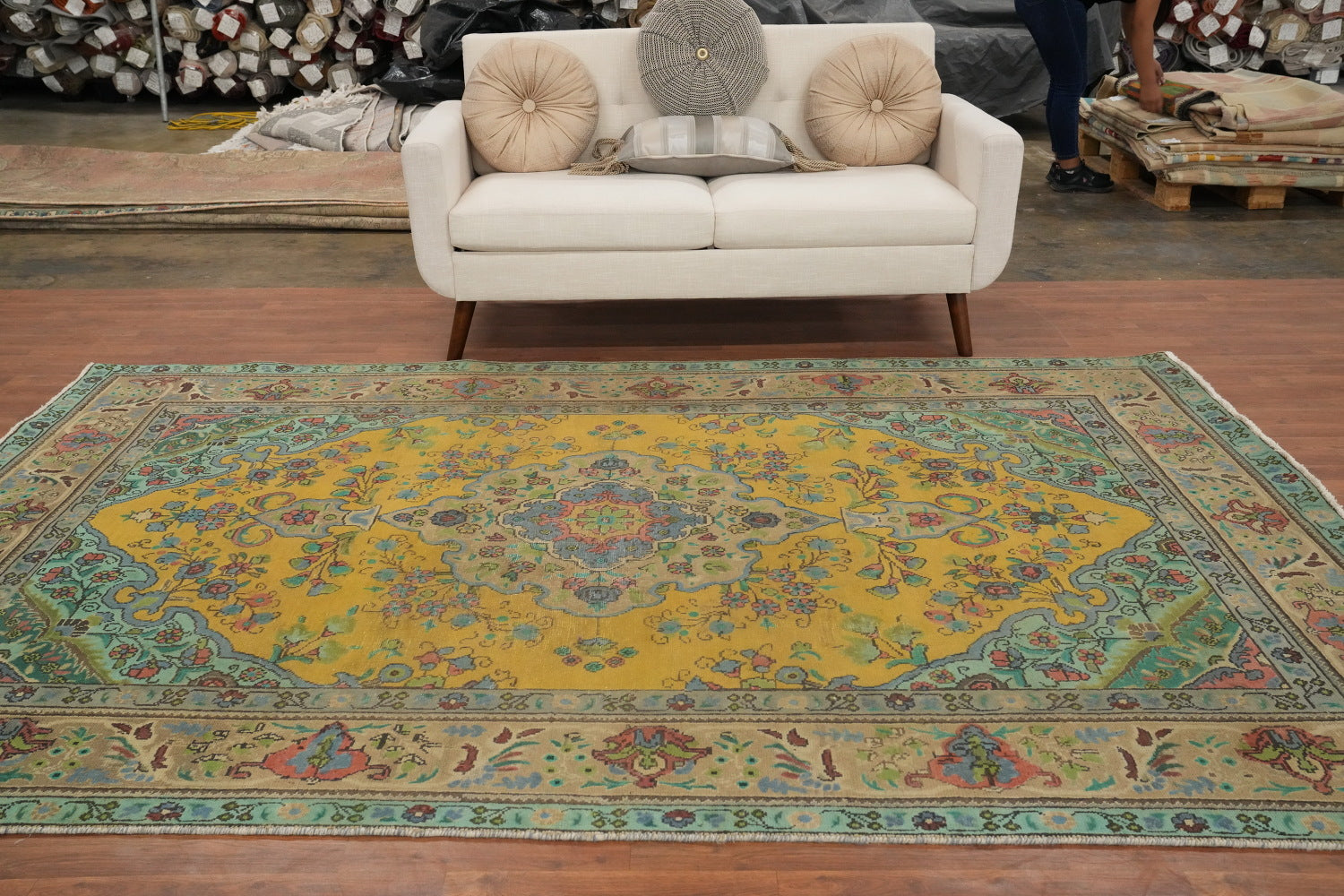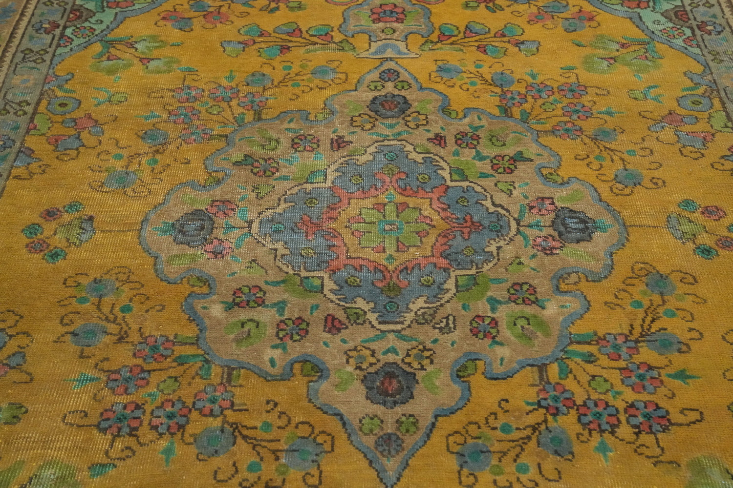 A Beautiful Genuine Persia ( Persia ) Tabriz rug is Hand Knotted by skillful weavers in Persia ( Persia ) with 100% Wool Material. This rug is in Very Good (Evenly Low Pile) condition. dimensions are 9' 10'' X 6' 7'' in foot and 300 X 201 in centimeter. the primary color is Yellow & Gold.