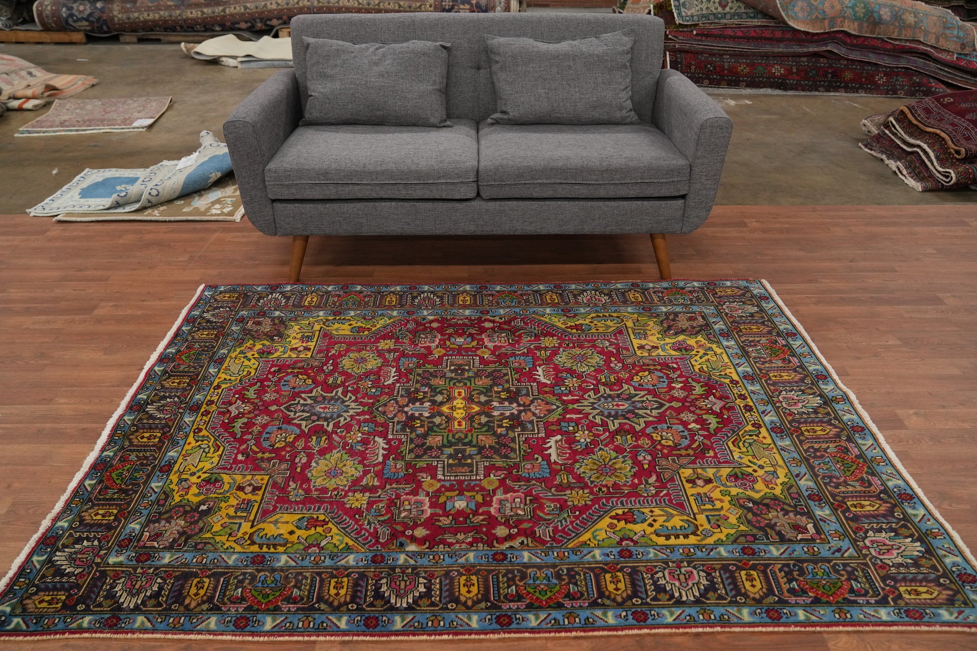A Beautiful Genuine Persia ( Persia ) Tabriz rug is Hand Knotted by skillful weavers in Persia ( Persia ) with 100% Wool Material. This rug is in Very Good (Evenly Low Pile) condition. dimensions are 6' 9'' X 4' 9'' in foot and 206 X 145 in centimeter. the primary color is Red.