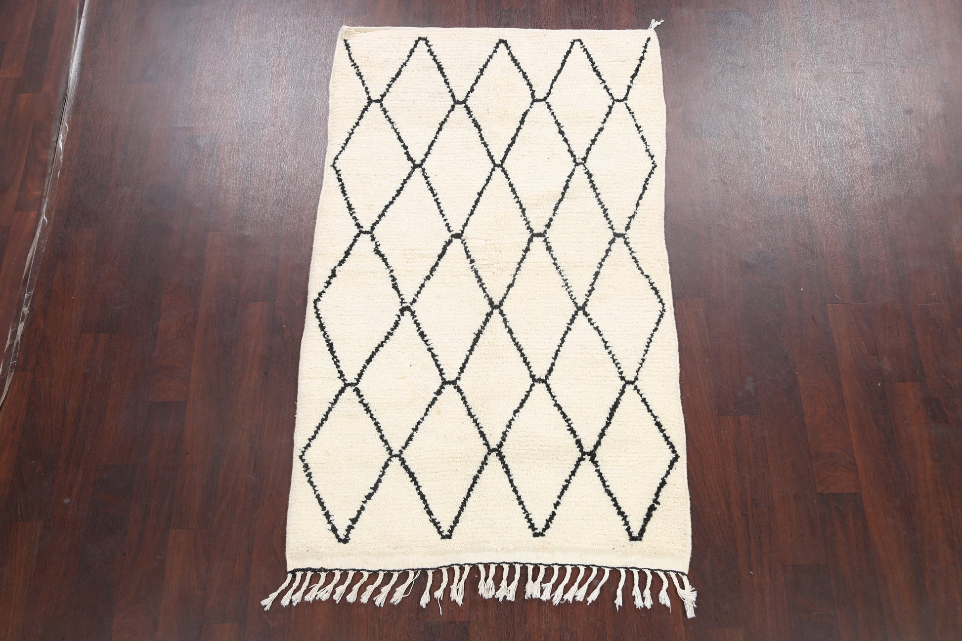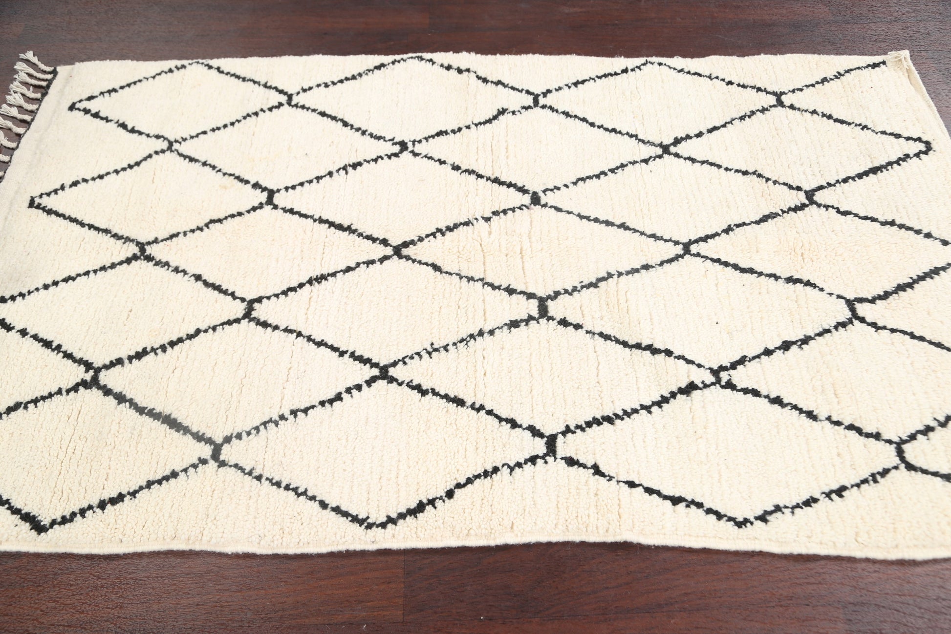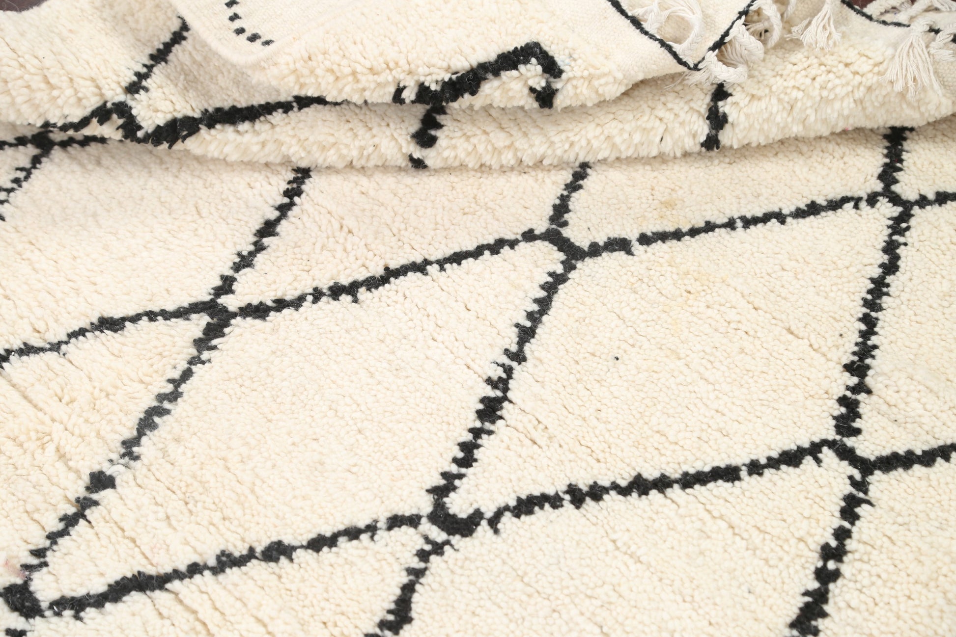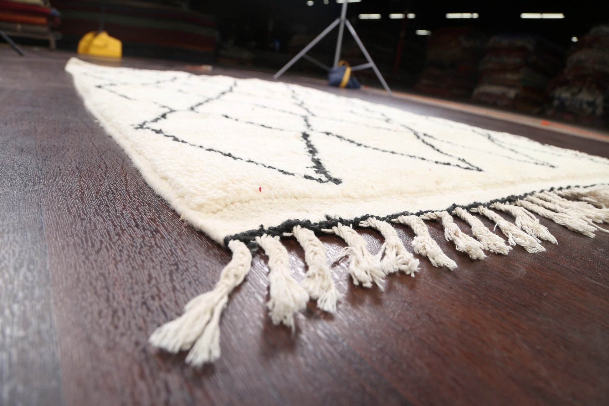 A Beautiful Genuine Morocco Moroccan rug is Hand Knotted by skillful weavers in Morocco with 100% Wool Material. This rug is in New, First Quality condition. dimensions are 6' 4'' X 3' 9'' in foot and 193 X 114 in centimeter. the primary color is Beige & Ivories.