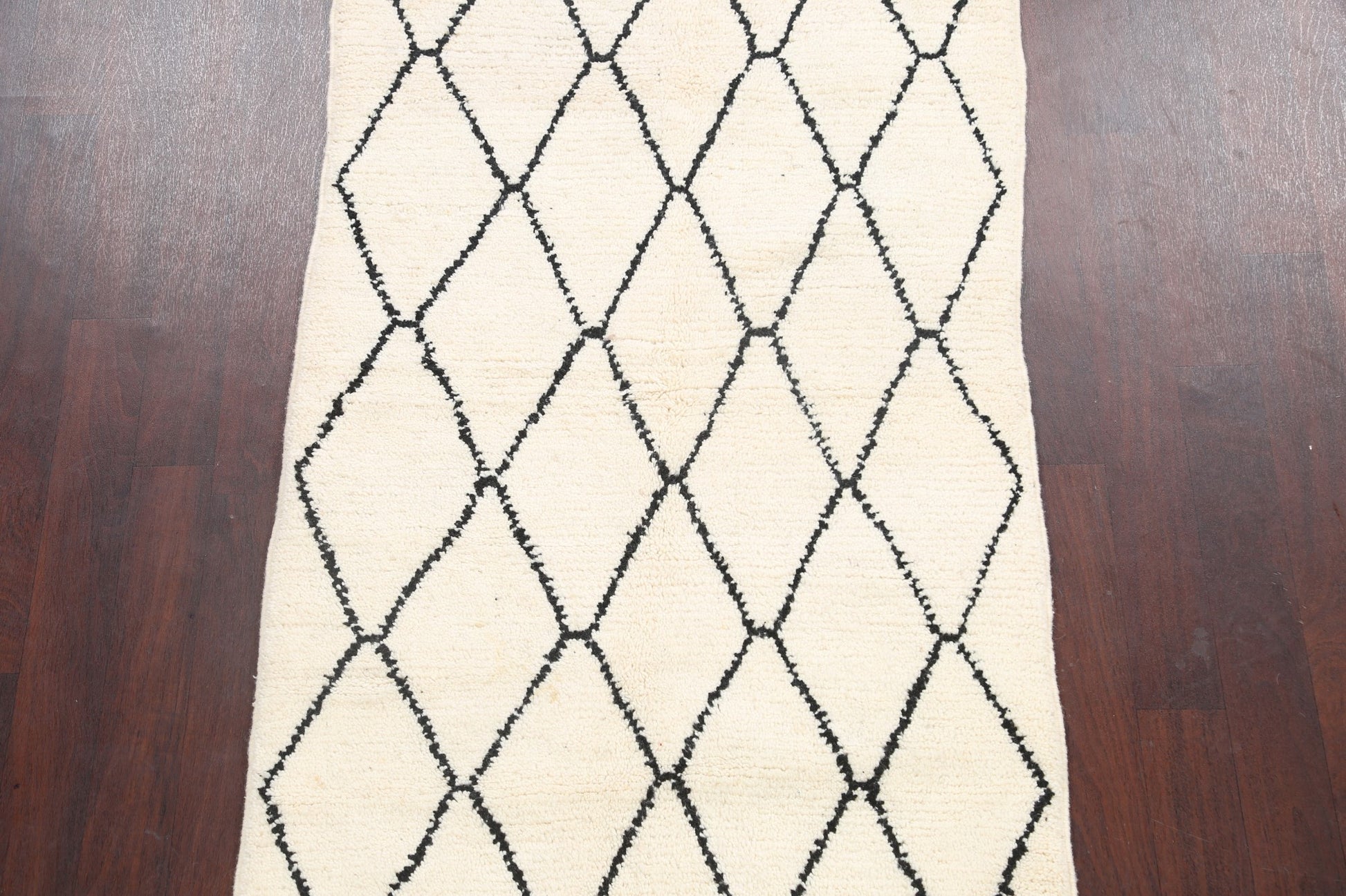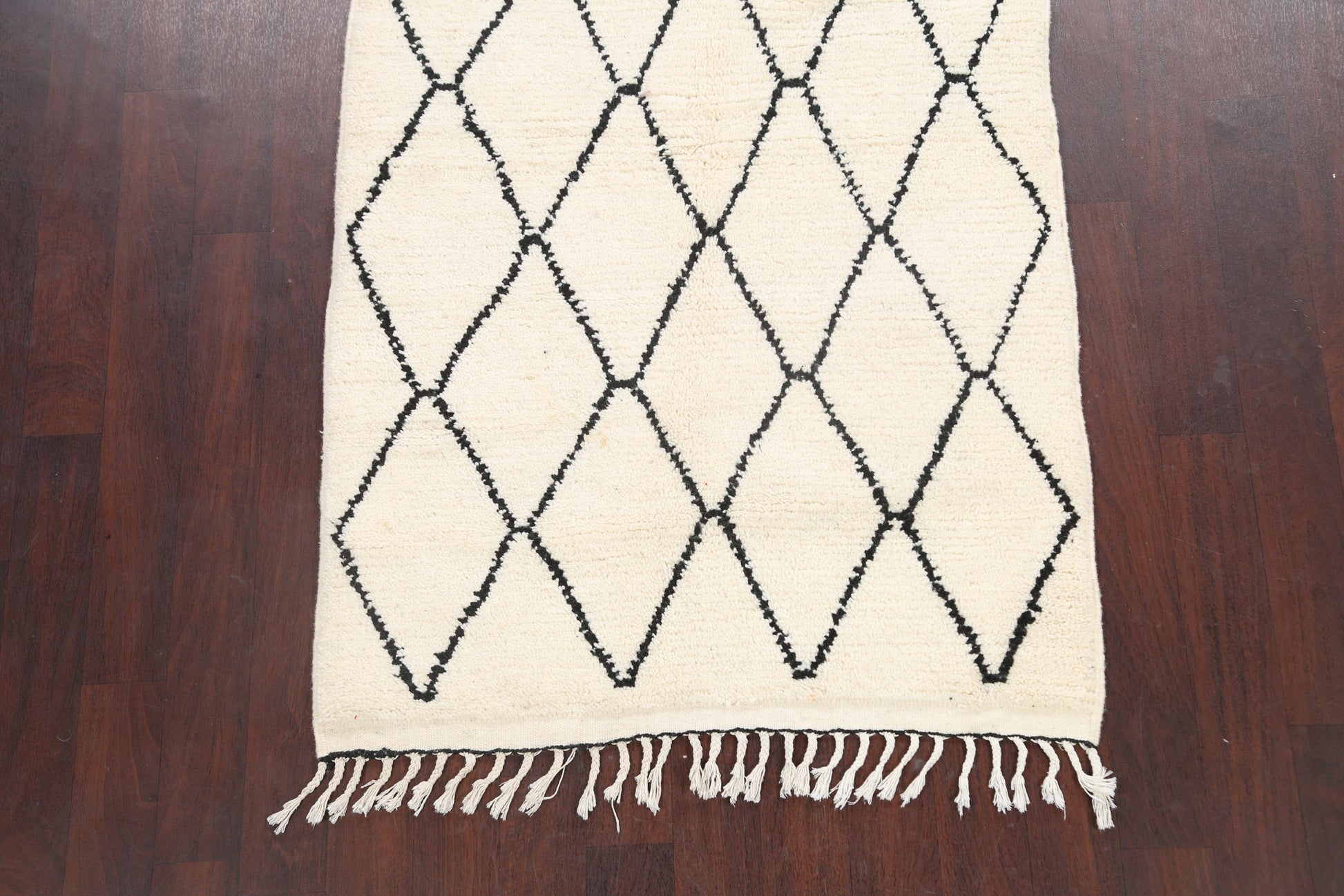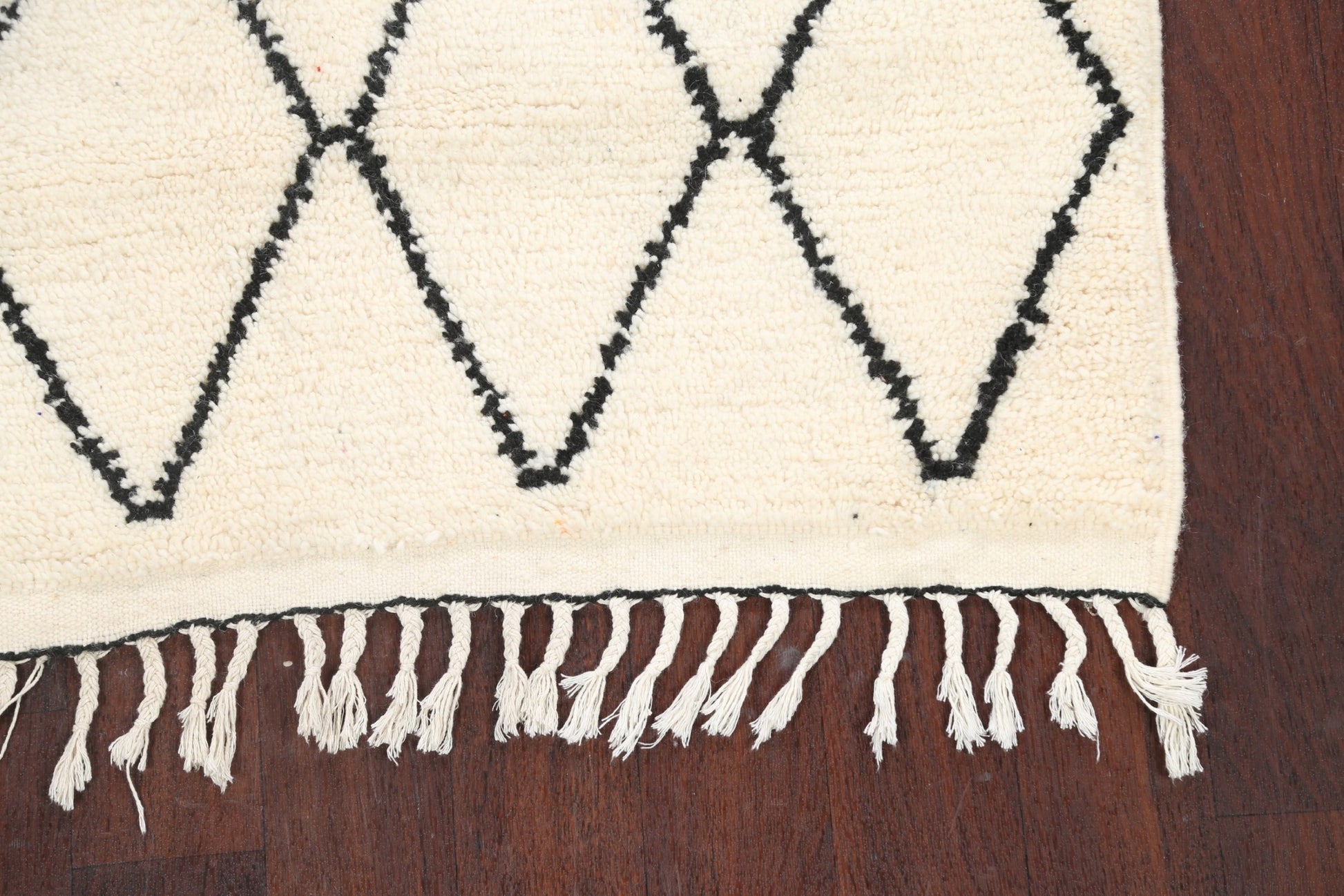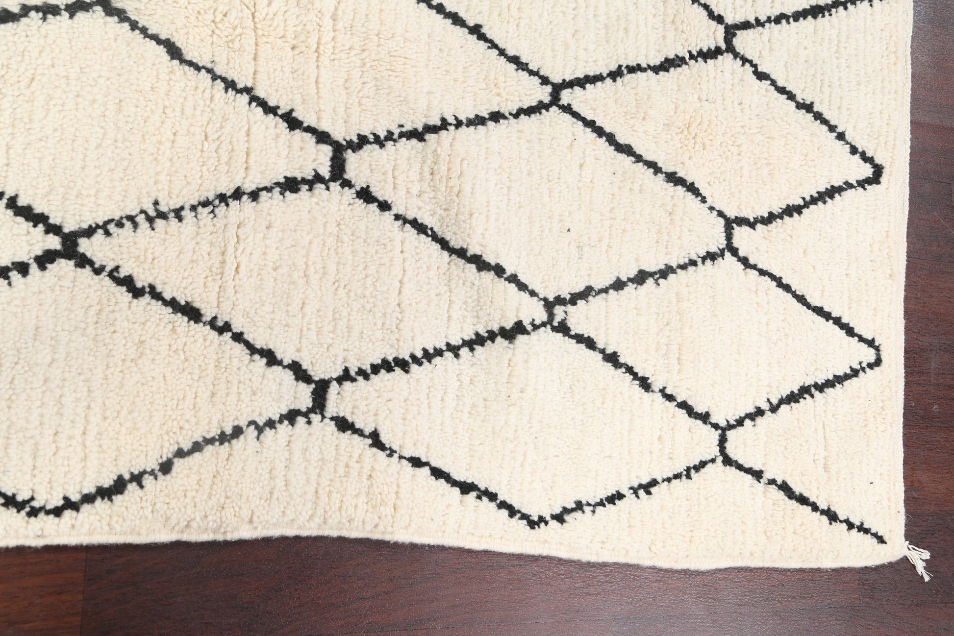 A Beautiful Genuine Morocco Moroccan rug is Hand Knotted by skillful weavers in Morocco with 100% Wool Material. This rug is in New, First Quality condition. dimensions are 6' 4'' X 3' 9'' in foot and 193 X 114 in centimeter. the primary color is Beige & Ivories.