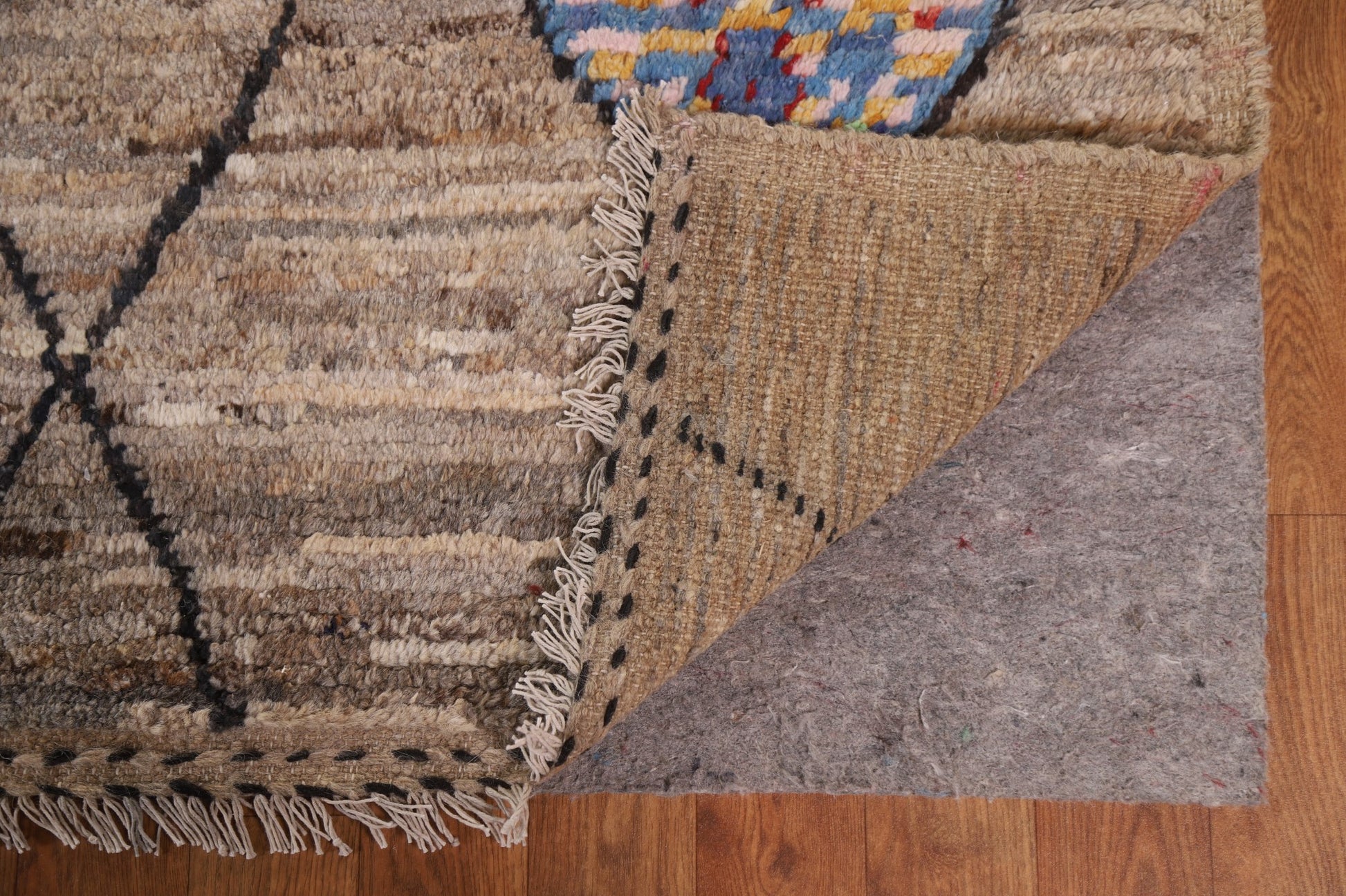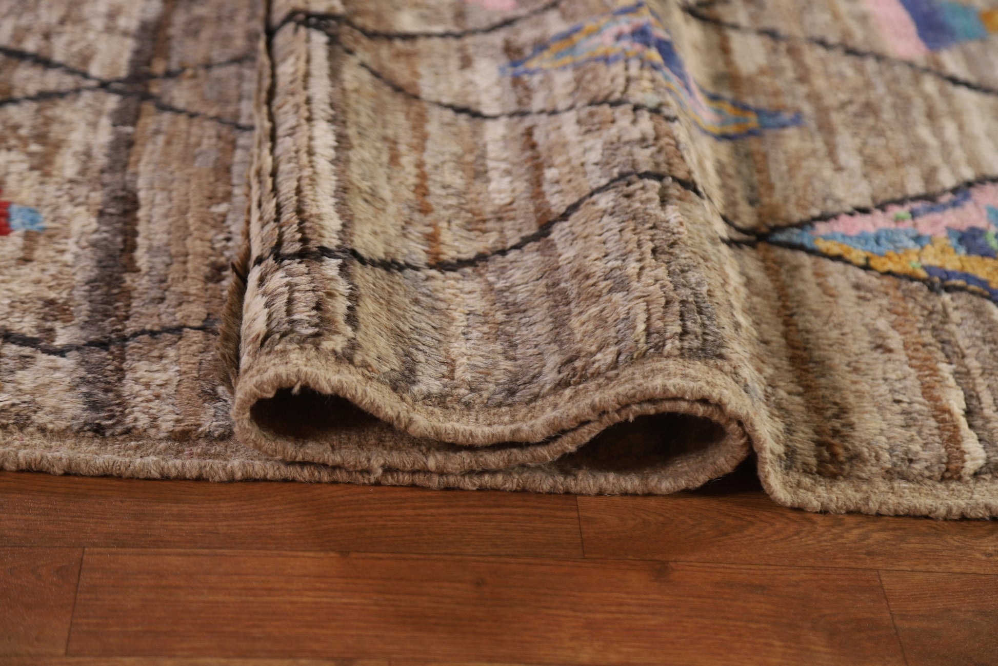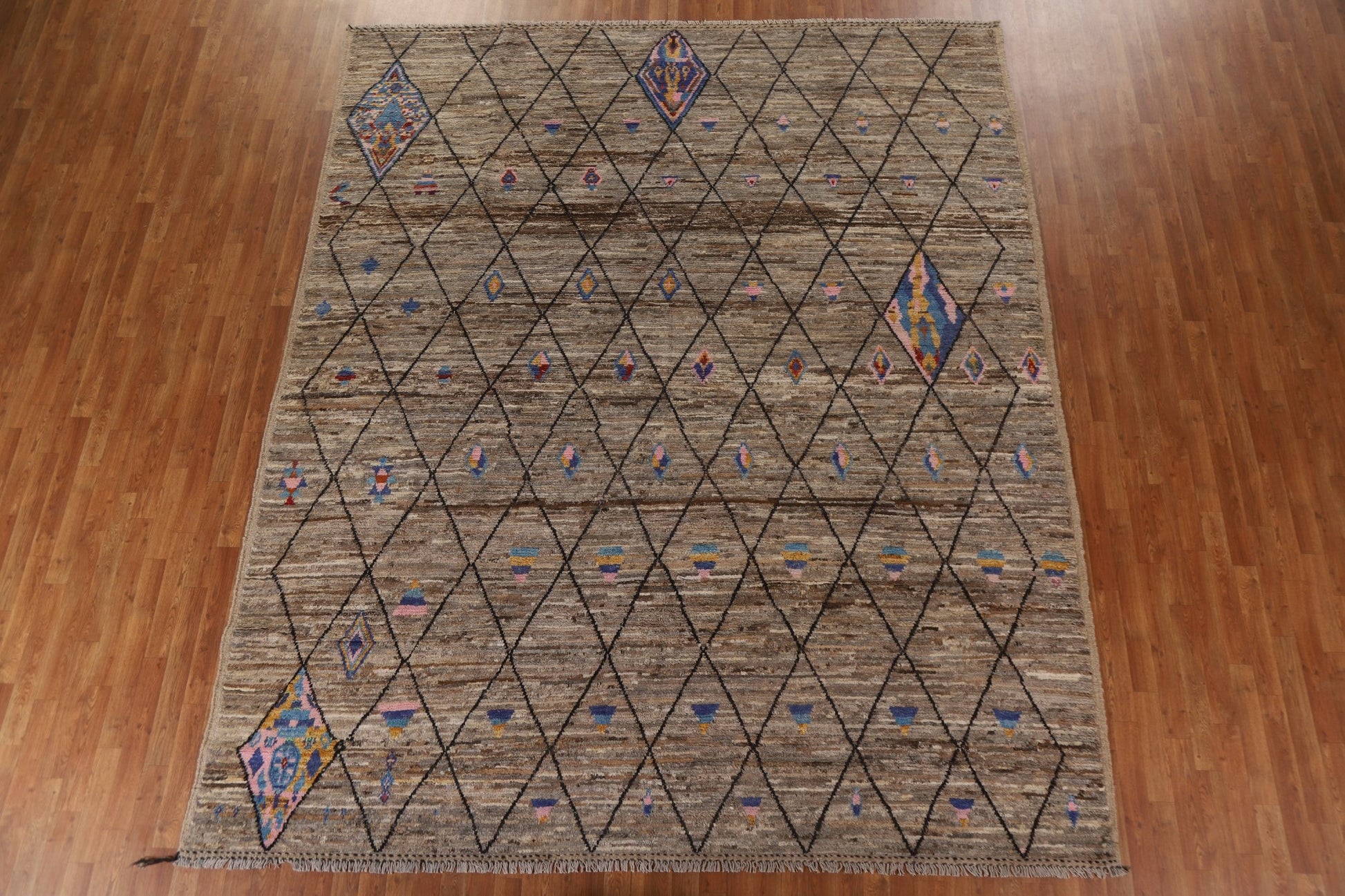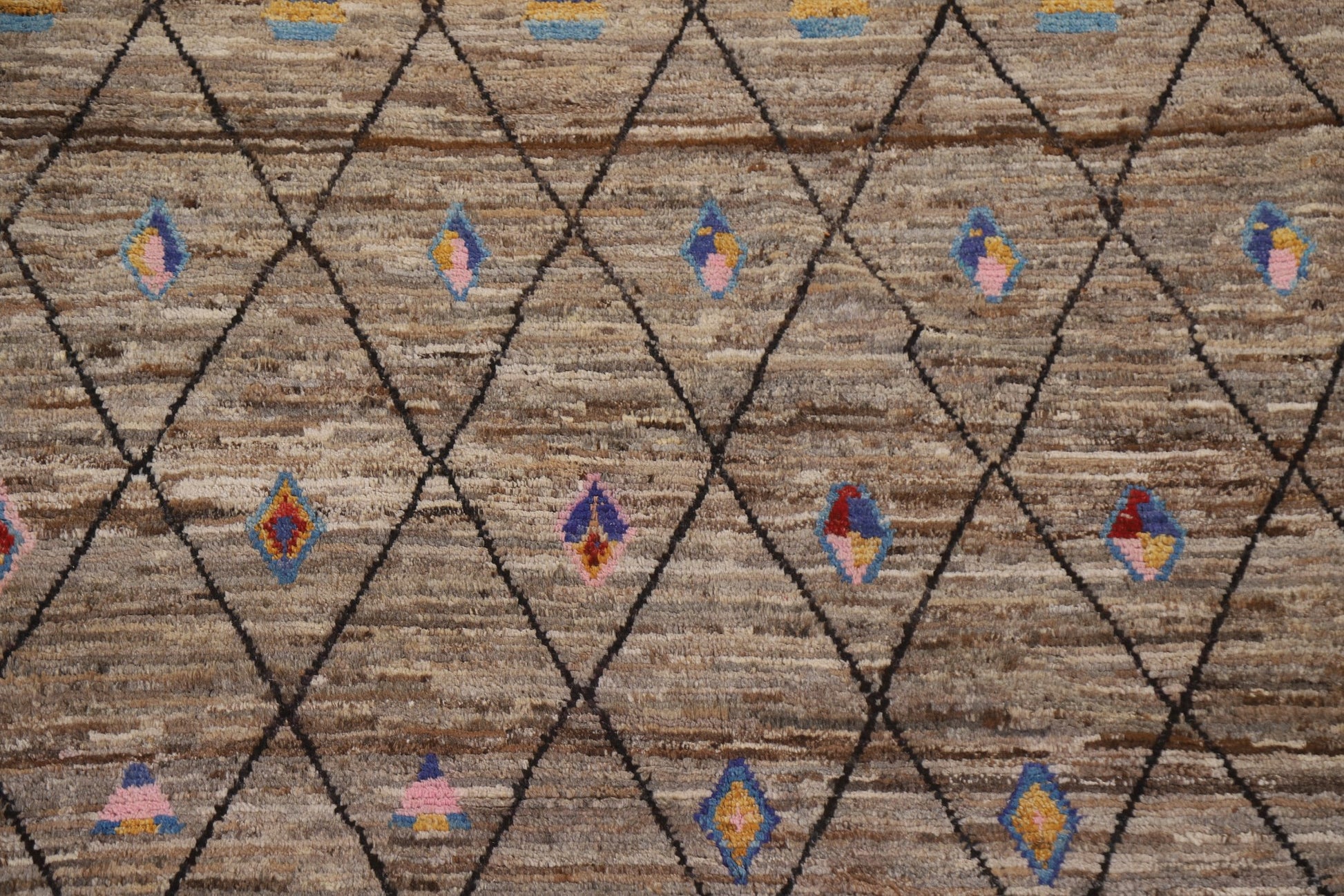 A Beautiful Genuine Pakistan Moroccan rug is Hand Knotted by skillful weavers in Pakistan with 100% Wool Material. This rug is in condition. dimensions are 11' 7'' X 9' 7'' in foot and 353 X 292 in centimeter. the primary color is Brown.