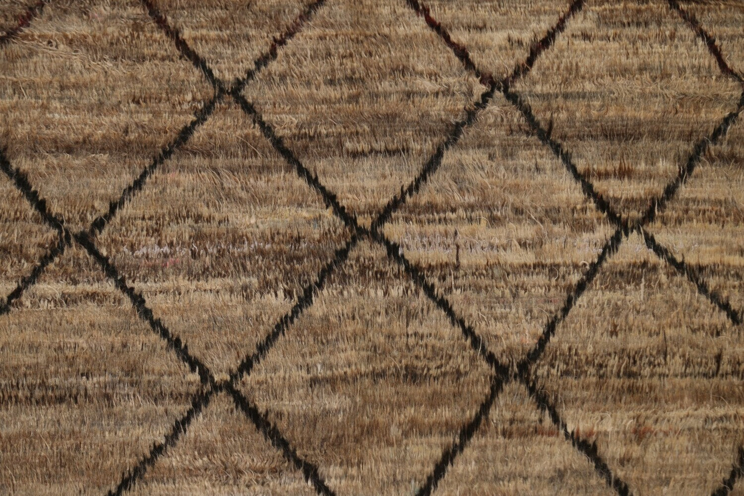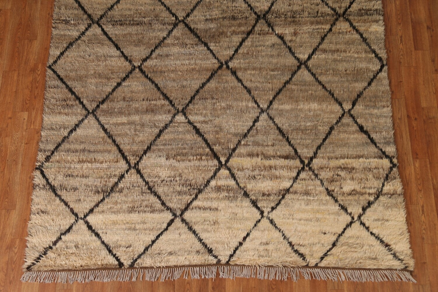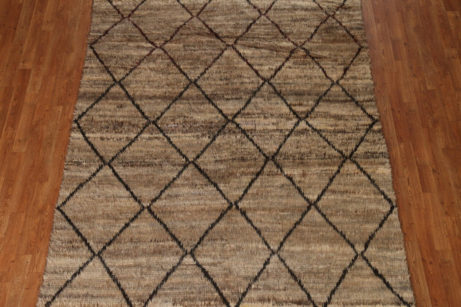 A Beautiful Genuine Pakistan Moroccan rug is Hand Knotted by skillful weavers in Pakistan with 100% Wool Material. This rug is in condition. dimensions are 9' 9'' X 6' 4'' in foot and 297 X 193 in centimeter. the primary color is Brown.
