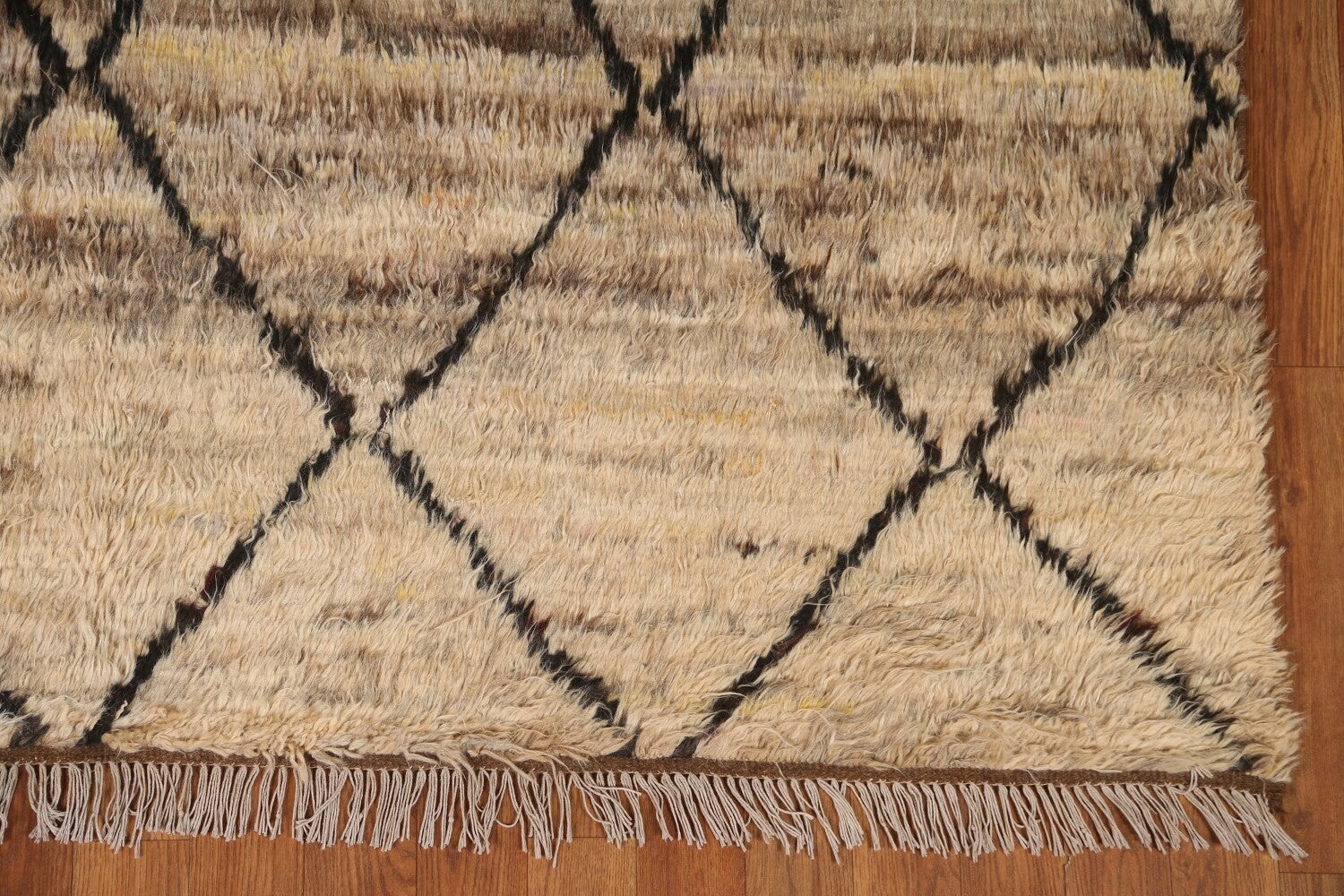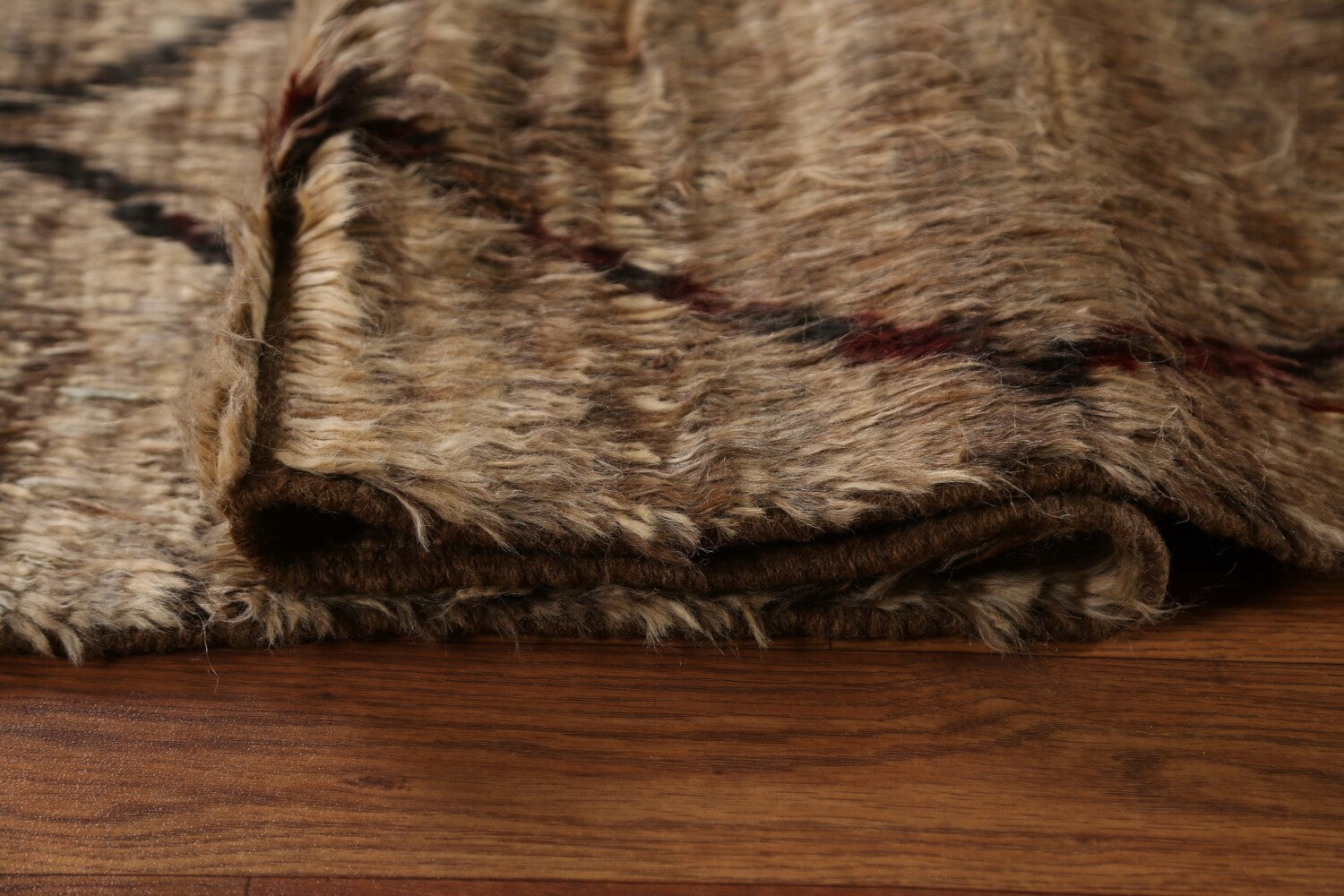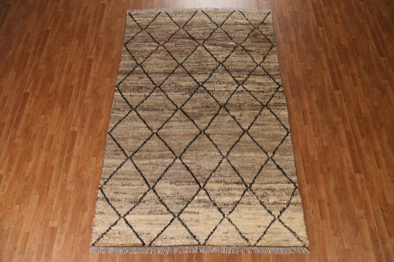 A Beautiful Genuine Pakistan Moroccan rug is Hand Knotted by skillful weavers in Pakistan with 100% Wool Material. This rug is in condition. dimensions are 9' 9'' X 6' 4'' in foot and 297 X 193 in centimeter. the primary color is Brown.