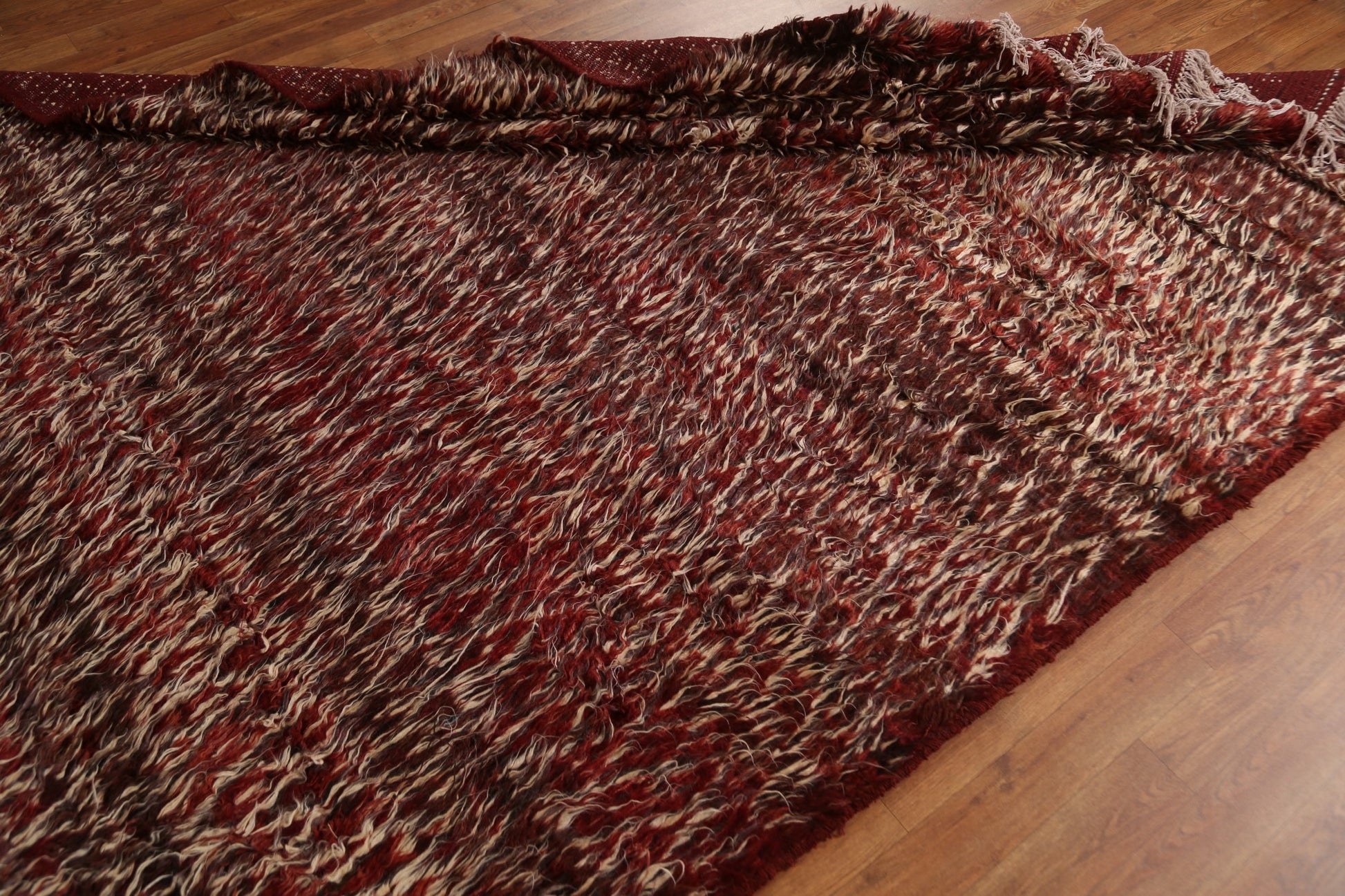 A Beautiful Genuine Pakistan Moroccan rug is Hand Knotted by skillful weavers in Pakistan with 100% Wool Material. This rug is in condition. dimensions are 9' 8'' X 6' 8'' in foot and 295 X 203 in centimeter. the primary color is Red.