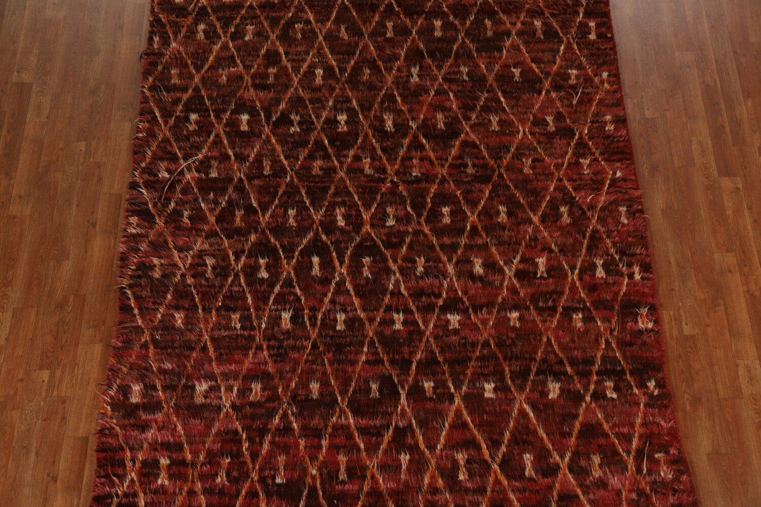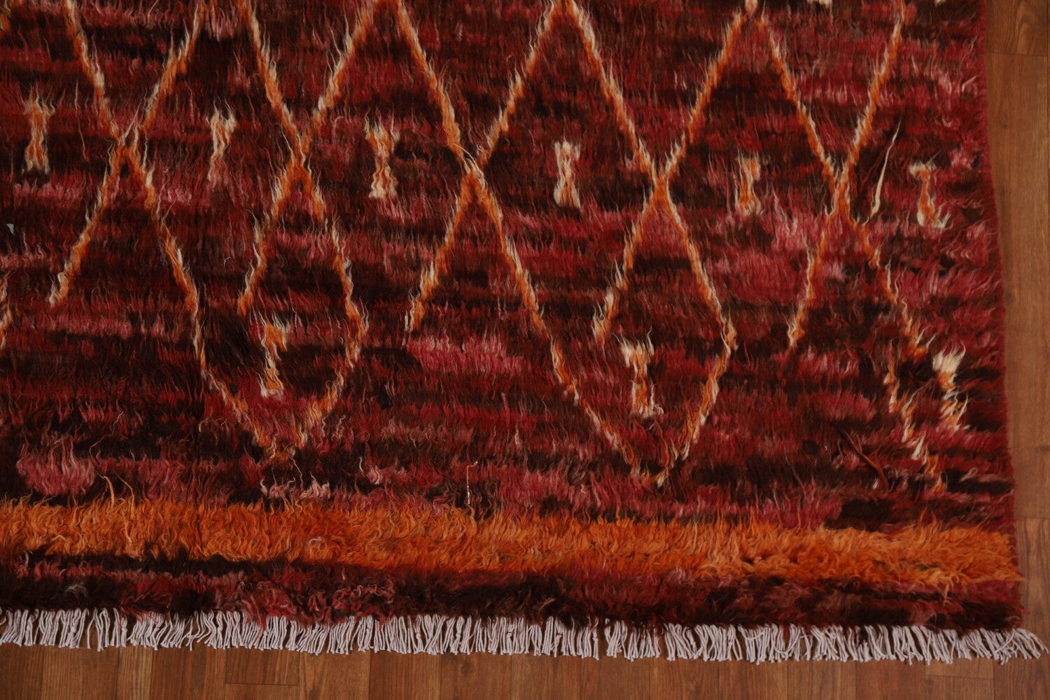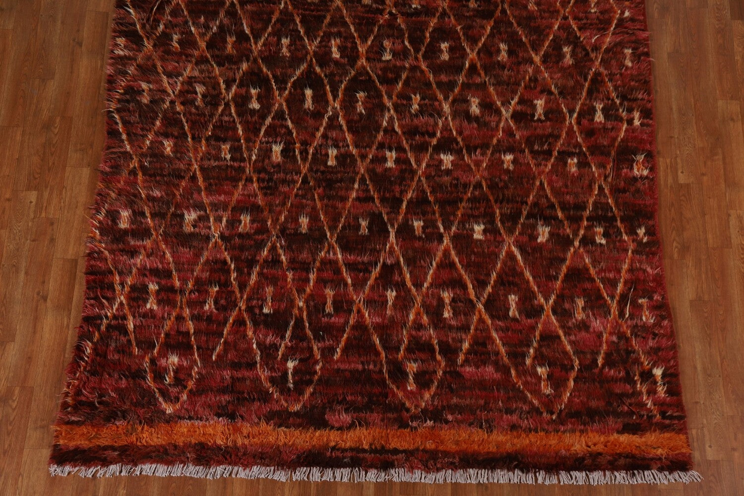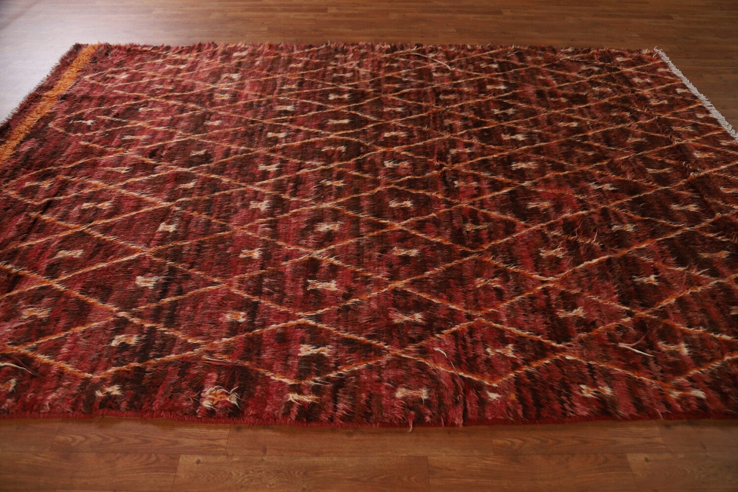 A Beautiful Genuine Pakistan Moroccan rug is Hand Knotted by skillful weavers in Pakistan with 100% Wool Material. This rug is in condition. dimensions are 9' 9'' X 6' 8'' in foot and 297 X 203 in centimeter. the primary color is Red.