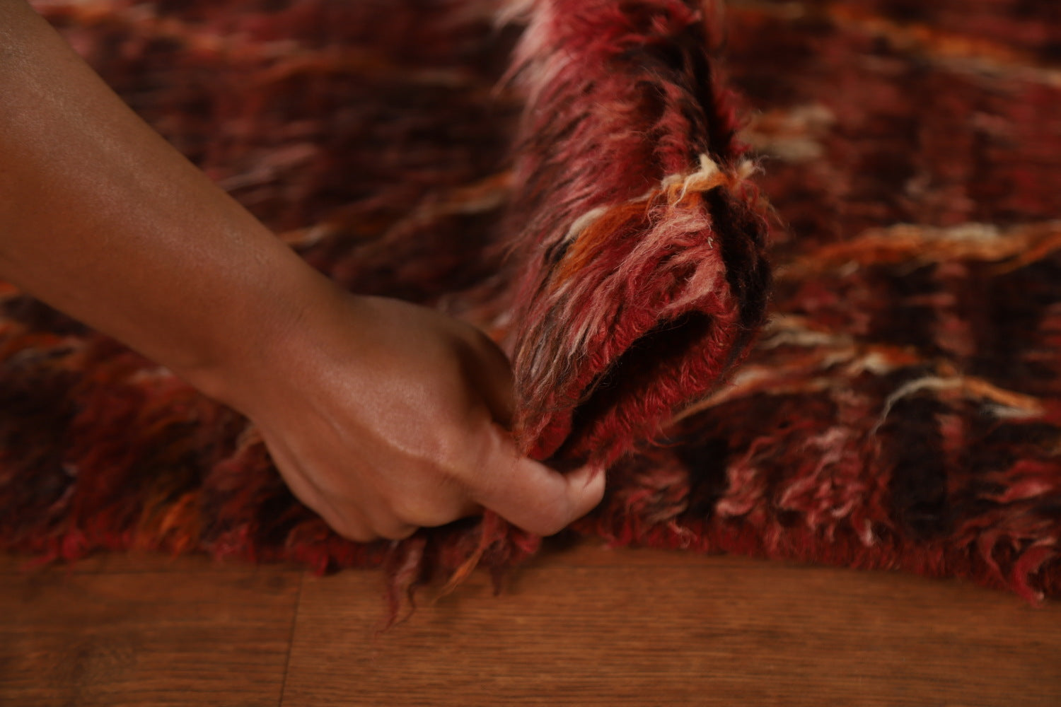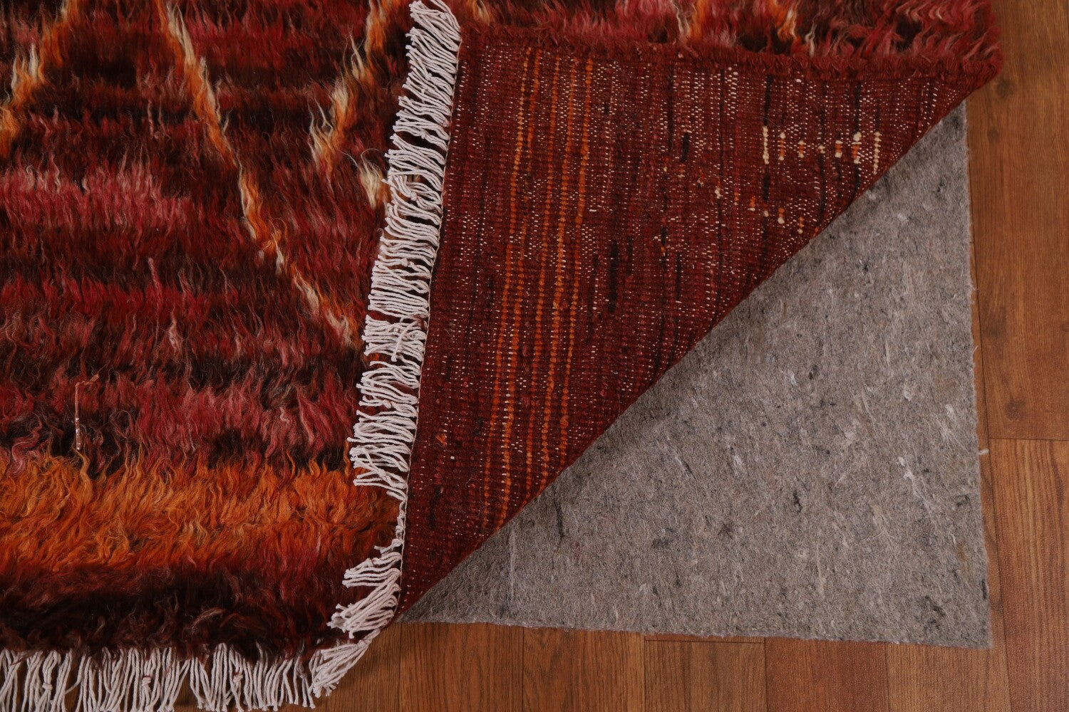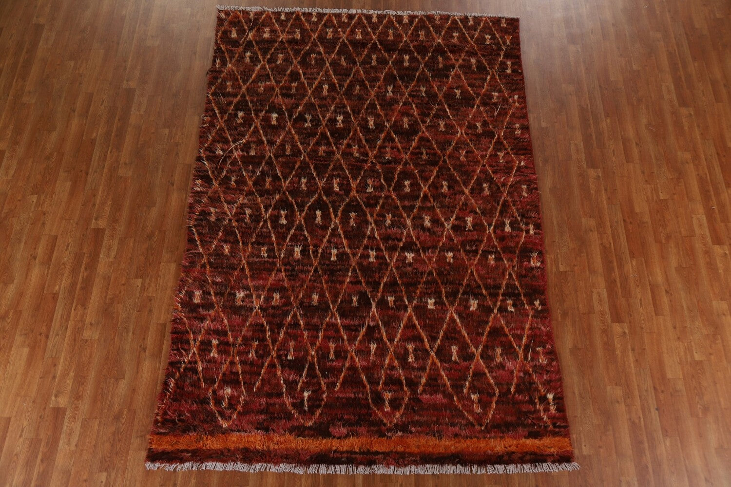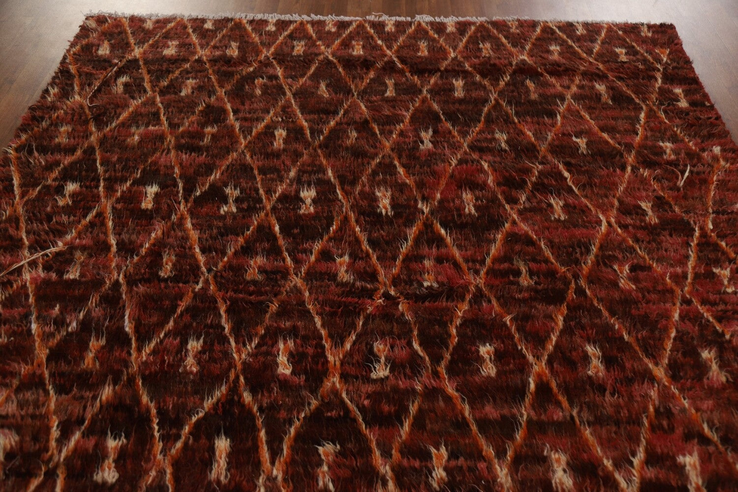 A Beautiful Genuine Pakistan Moroccan rug is Hand Knotted by skillful weavers in Pakistan with 100% Wool Material. This rug is in condition. dimensions are 9' 9'' X 6' 8'' in foot and 297 X 203 in centimeter. the primary color is Red.