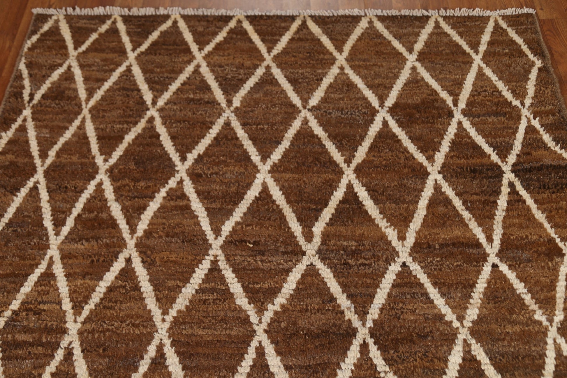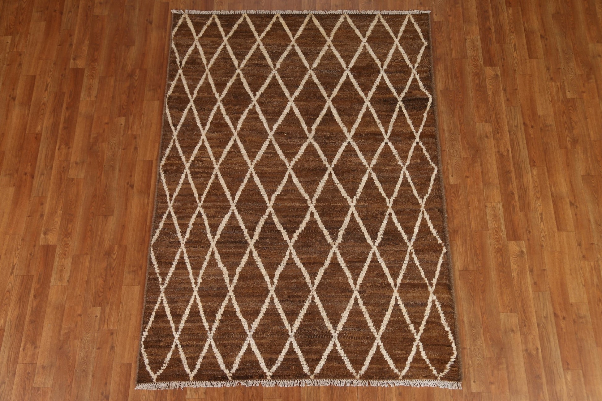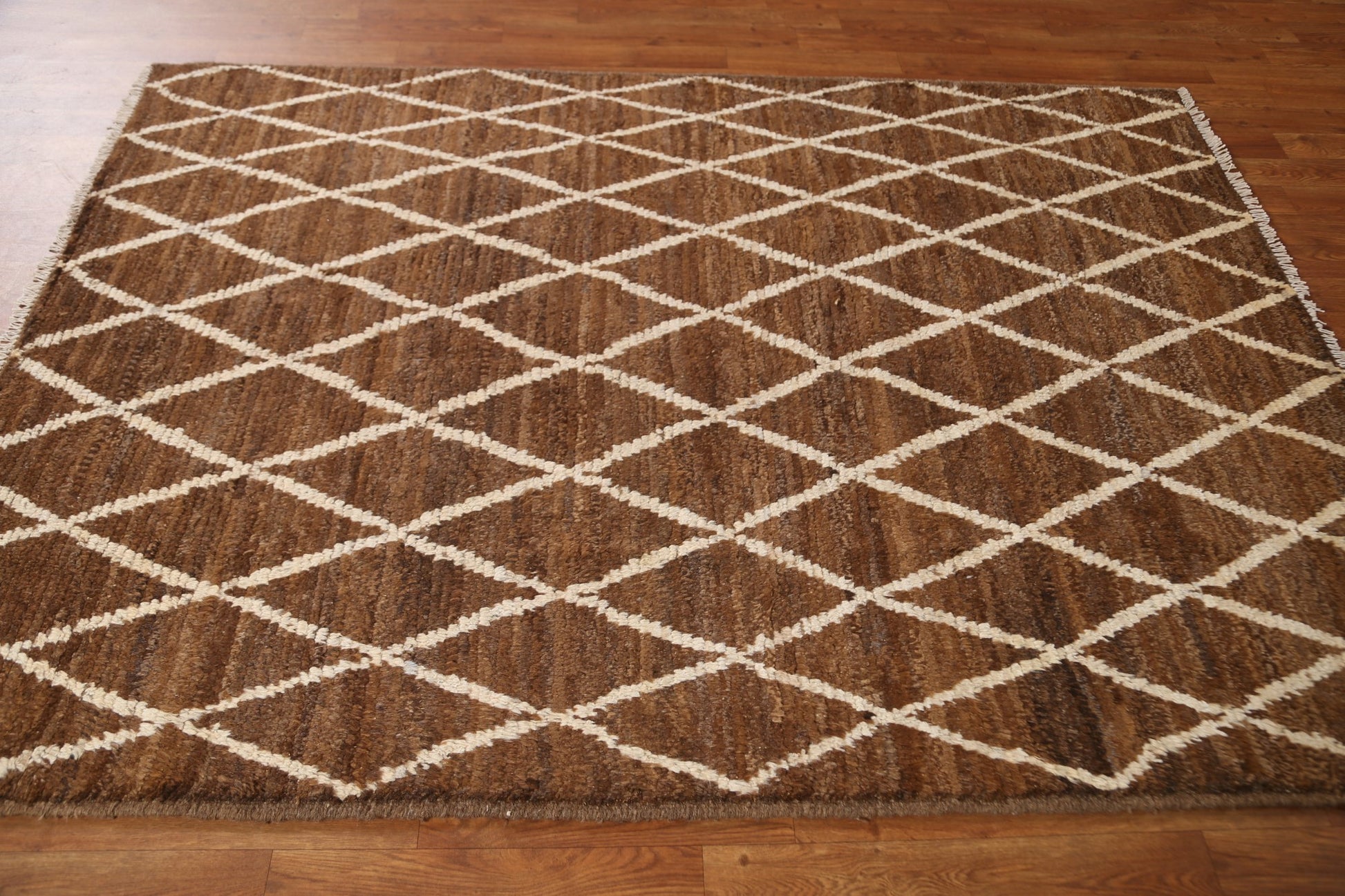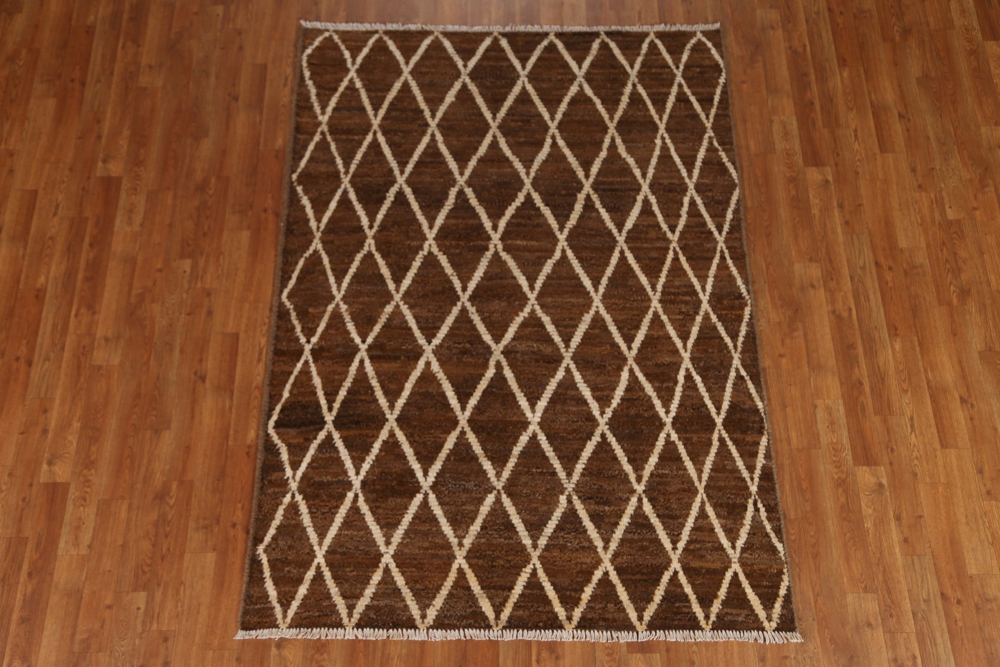 A Beautiful Genuine Pakistan Moroccan rug is Hand Knotted by skillful weavers in Pakistan with 100% Wool Material. This rug is in condition. dimensions are 6' 7'' X 4' 9'' in foot and 201 X 145 in centimeter. the primary color is Brown.