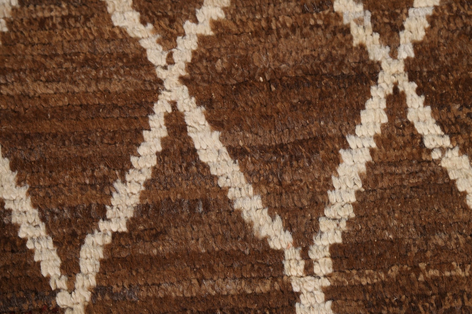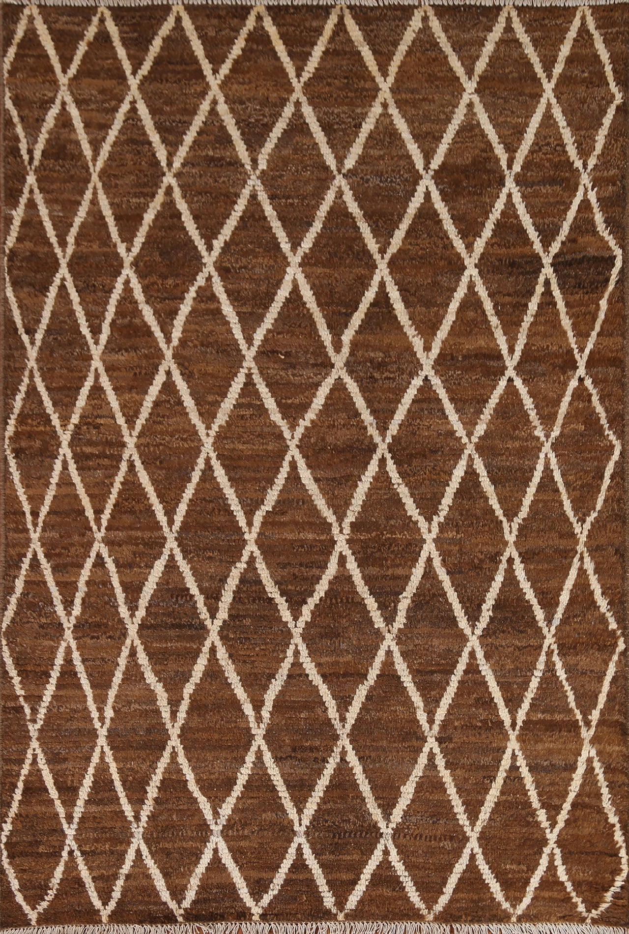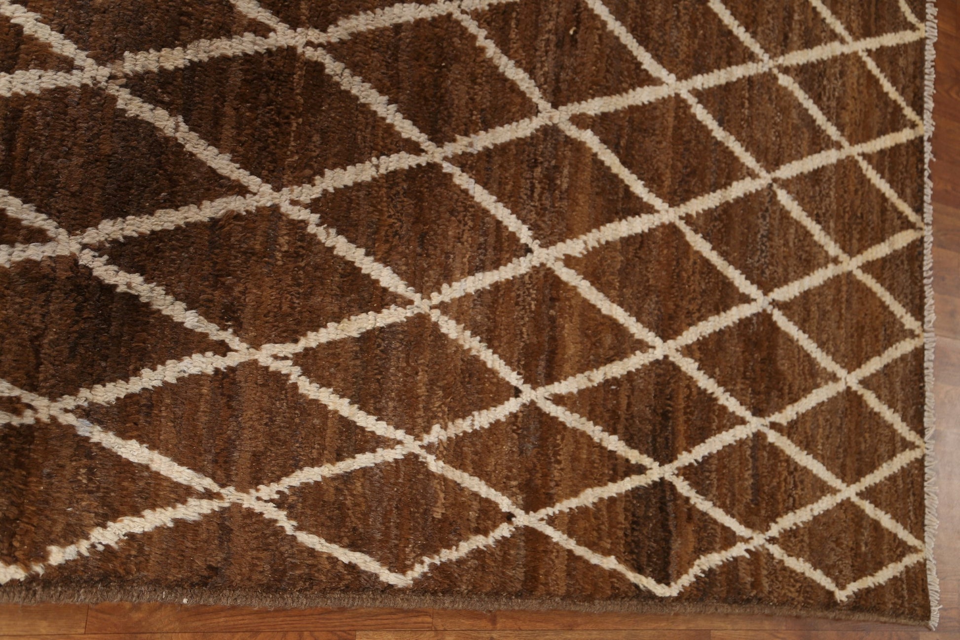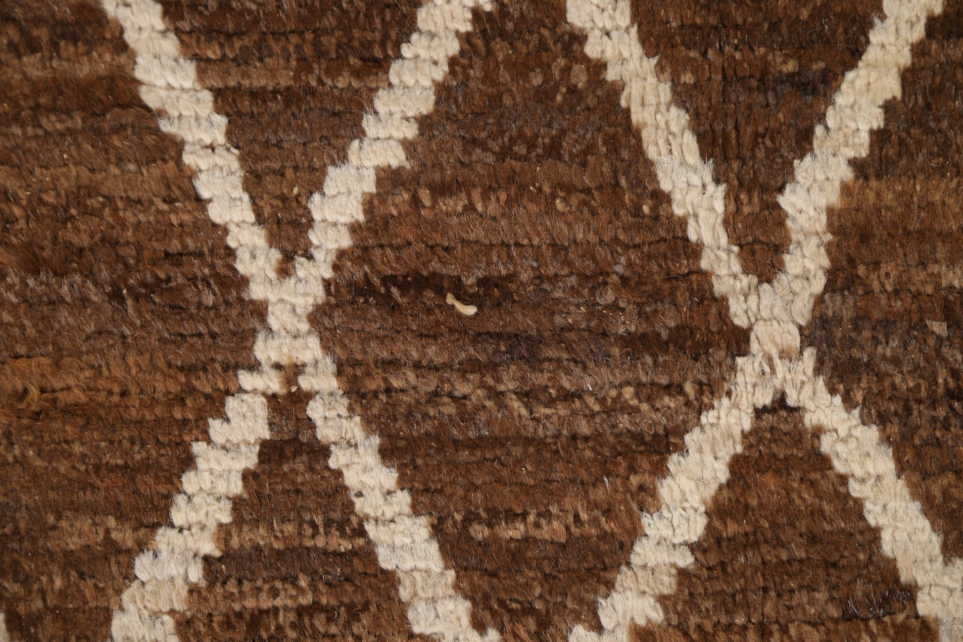 A Beautiful Genuine Pakistan Moroccan rug is Hand Knotted by skillful weavers in Pakistan with 100% Wool Material. This rug is in condition. dimensions are 6' 7'' X 4' 9'' in foot and 201 X 145 in centimeter. the primary color is Brown.