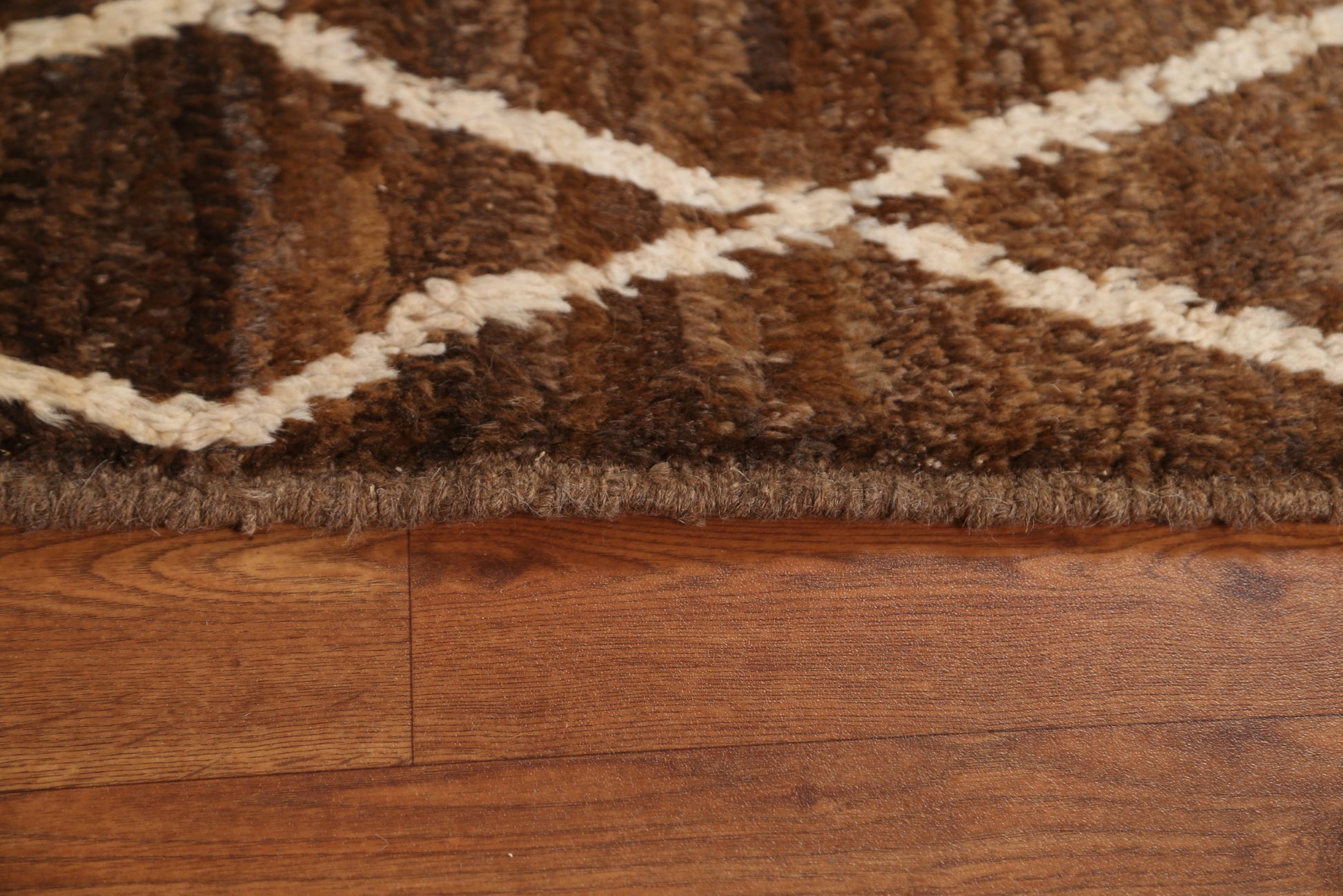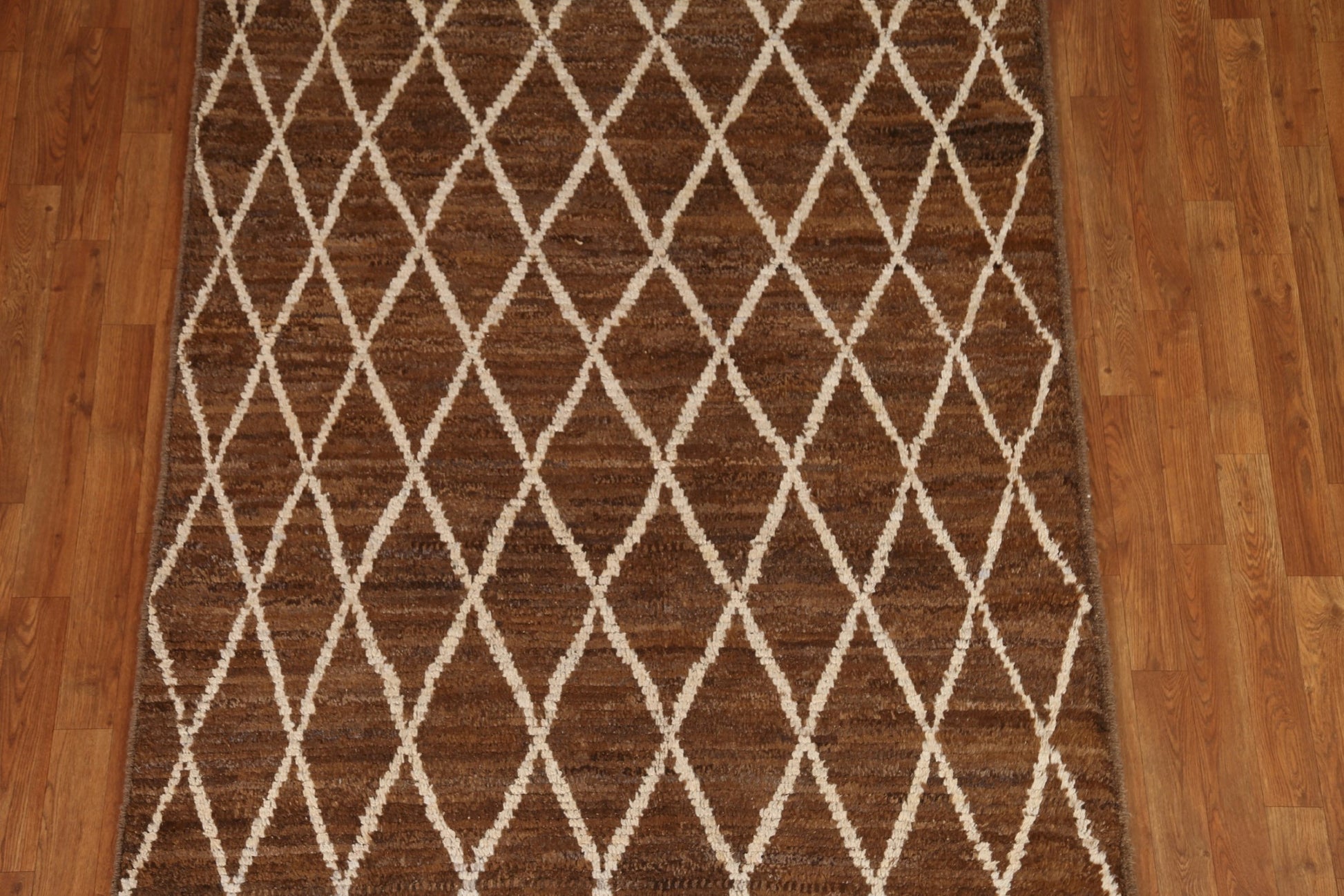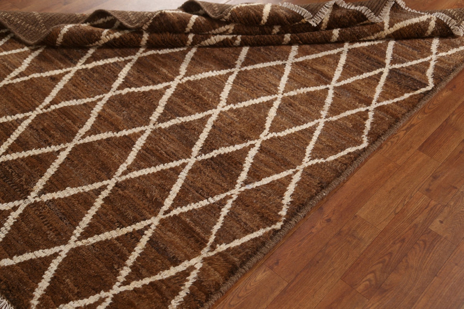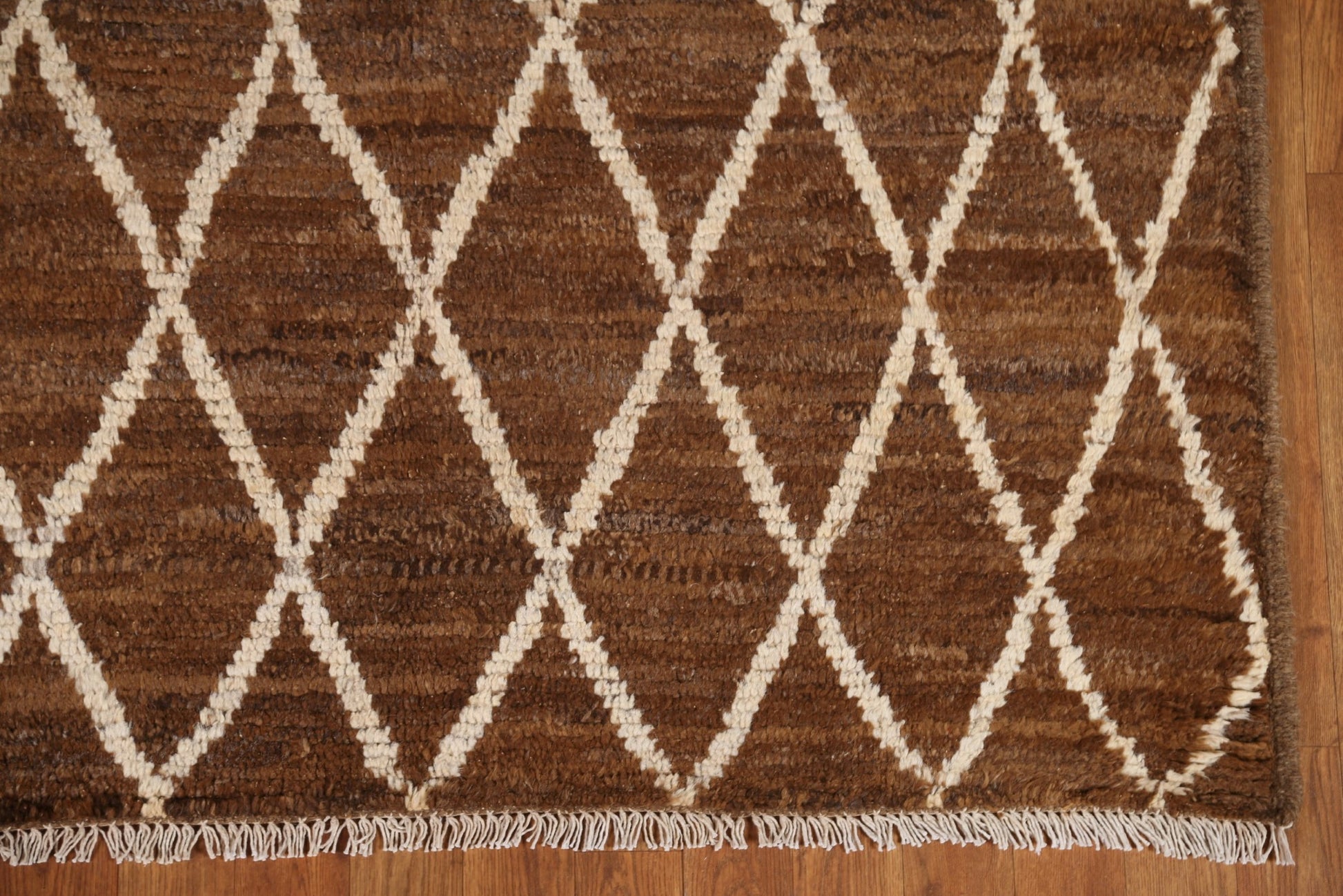 A Beautiful Genuine Pakistan Moroccan rug is Hand Knotted by skillful weavers in Pakistan with 100% Wool Material. This rug is in condition. dimensions are 6' 7'' X 4' 9'' in foot and 201 X 145 in centimeter. the primary color is Brown.