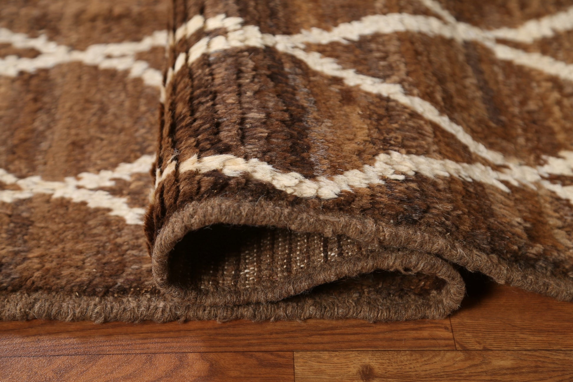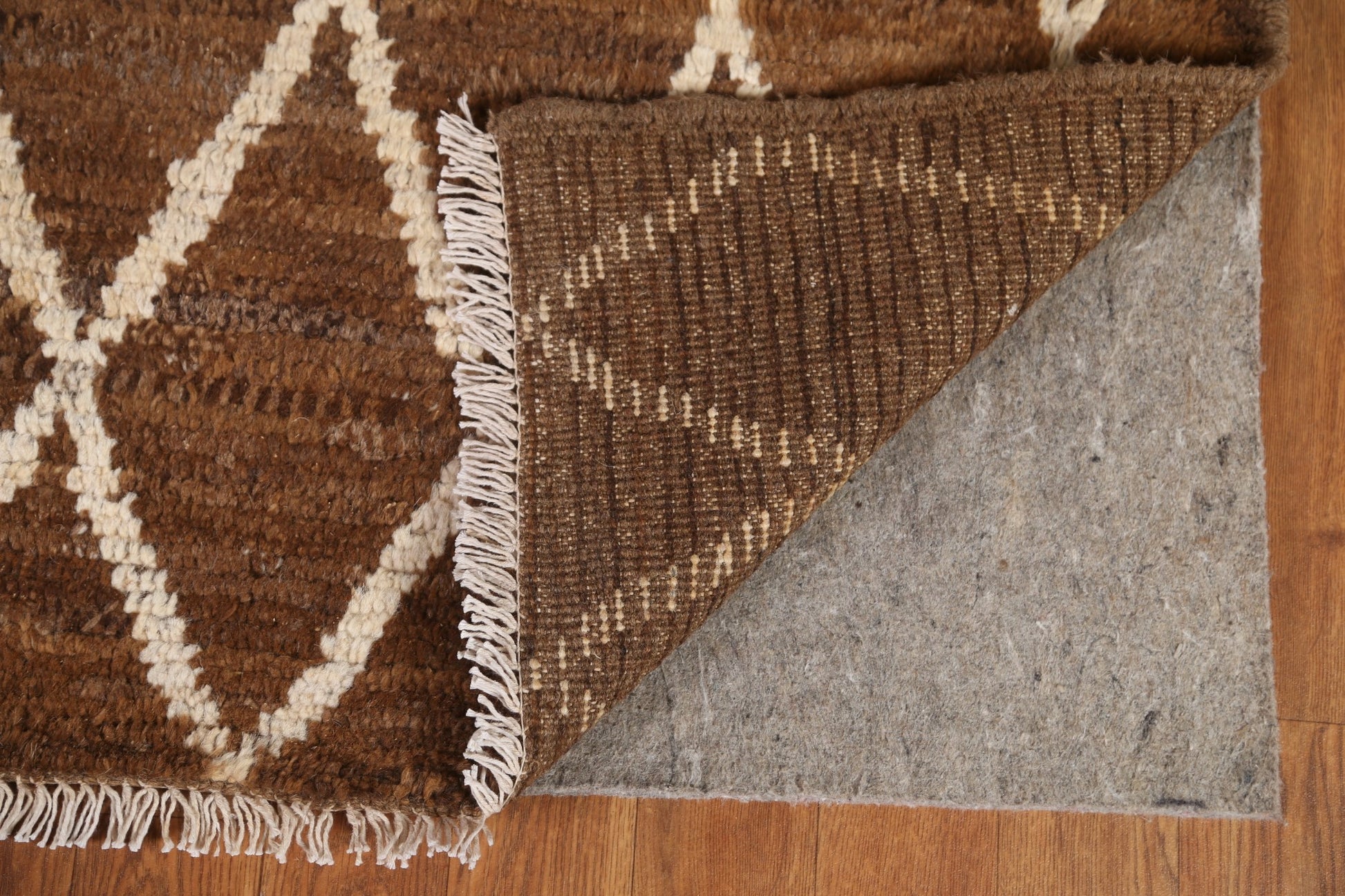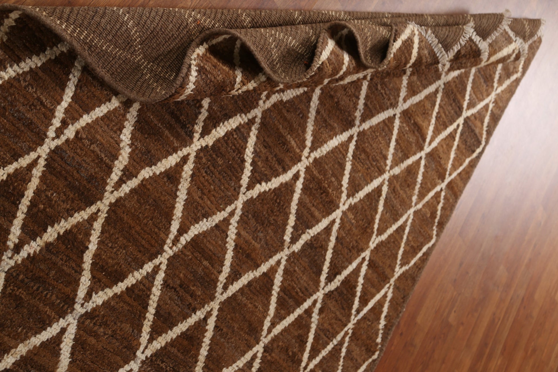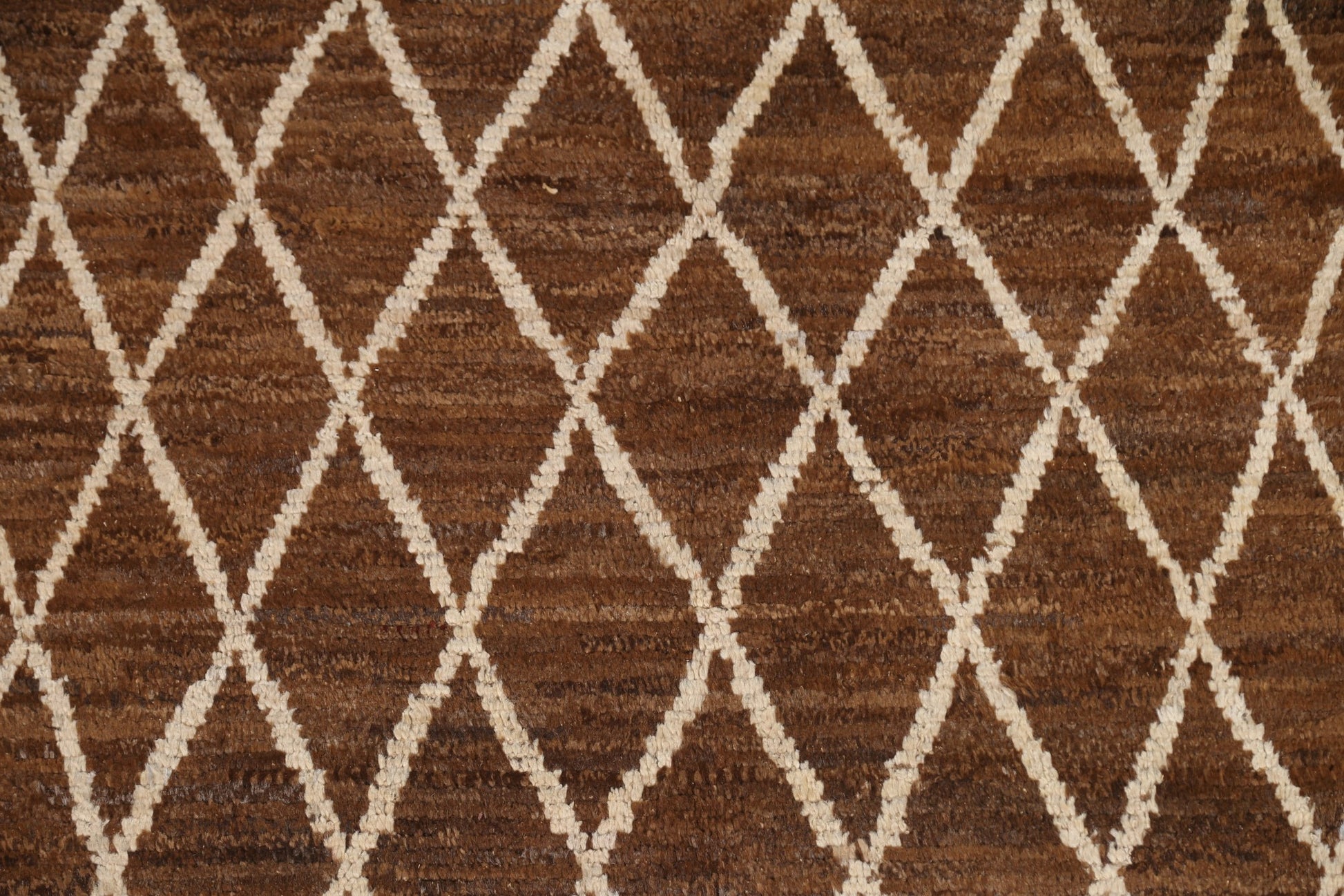 A Beautiful Genuine Pakistan Moroccan rug is Hand Knotted by skillful weavers in Pakistan with 100% Wool Material. This rug is in condition. dimensions are 6' 7'' X 4' 9'' in foot and 201 X 145 in centimeter. the primary color is Brown.