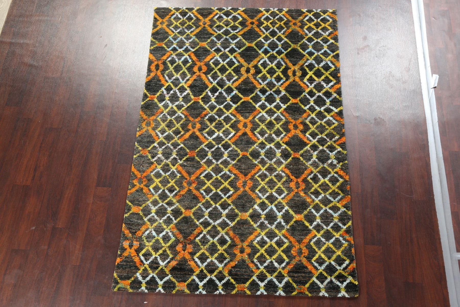 A Beautiful Genuine India Moroccan rug is Hand Knotted by skillful weavers in India with Jute Material. This rug is in New, First Quality condition. dimensions are 8' 4'' X 5' 5'' in foot and 254 X 165 in centimeter. the primary color is Black.