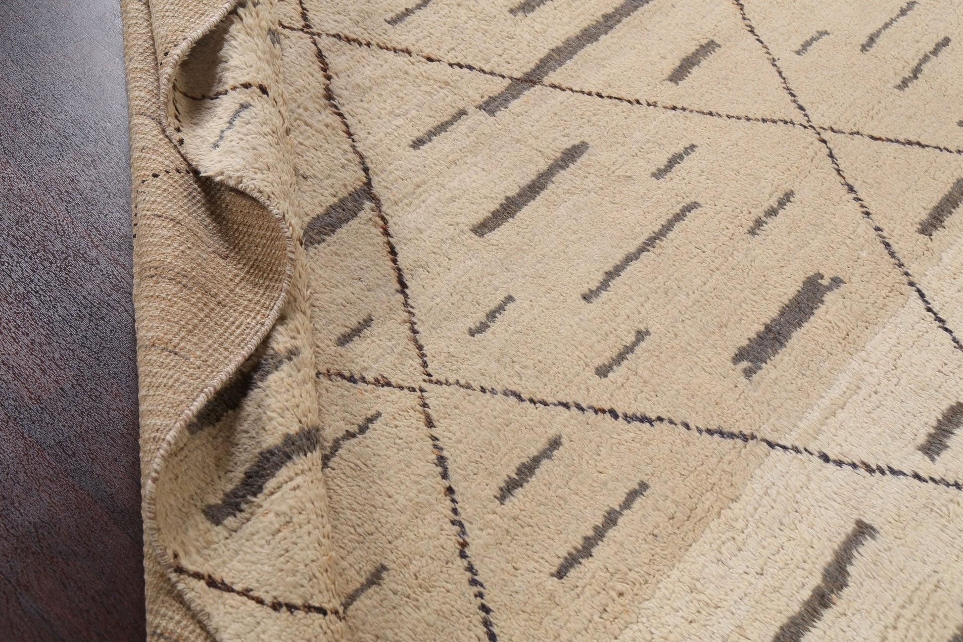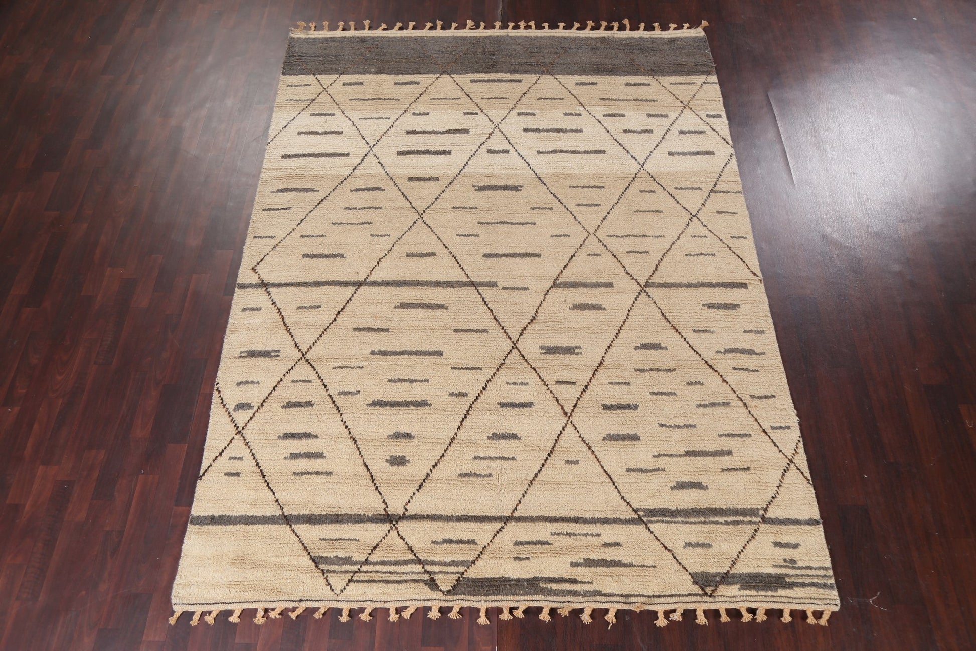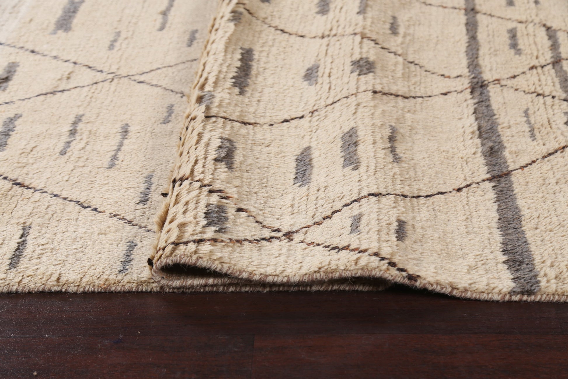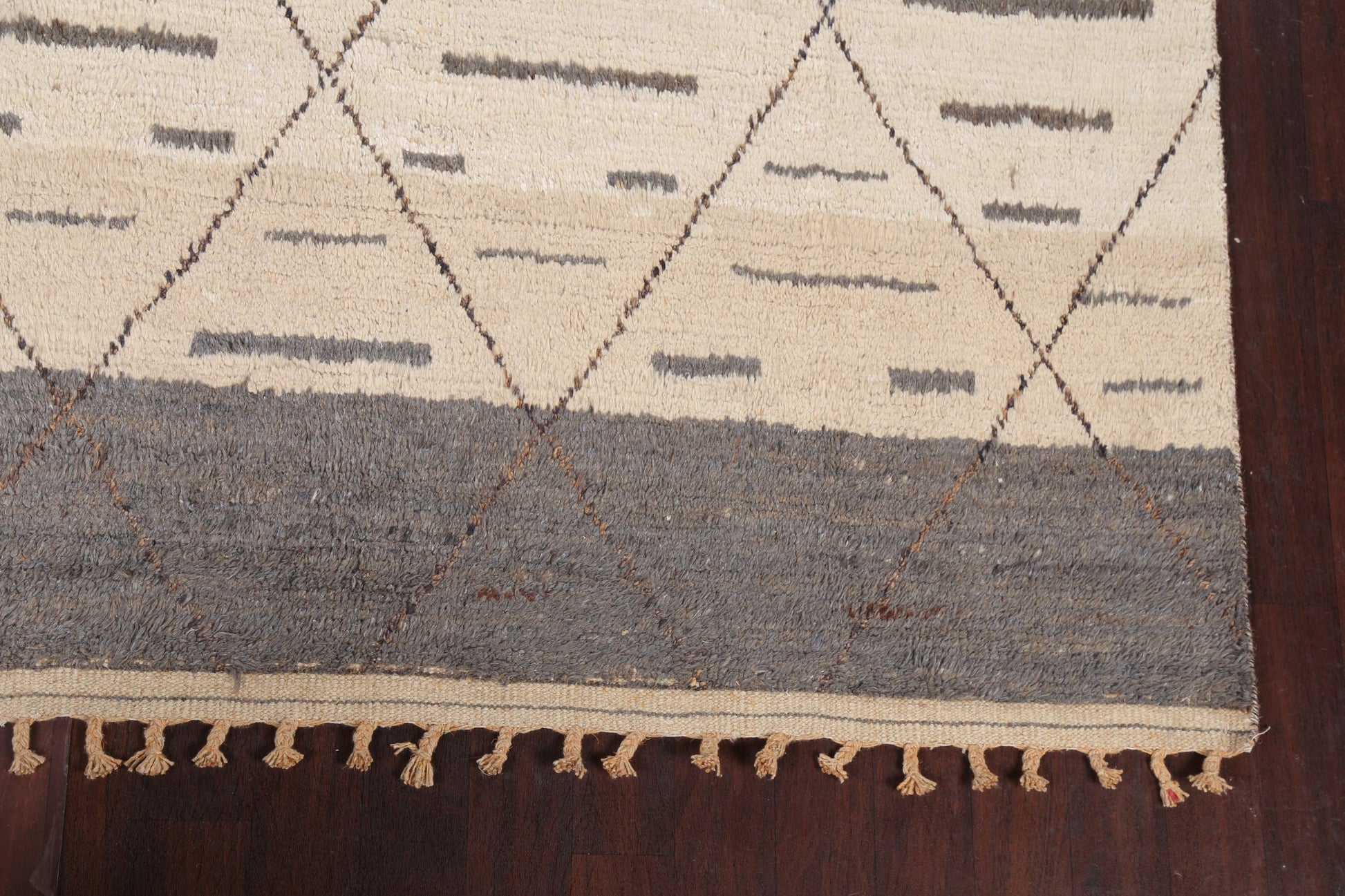 A Beautiful Genuine Pakistan Moroccan rug is Hand Knotted by skillful weavers in Pakistan with 100% Wool Material. This rug is in New, First Quality condition. dimensions are 10' 9'' X 8' 0'' in foot and 328 X 244 in centimeter. the primary color is Beige & Ivories.