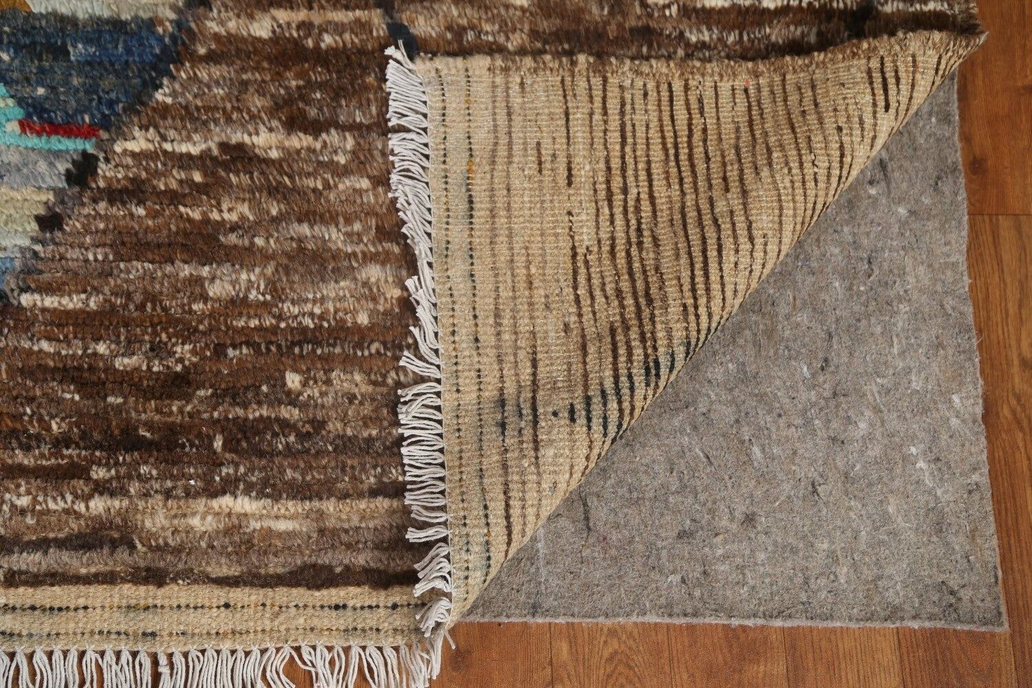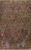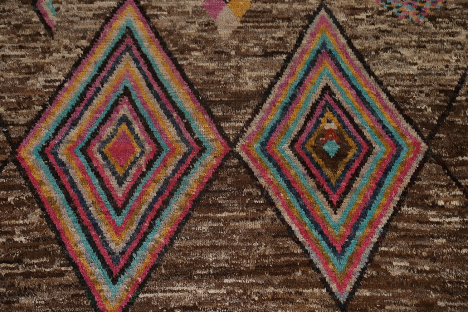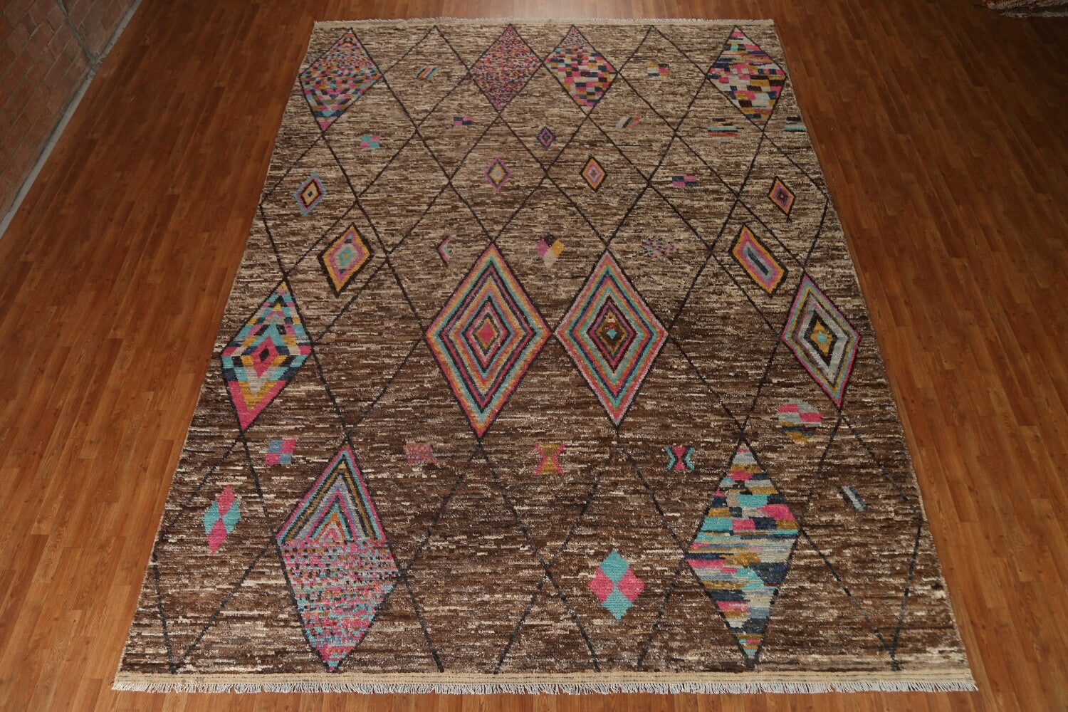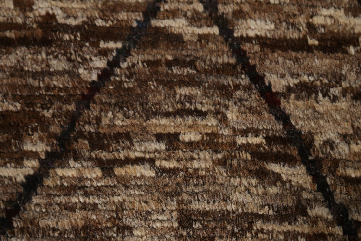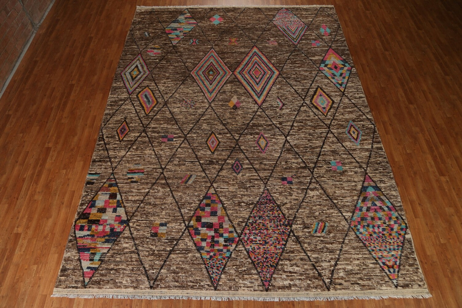 A Beautiful Genuine Pakistan Moroccan rug is Hand Knotted by skillful weavers in Pakistan with 100% Wool Material. This rug is in condition. dimensions are 13' 11'' X 10' 5'' in foot and 424 X 318 in centimeter. the primary color is Brown.