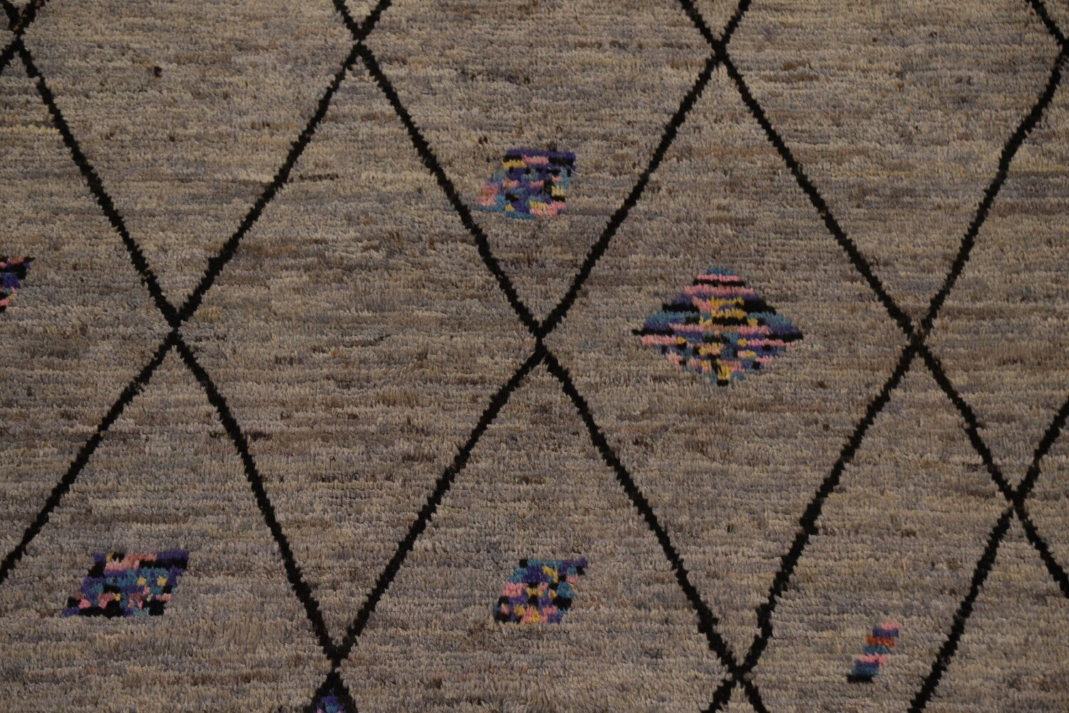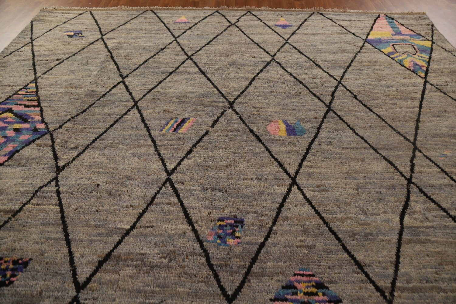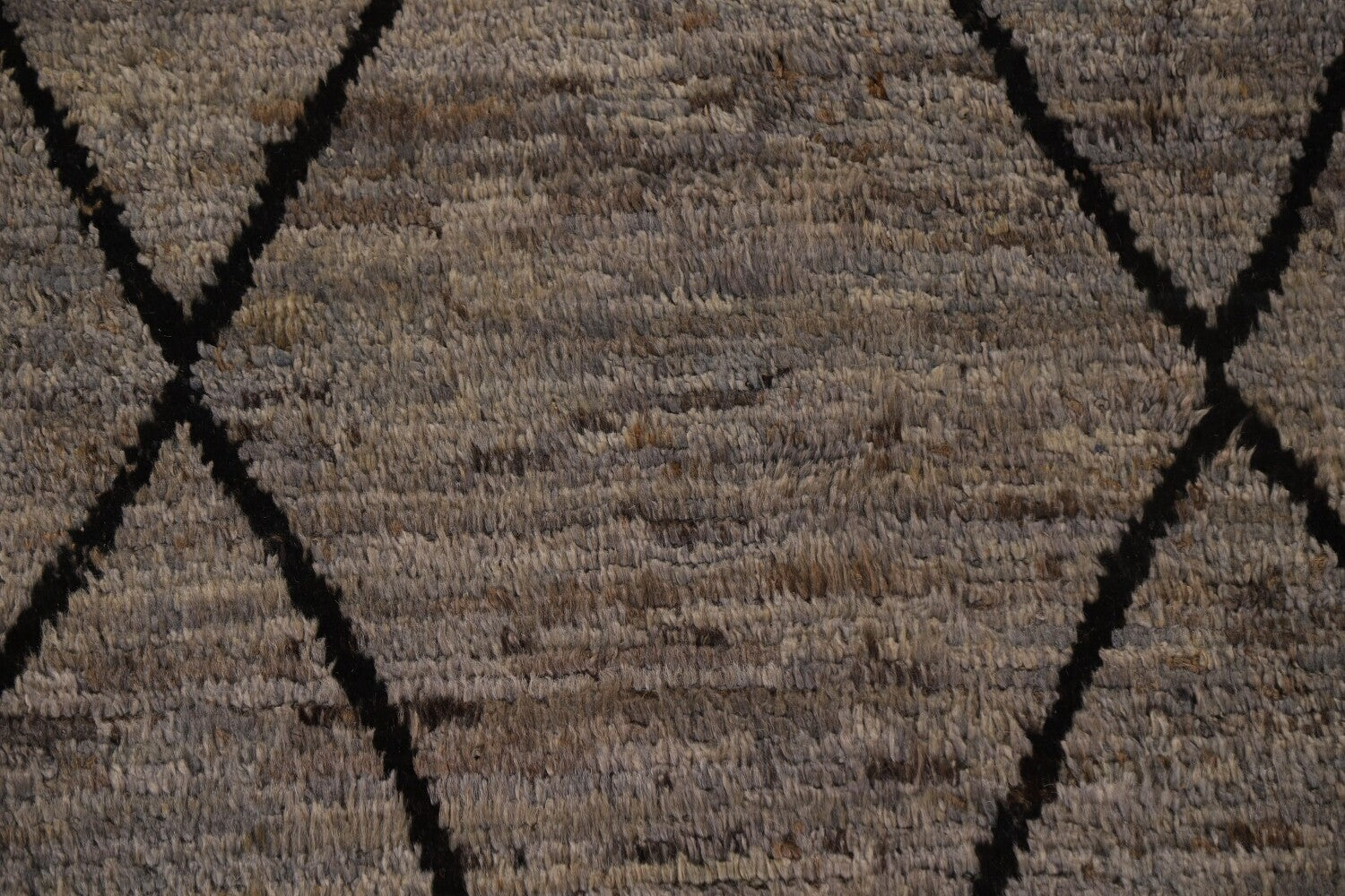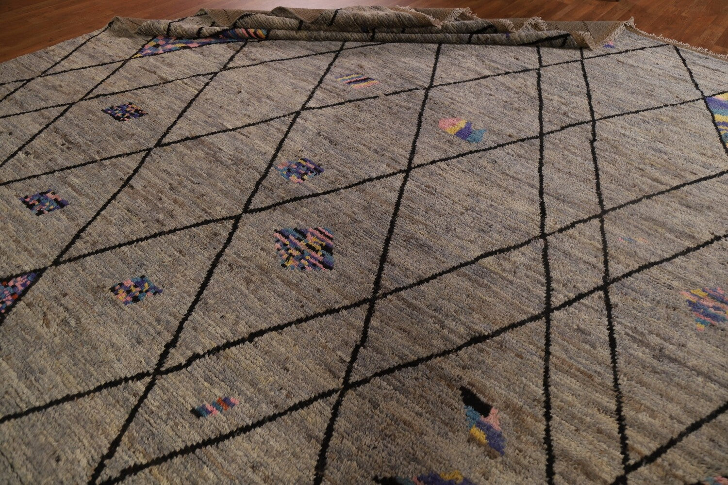 A Beautiful Genuine Pakistan Moroccan rug is Hand Knotted by skillful weavers in Pakistan with 100% Wool Material. This rug is in condition. dimensions are 13' 11'' X 10' 1'' in foot and 424 X 307 in centimeter. the primary color is Greys & Charcoal.