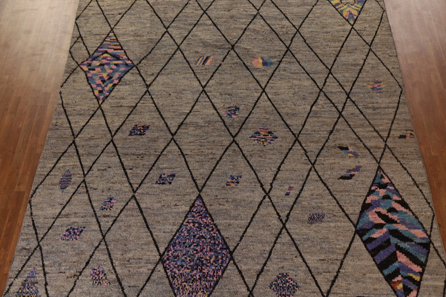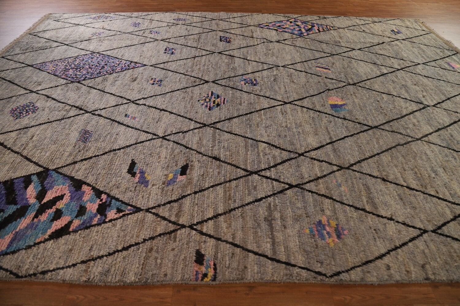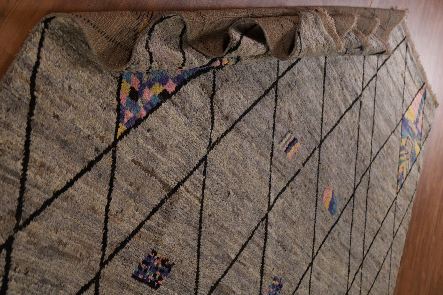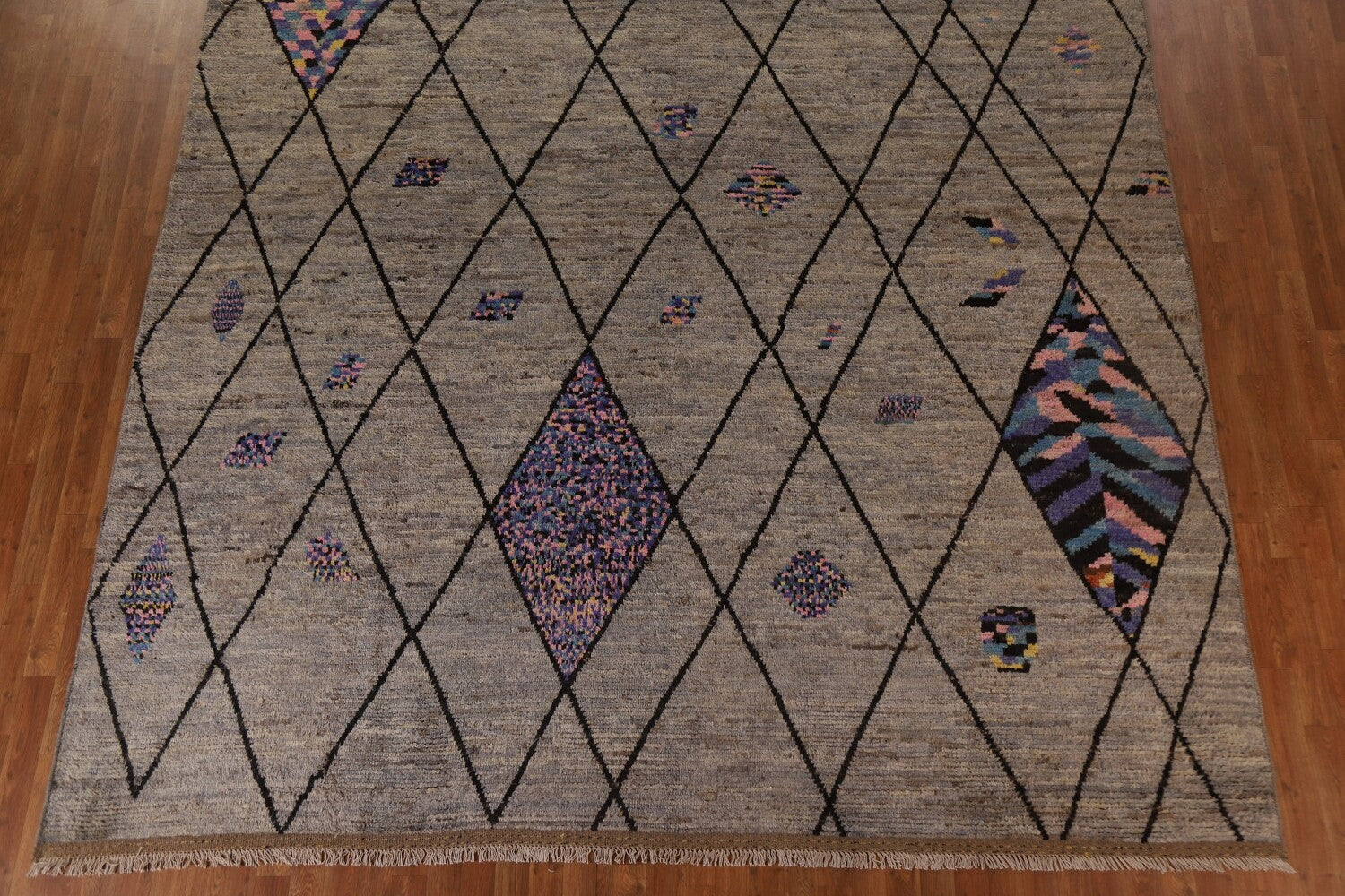 A Beautiful Genuine Pakistan Moroccan rug is Hand Knotted by skillful weavers in Pakistan with 100% Wool Material. This rug is in condition. dimensions are 13' 11'' X 10' 1'' in foot and 424 X 307 in centimeter. the primary color is Greys & Charcoal.