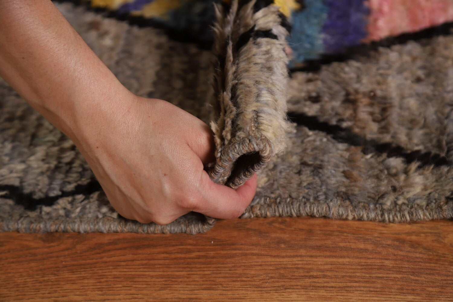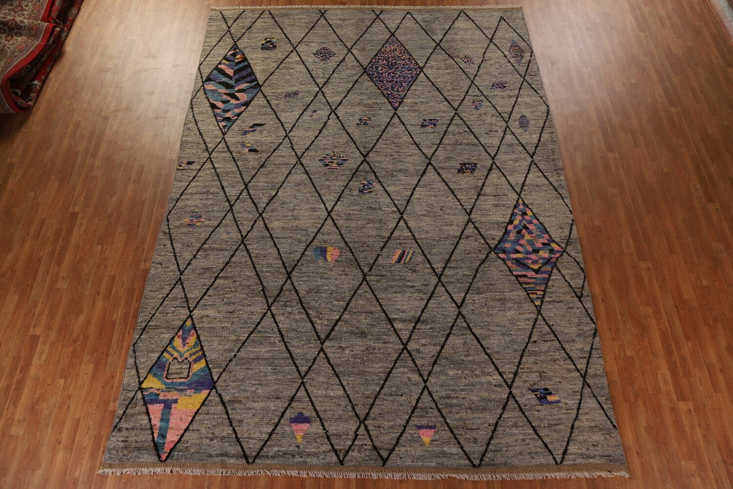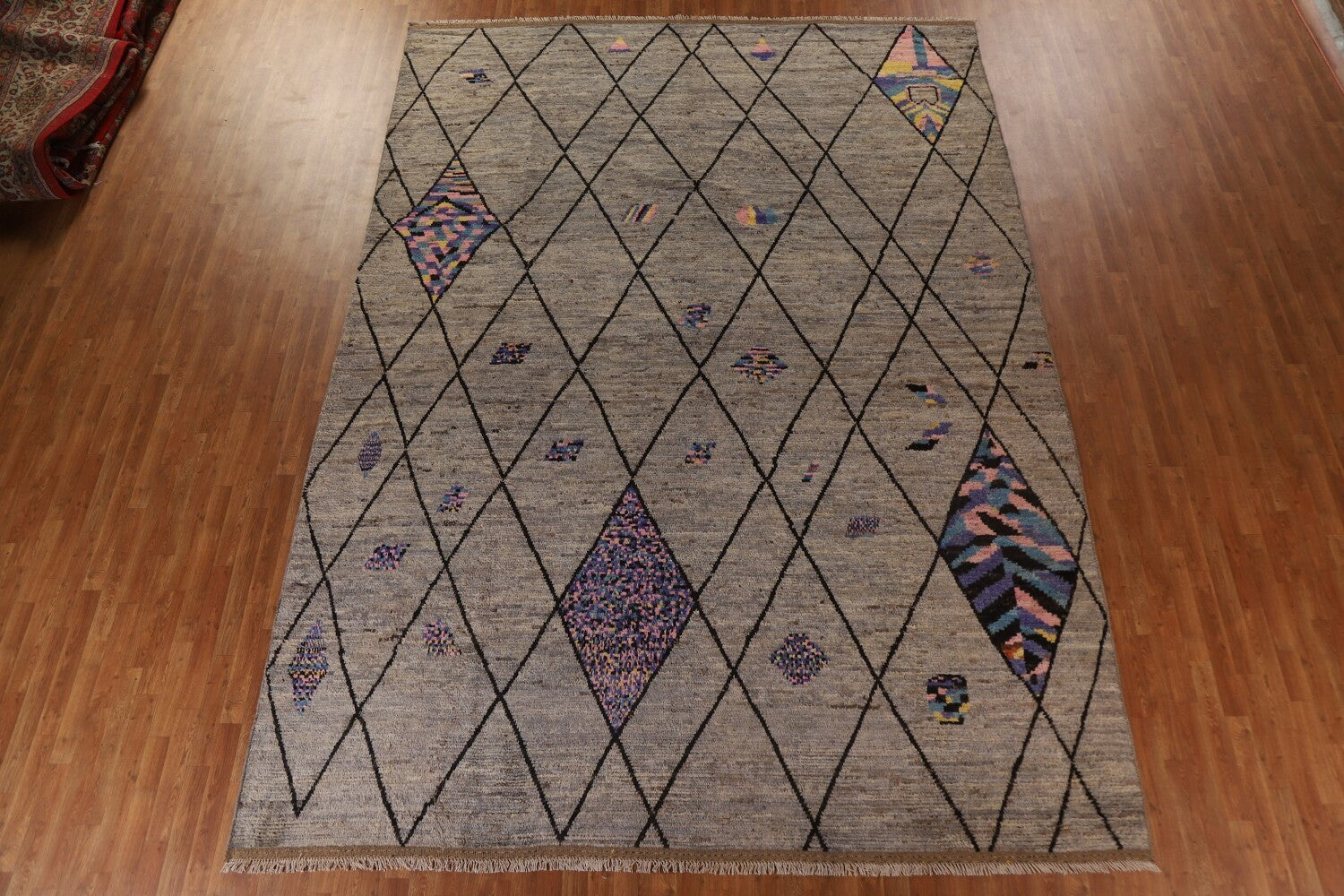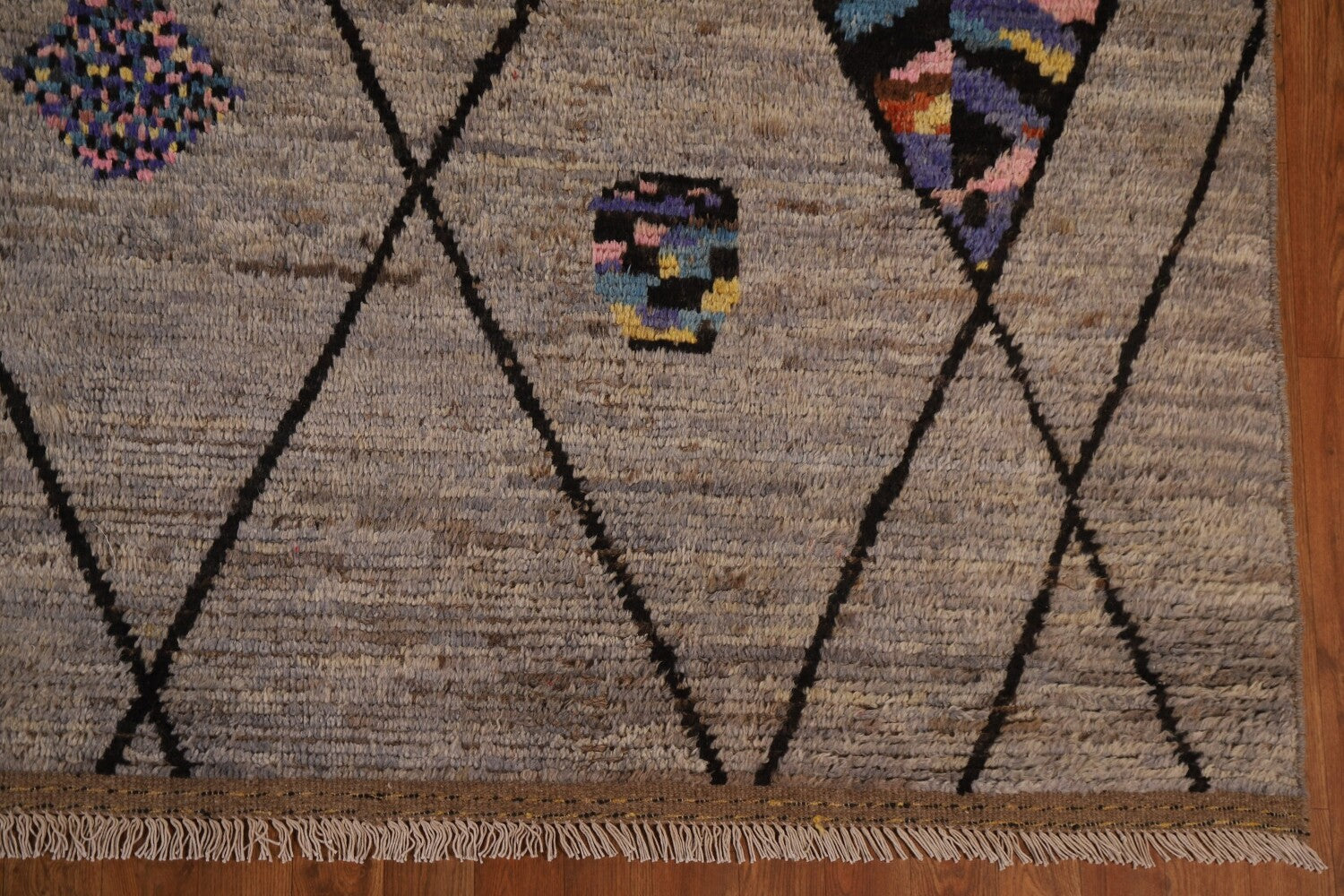 A Beautiful Genuine Pakistan Moroccan rug is Hand Knotted by skillful weavers in Pakistan with 100% Wool Material. This rug is in condition. dimensions are 13' 11'' X 10' 1'' in foot and 424 X 307 in centimeter. the primary color is Greys & Charcoal.