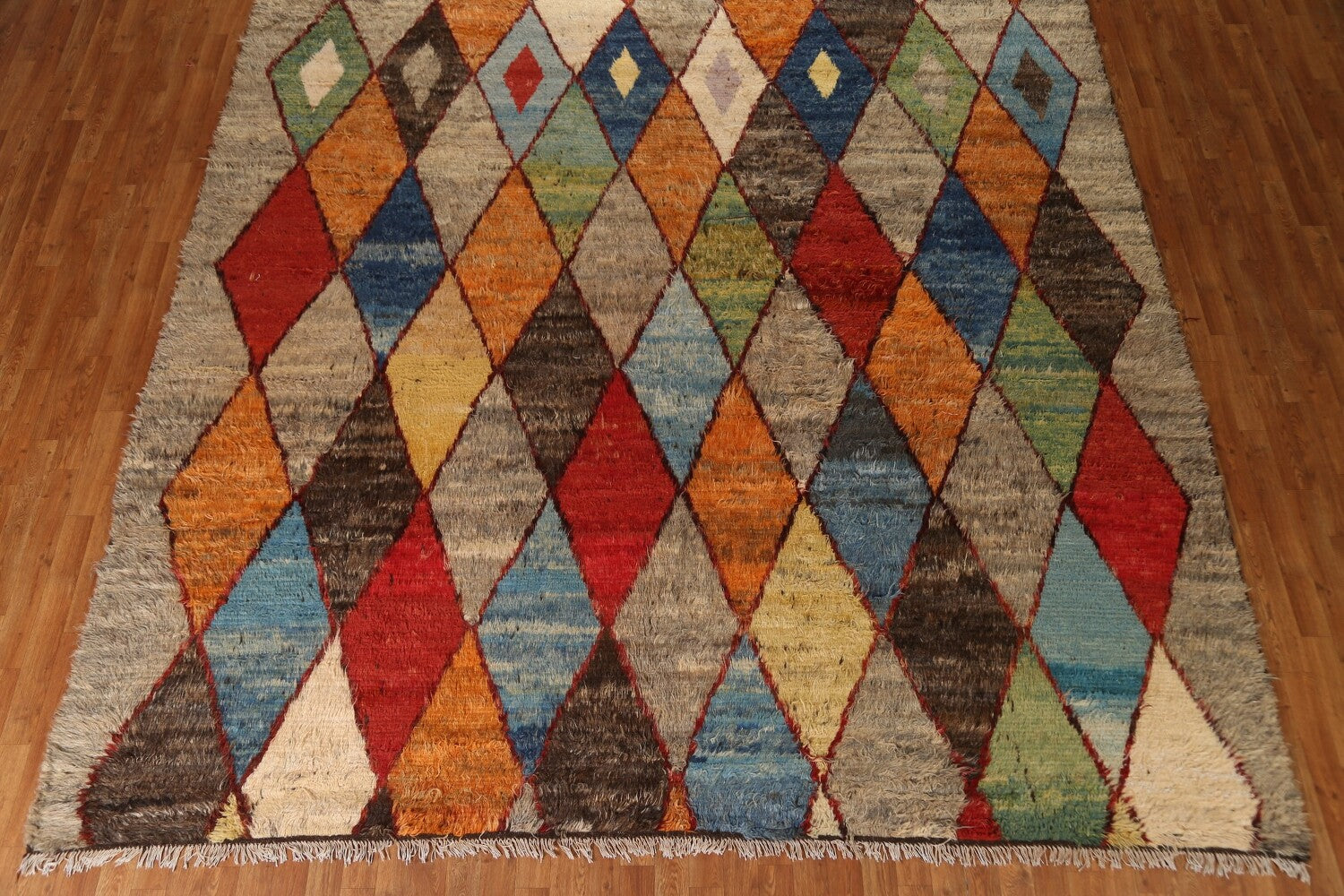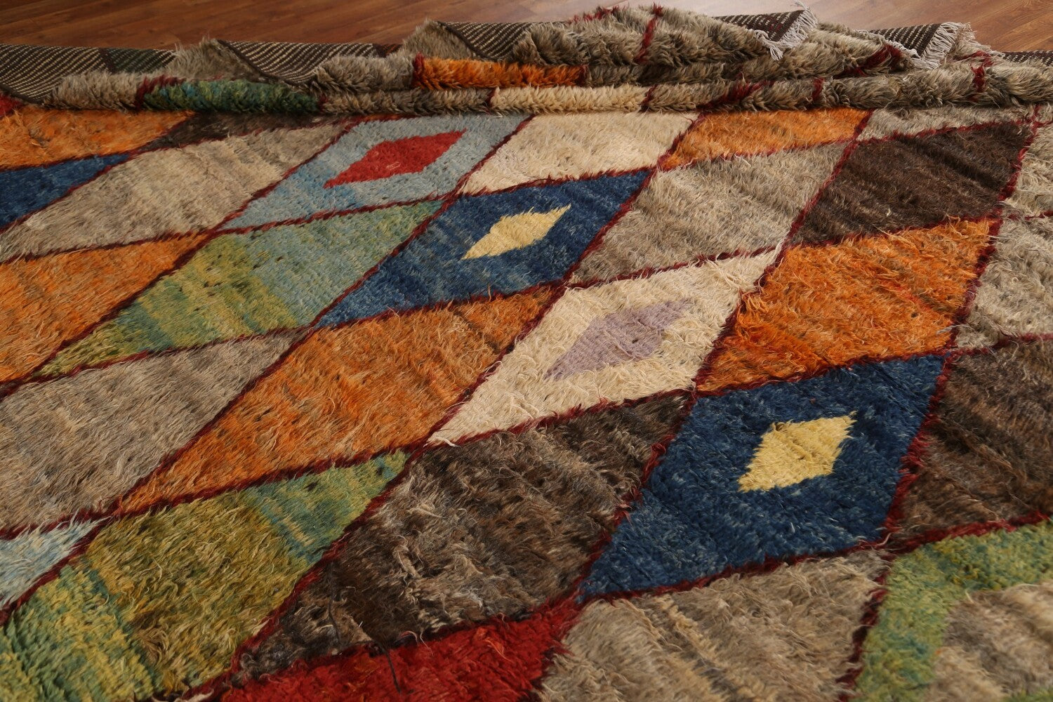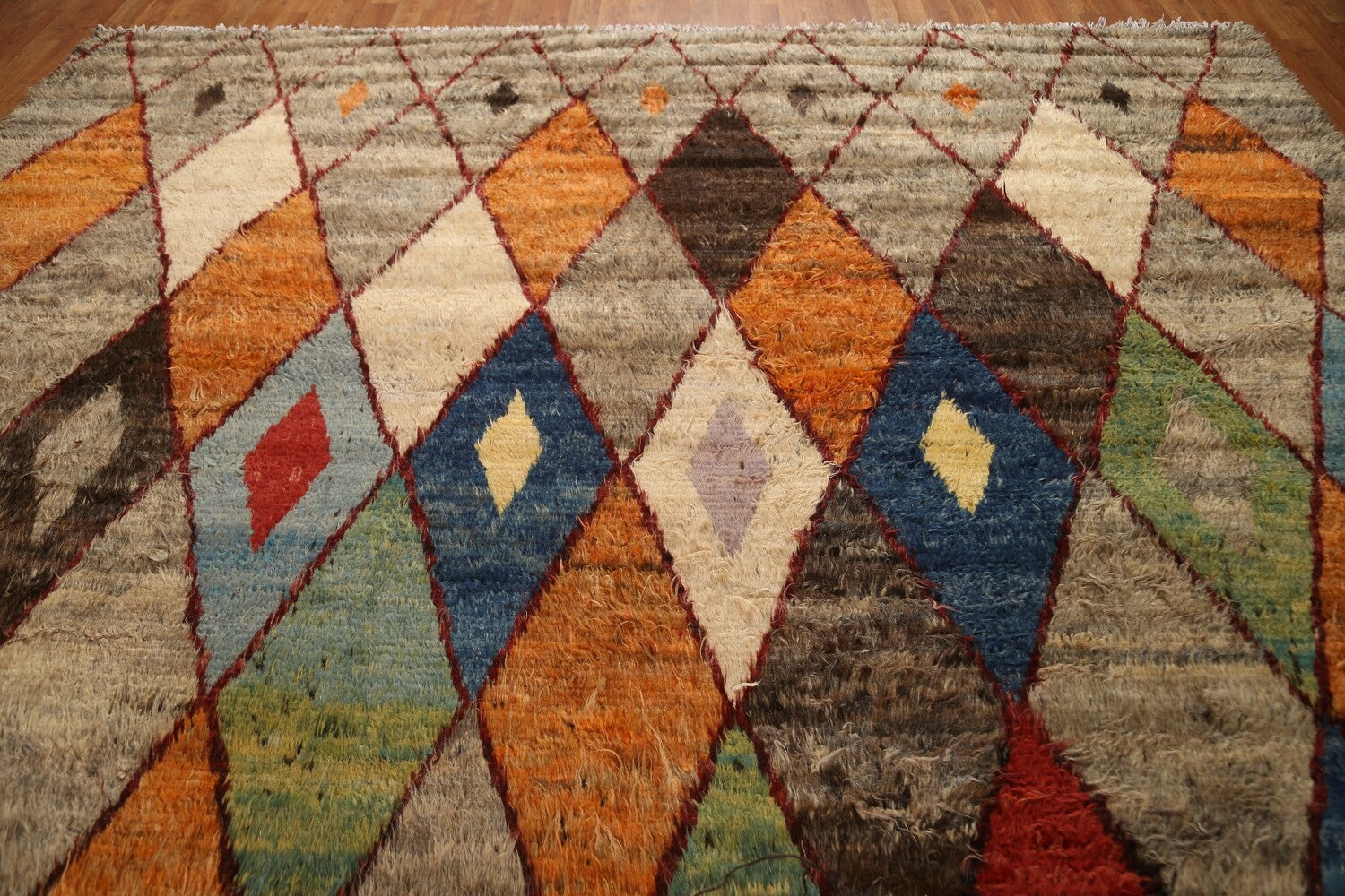 A Beautiful Genuine Pakistan Moroccan rug is Hand Knotted by skillful weavers in Pakistan with 100% Wool Material. This rug is in condition. dimensions are 13' 11'' X 10' 6'' in foot and 424 X 320 in centimeter. the primary color is Multi-Colored.