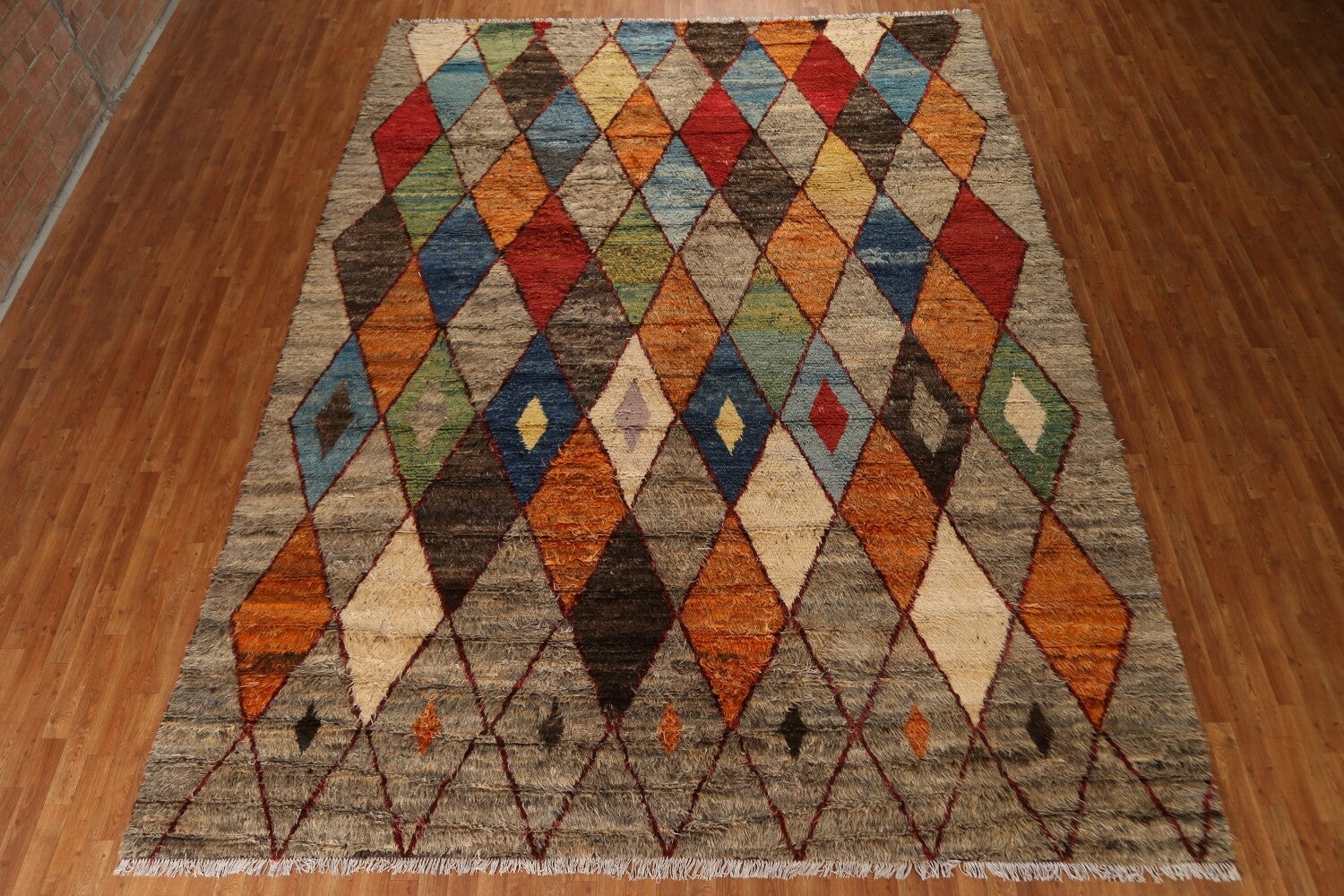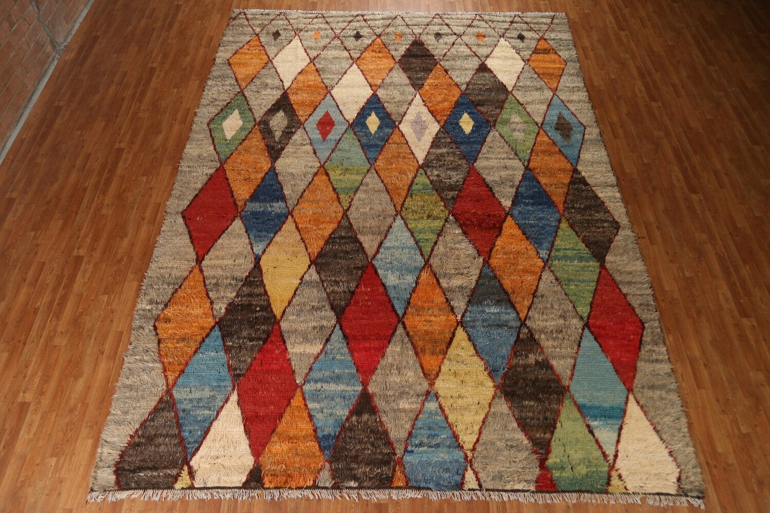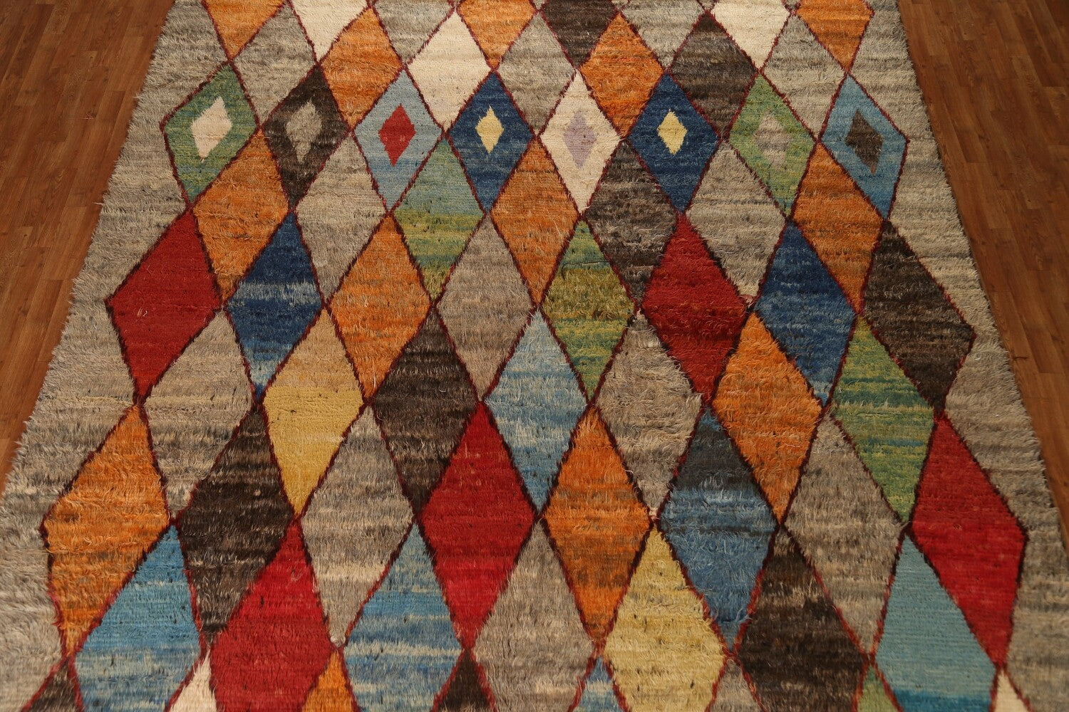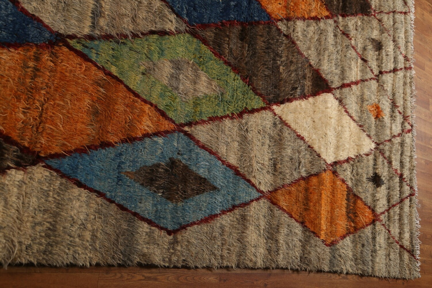 A Beautiful Genuine Pakistan Moroccan rug is Hand Knotted by skillful weavers in Pakistan with 100% Wool Material. This rug is in condition. dimensions are 13' 11'' X 10' 6'' in foot and 424 X 320 in centimeter. the primary color is Multi-Colored.