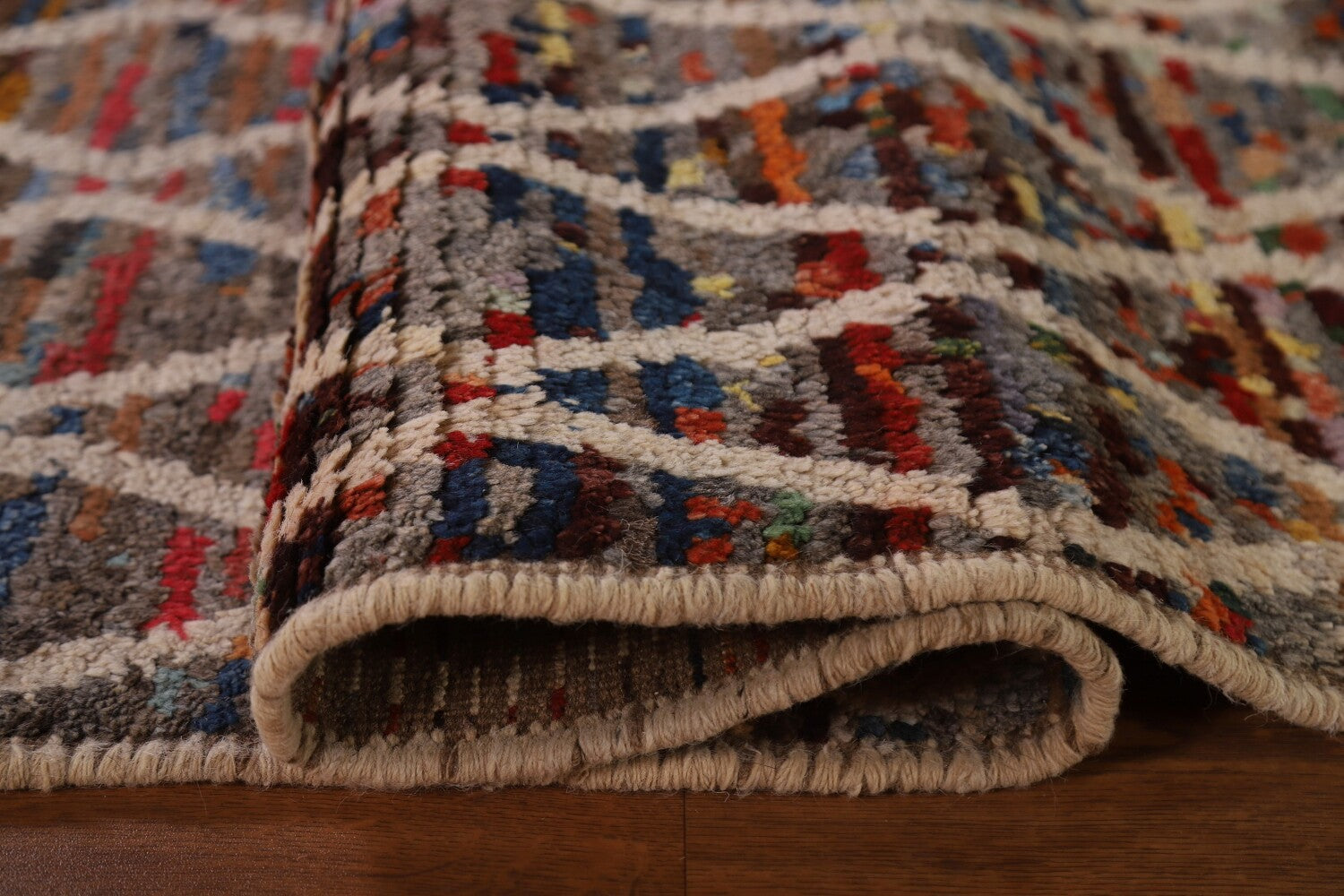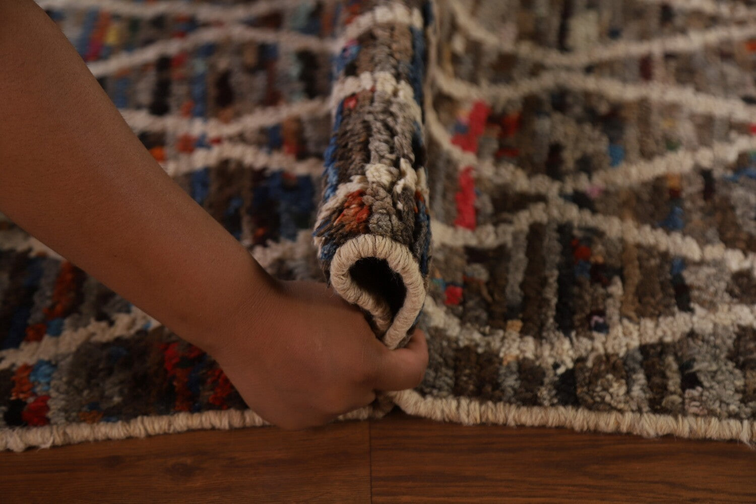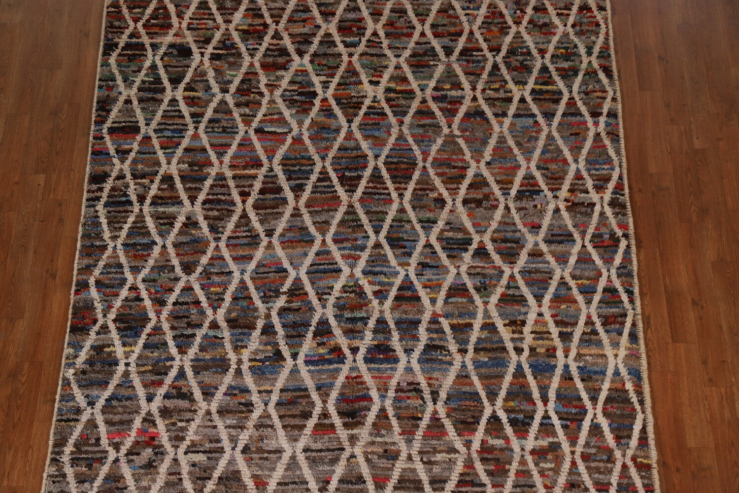 A Beautiful Genuine Pakistan Moroccan rug is Hand Knotted by skillful weavers in Pakistan with 100% Wool Material. This rug is in condition. dimensions are 9' 7'' X 6' 3'' in foot and 292 X 191 in centimeter. the primary color is Black.
