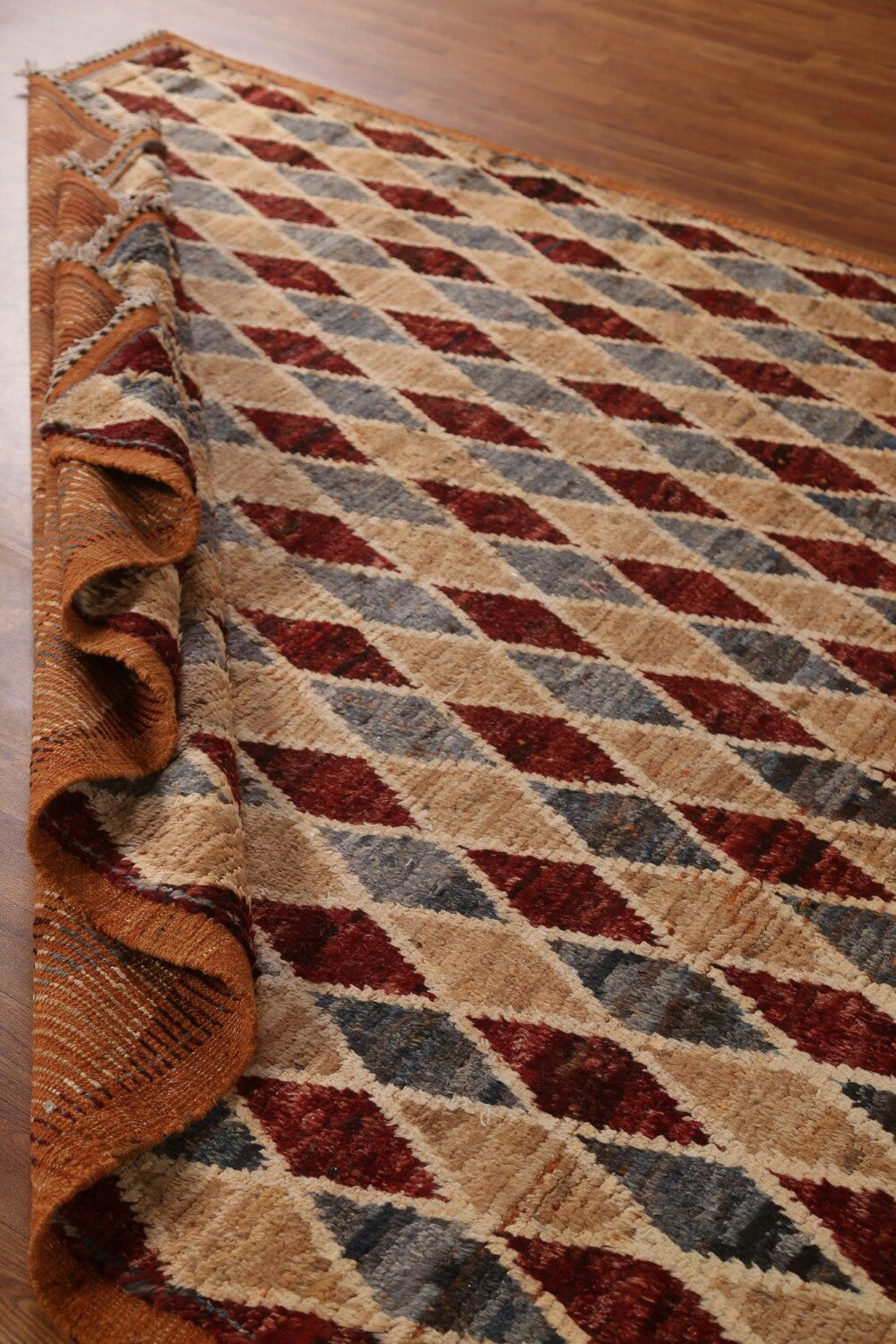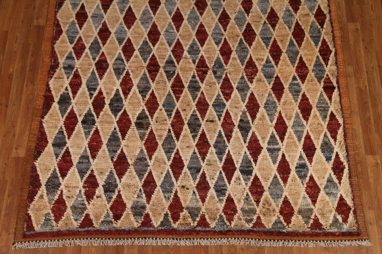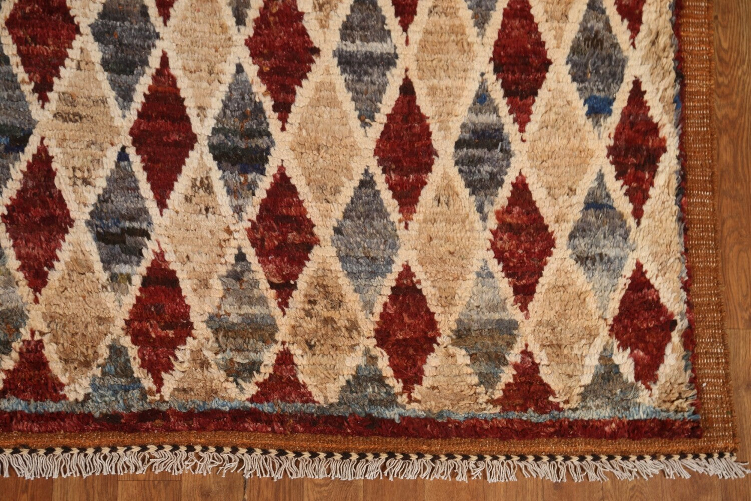 A Beautiful Genuine Pakistan Moroccan rug is Hand Knotted by skillful weavers in Pakistan with 100% Wool Material. This rug is in condition. dimensions are 9' 11'' X 6' 10'' in foot and 302 X 208 in centimeter. the primary color is Multi-Colored.