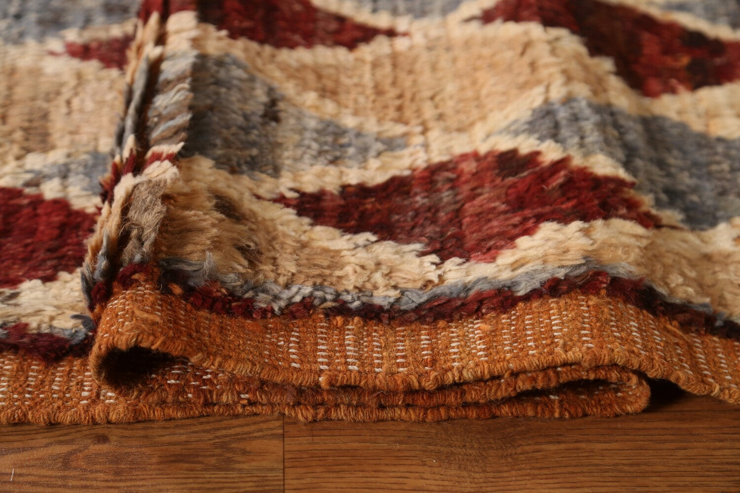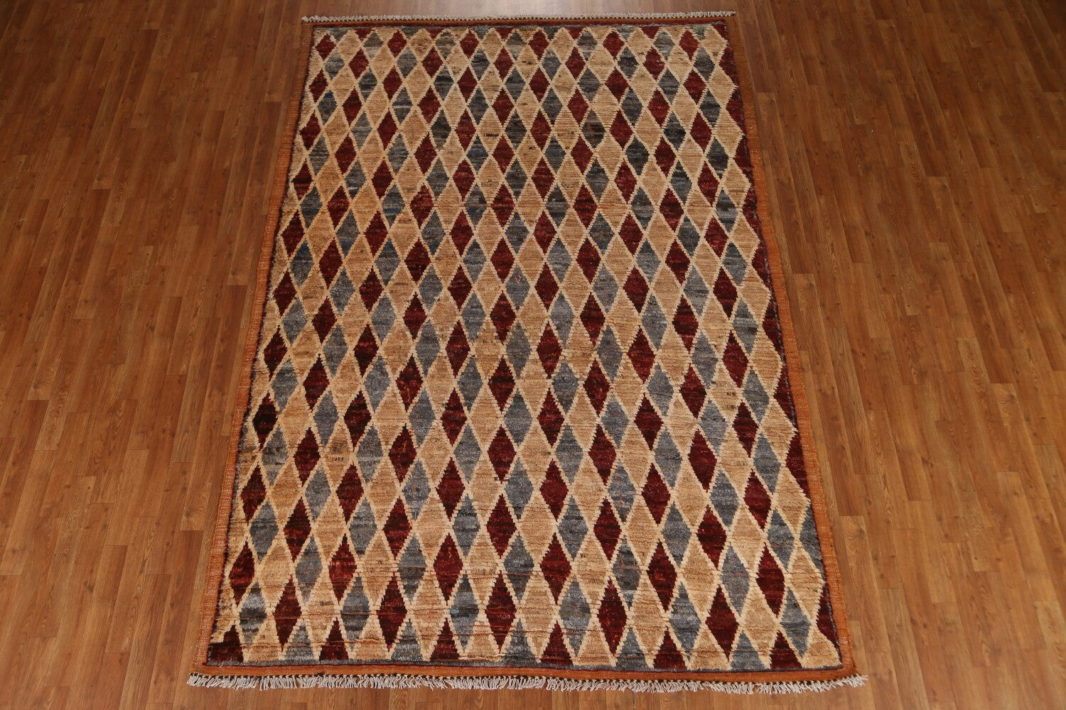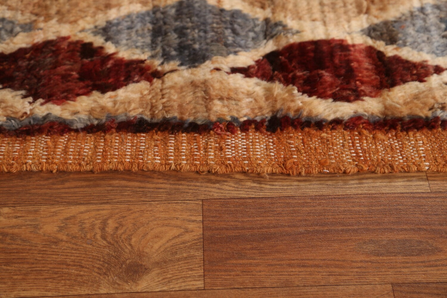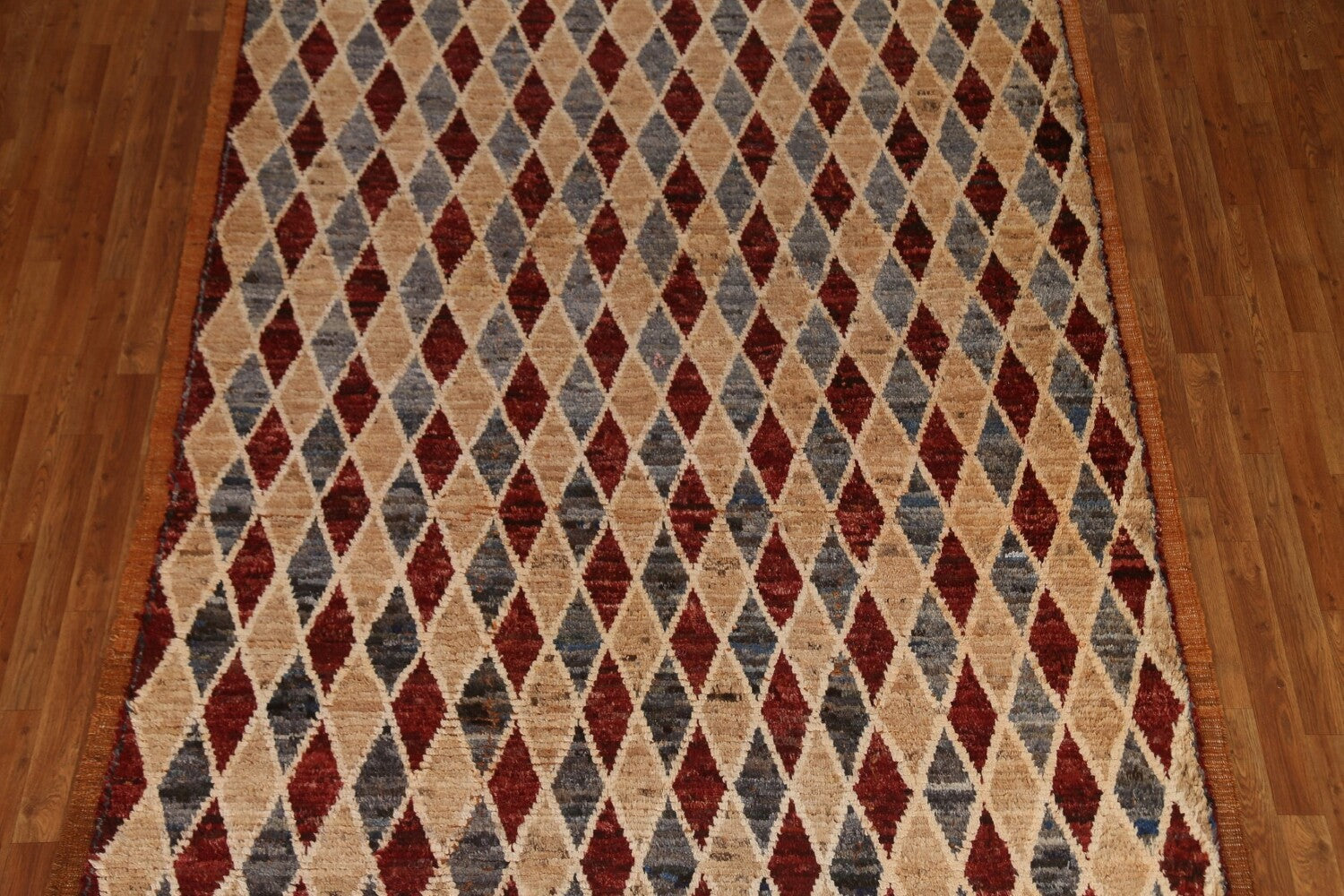 A Beautiful Genuine Pakistan Moroccan rug is Hand Knotted by skillful weavers in Pakistan with 100% Wool Material. This rug is in condition. dimensions are 9' 11'' X 6' 10'' in foot and 302 X 208 in centimeter. the primary color is Multi-Colored.