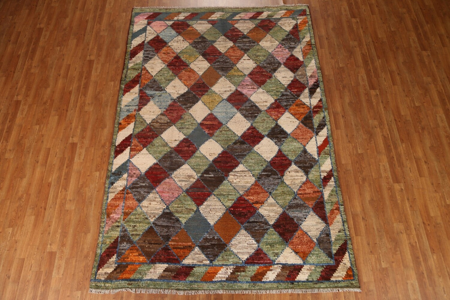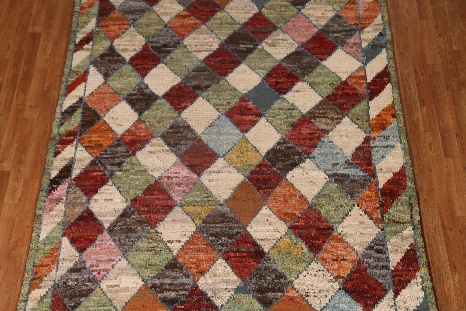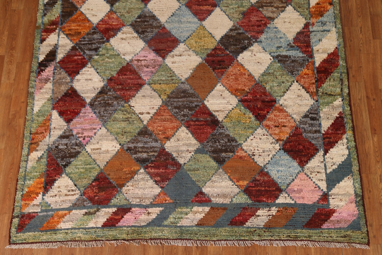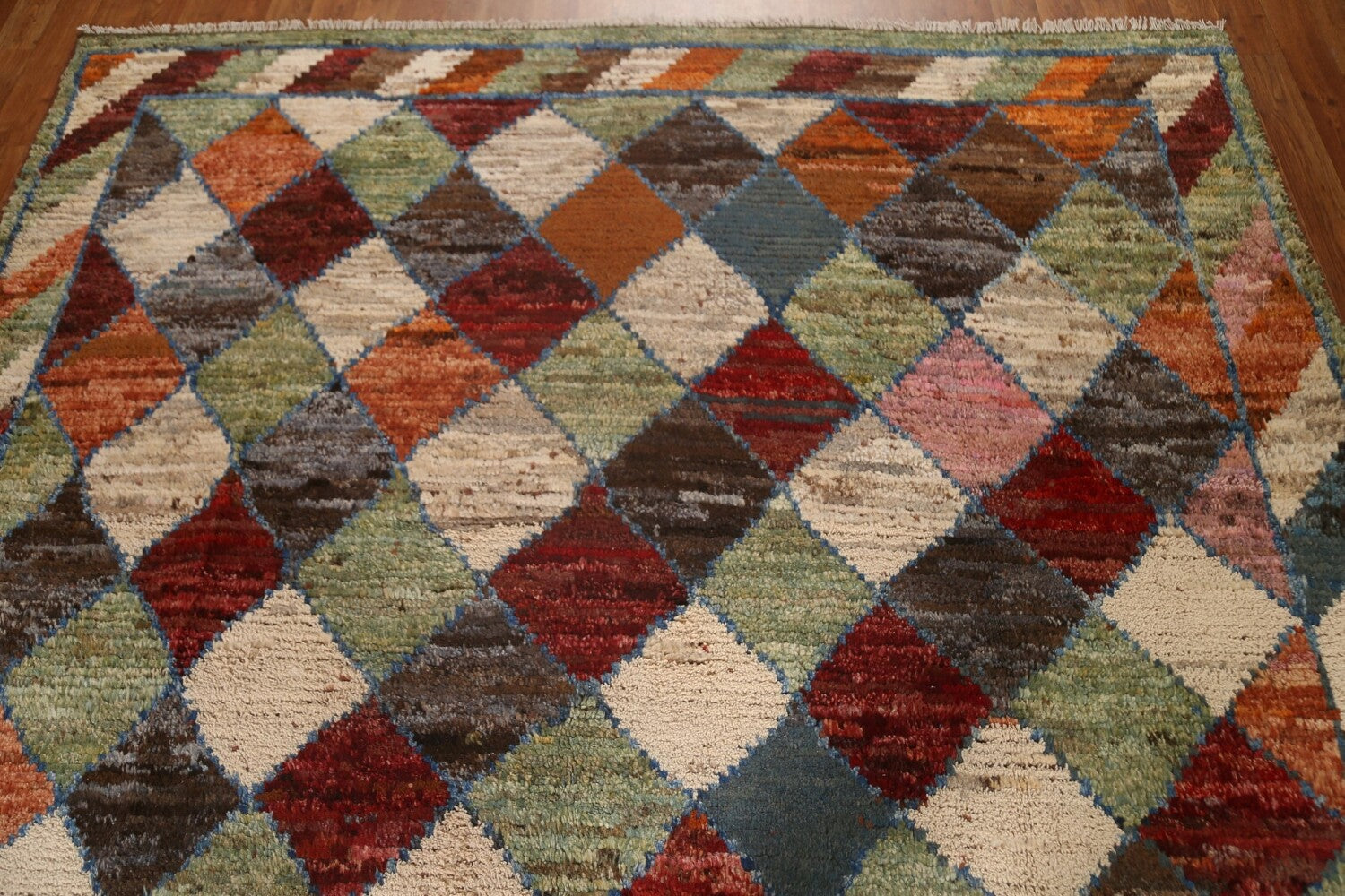 A Beautiful Genuine Pakistan Moroccan rug is Hand Knotted by skillful weavers in Pakistan with 100% Wool Material. This rug is in condition. dimensions are 10' 0'' X 6' 8'' in foot and 305 X 203 in centimeter. the primary color is Multi-Colored.
