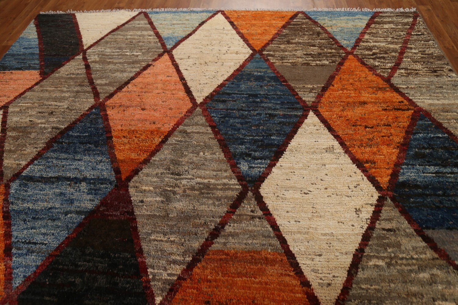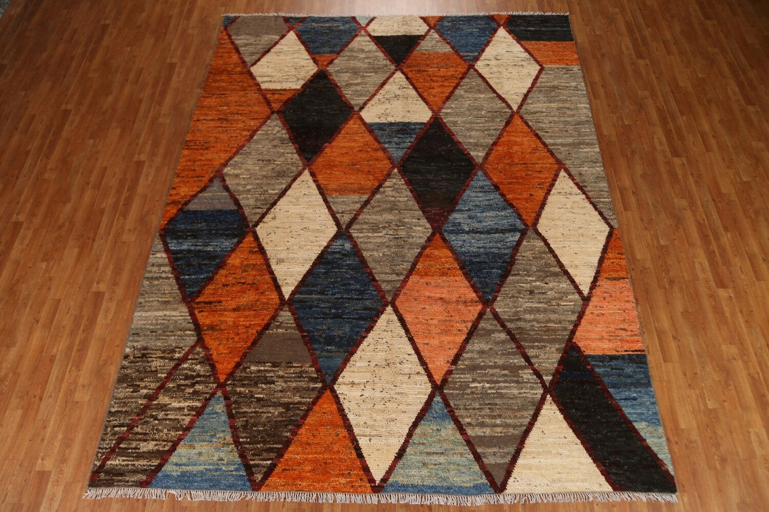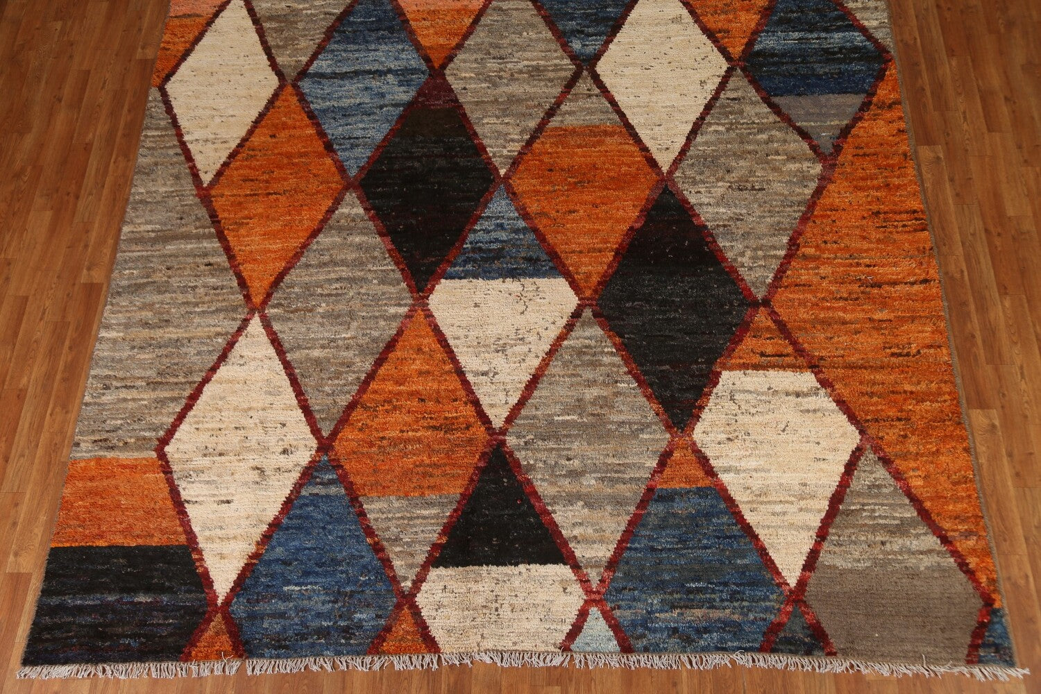 A Beautiful Genuine Pakistan Moroccan rug is Hand Knotted by skillful weavers in Pakistan with 100% Wool Material. This rug is in condition. dimensions are 11' 11'' X 9' 1'' in foot and 363 X 277 in centimeter. the primary color is Multi-Colored.