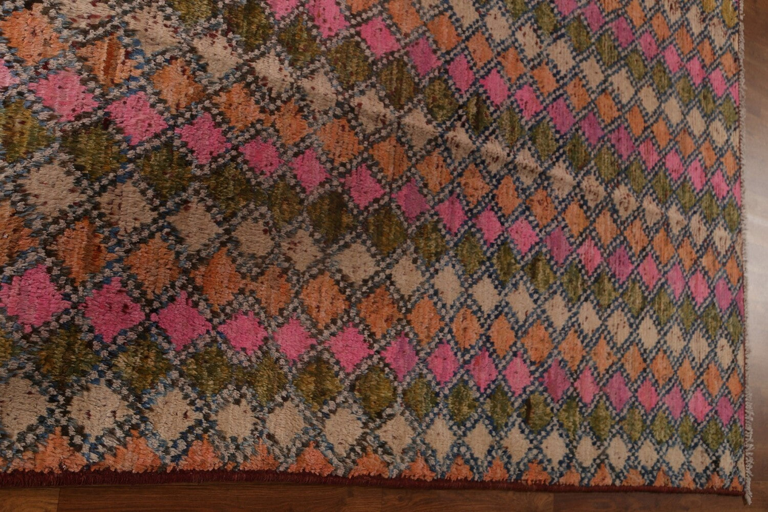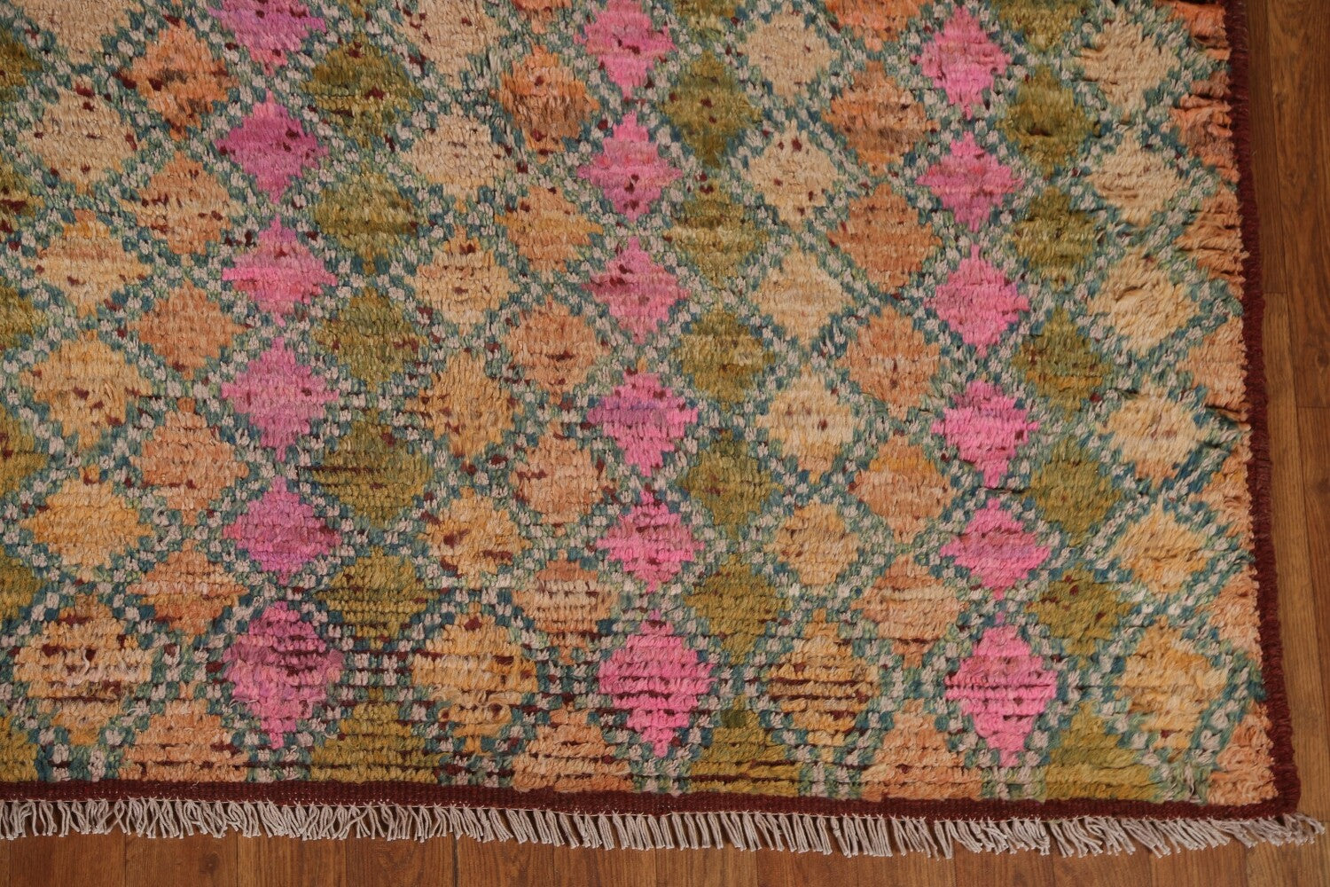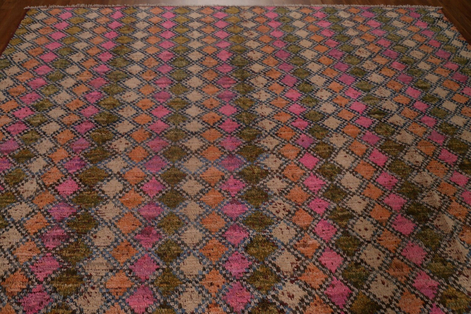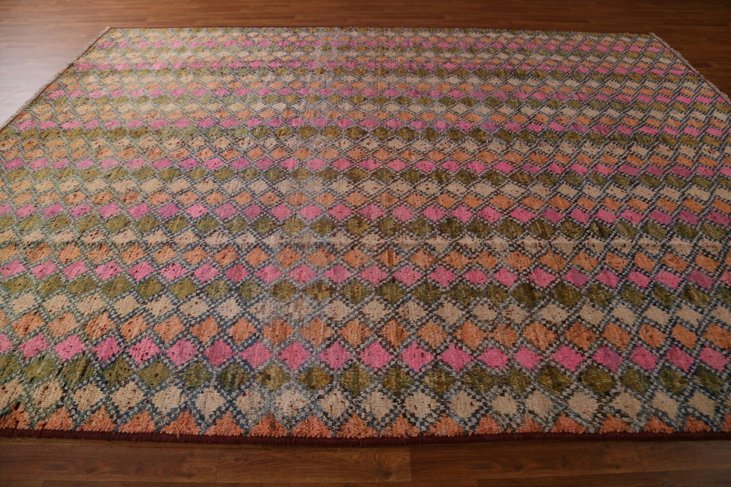 A Beautiful Genuine Pakistan Moroccan rug is Hand Knotted by skillful weavers in Pakistan with 100% Wool Material. This rug is in condition. dimensions are 11' 9'' X 8' 8'' in foot and 358 X 264 in centimeter. the primary color is Multi-Colored.