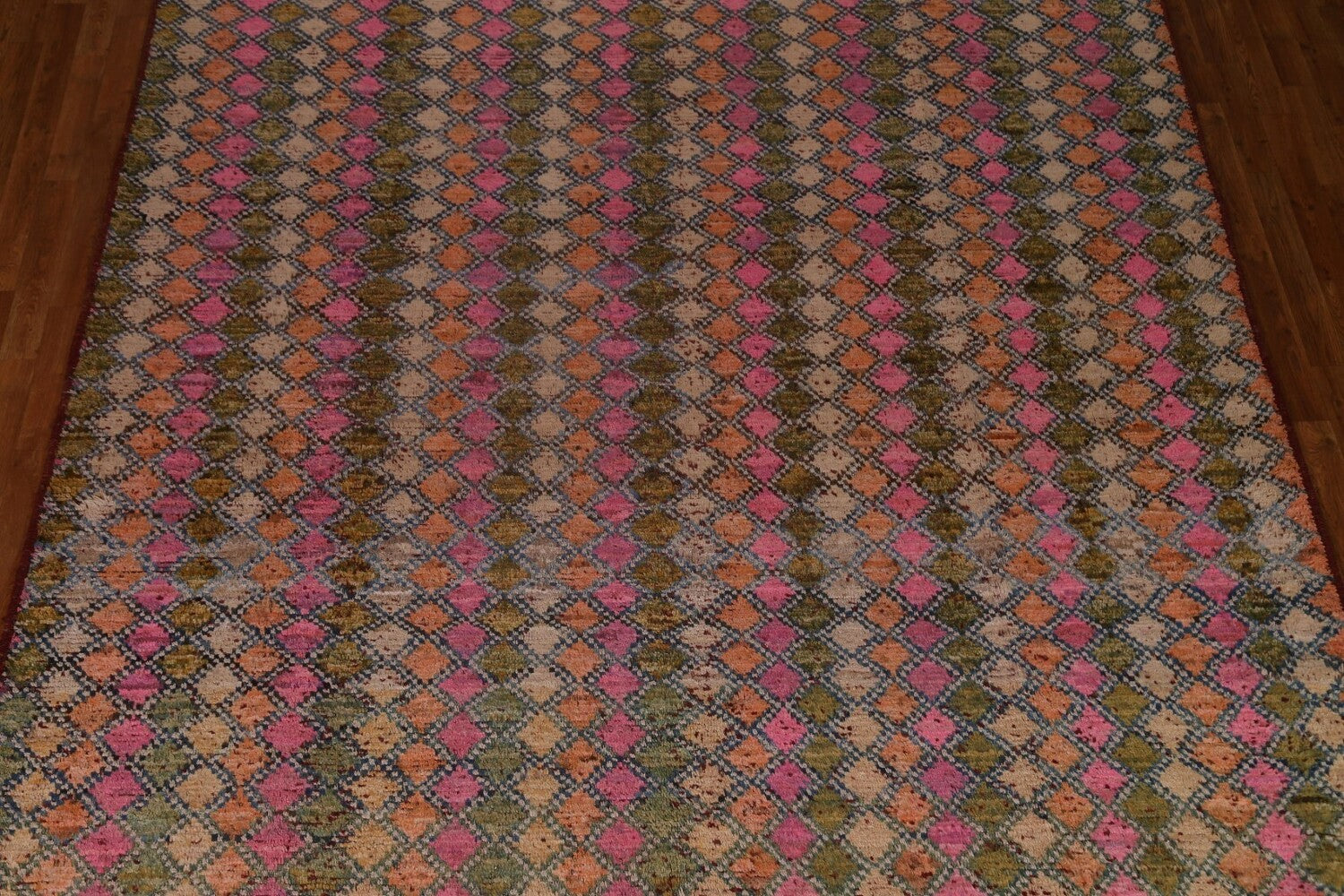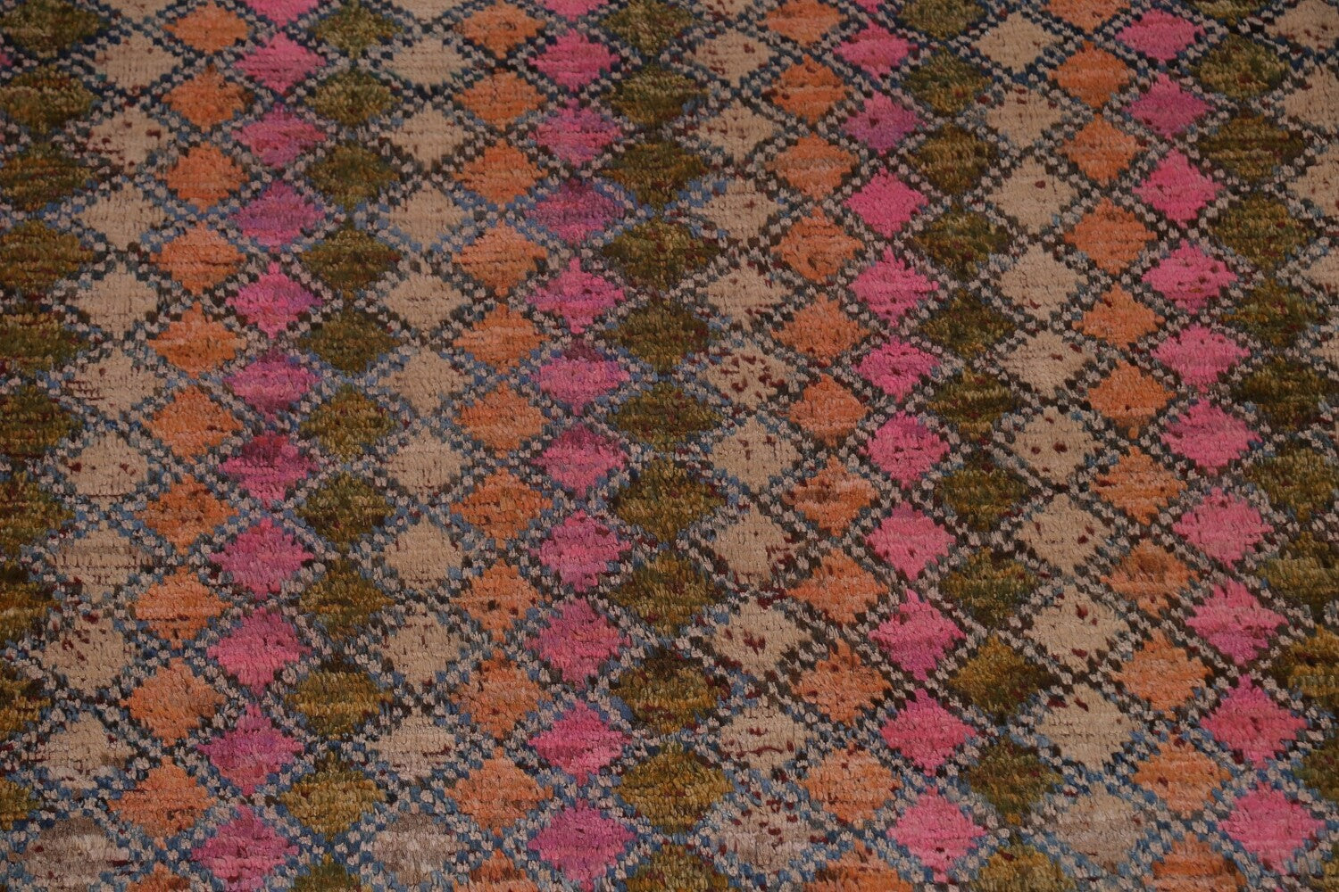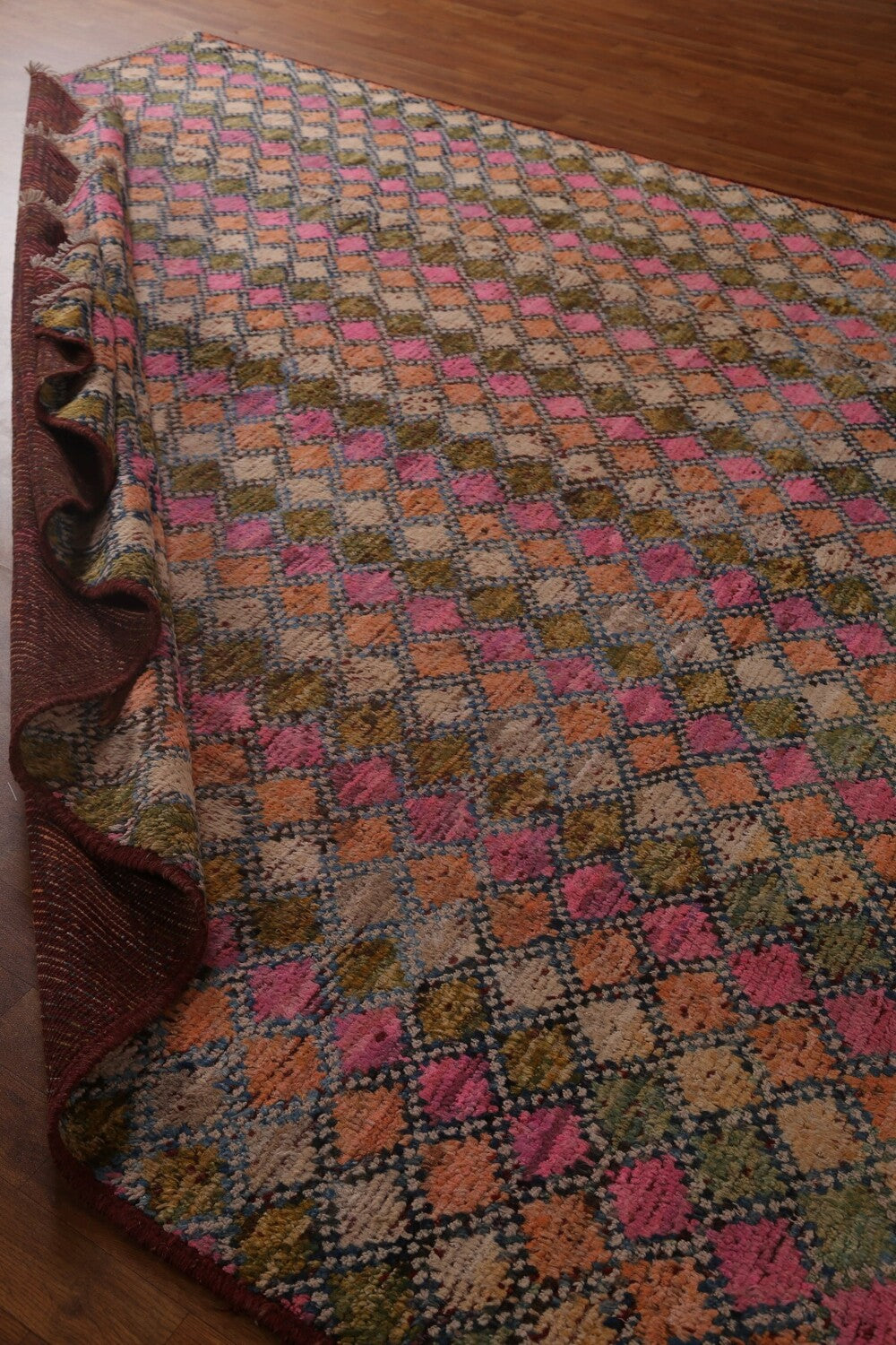 A Beautiful Genuine Pakistan Moroccan rug is Hand Knotted by skillful weavers in Pakistan with 100% Wool Material. This rug is in condition. dimensions are 11' 9'' X 8' 8'' in foot and 358 X 264 in centimeter. the primary color is Multi-Colored.