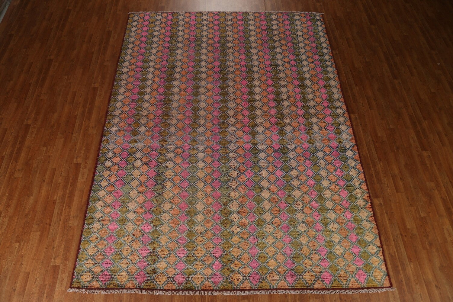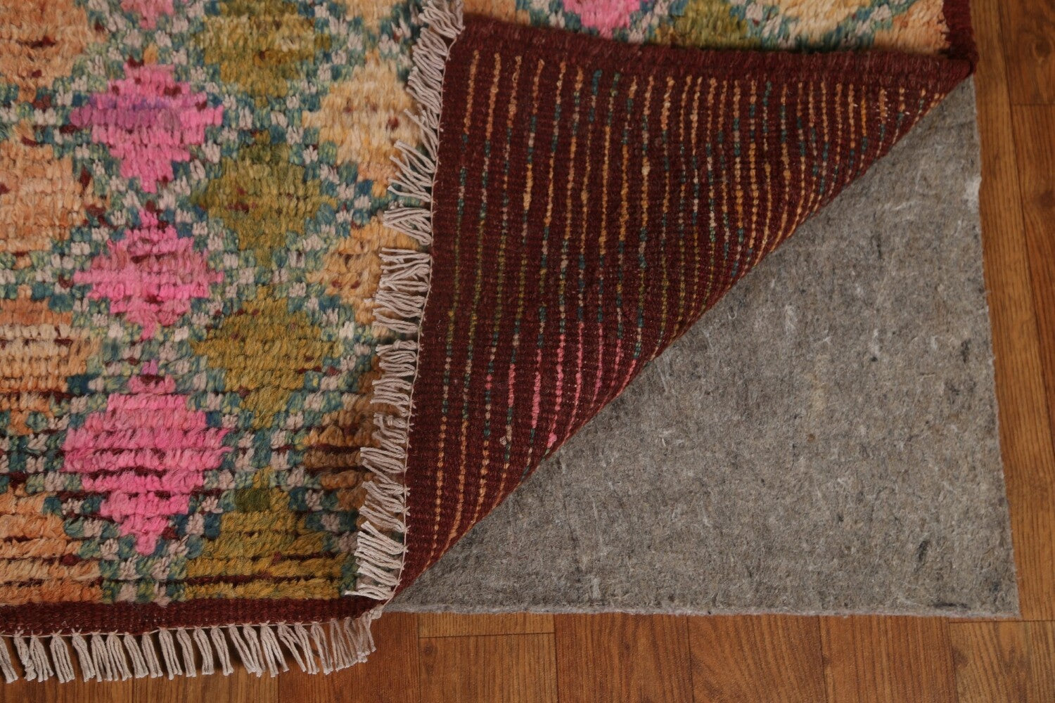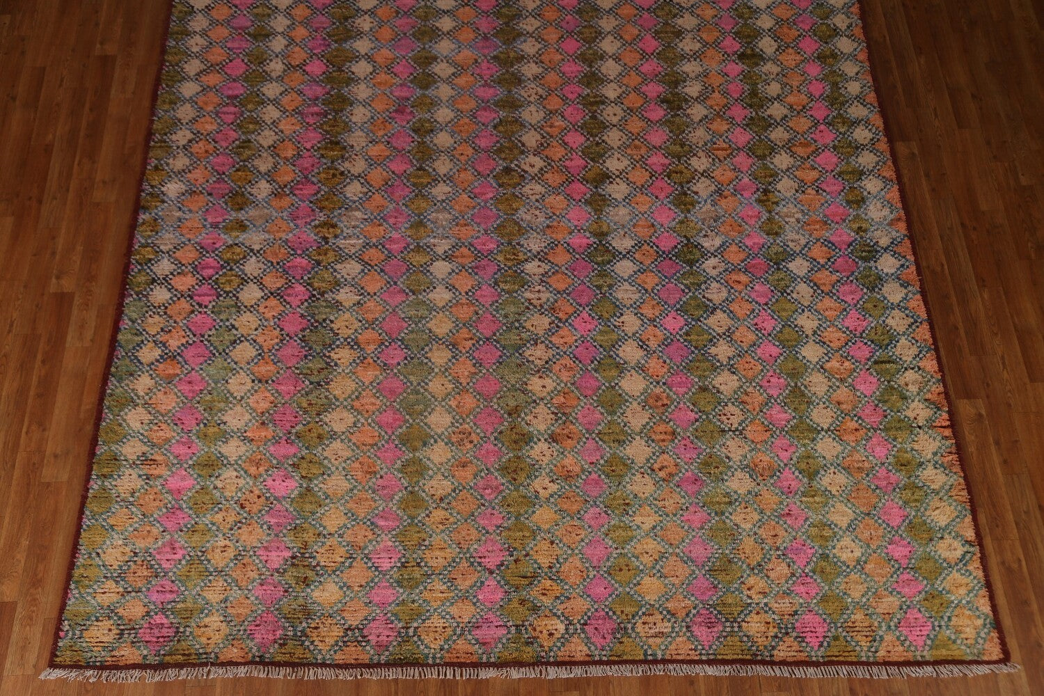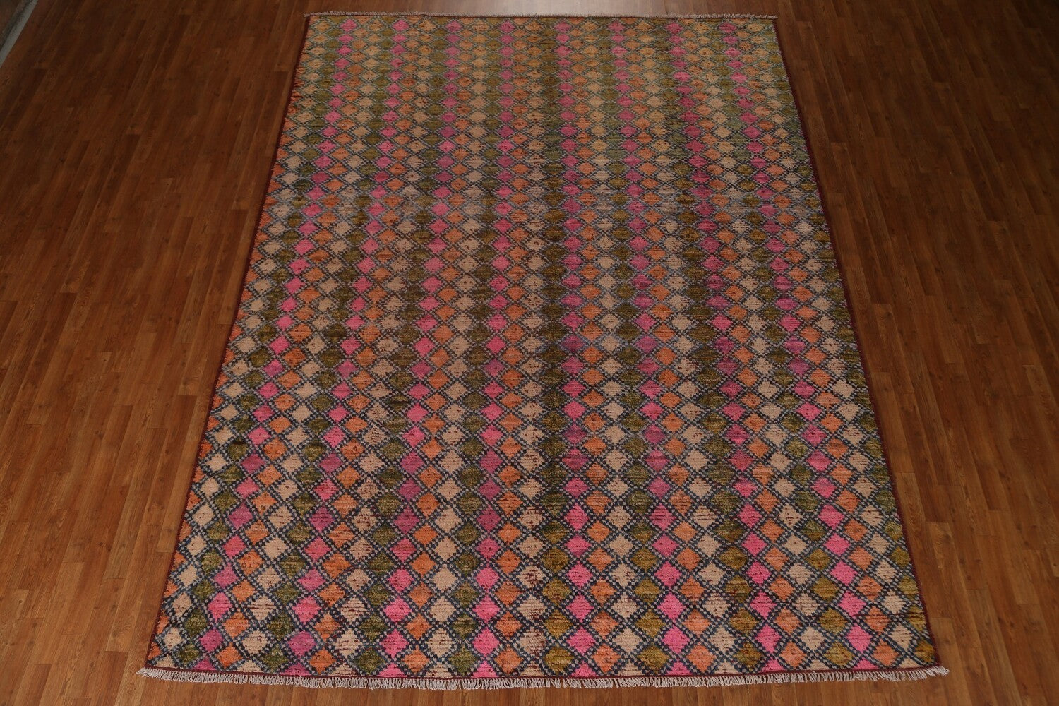 A Beautiful Genuine Pakistan Moroccan rug is Hand Knotted by skillful weavers in Pakistan with 100% Wool Material. This rug is in condition. dimensions are 11' 9'' X 8' 8'' in foot and 358 X 264 in centimeter. the primary color is Multi-Colored.