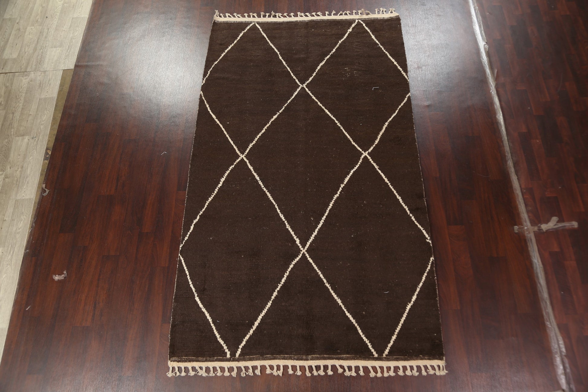 A Beautiful Genuine Morocco Moroccan rug is Hand Knotted by skillful weavers in Morocco with 100% Wool Material. This rug is in New, First Quality condition. dimensions are 10' 0'' X 5' 0'' in foot and 305 X 152 in centimeter. the primary color is Brown.