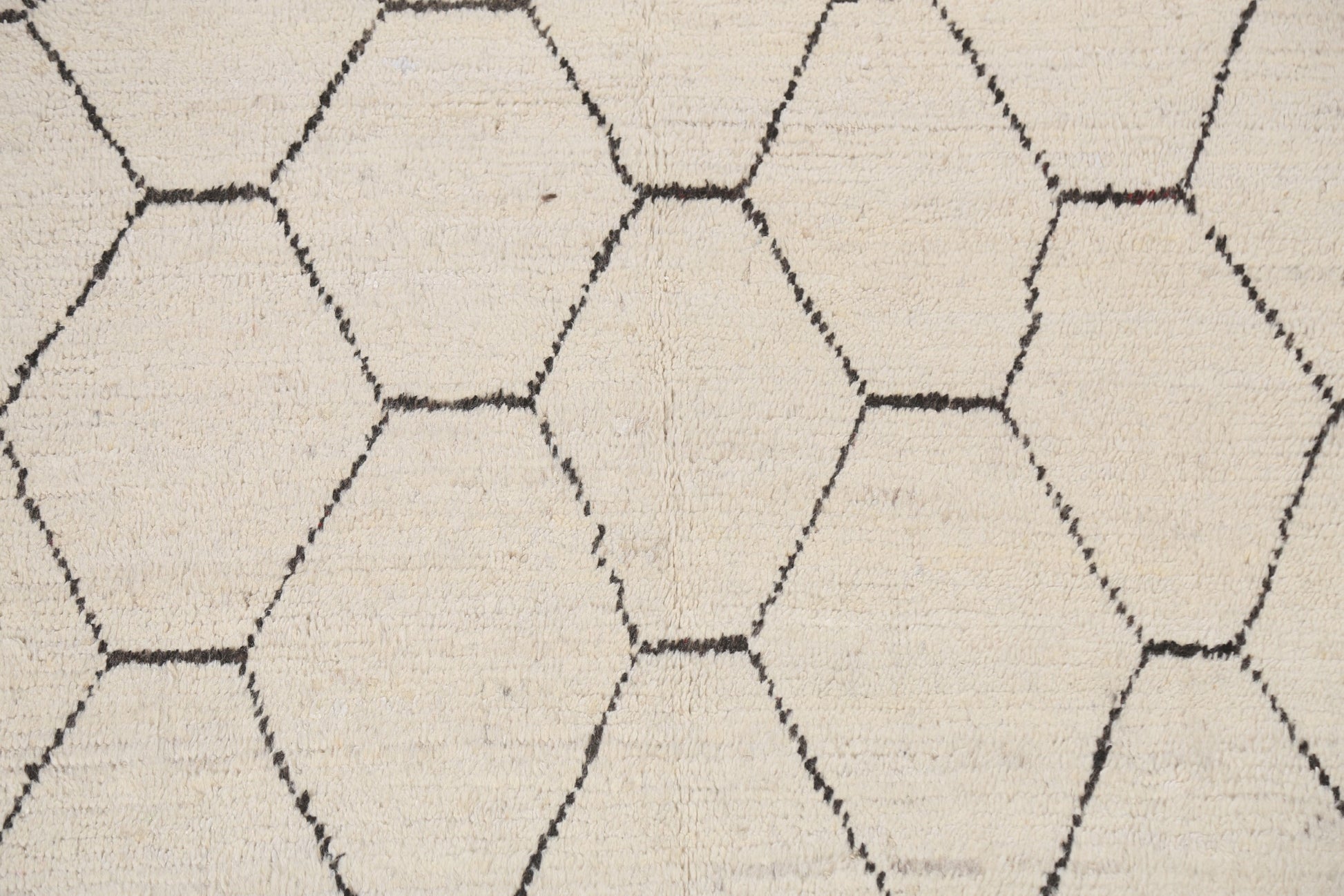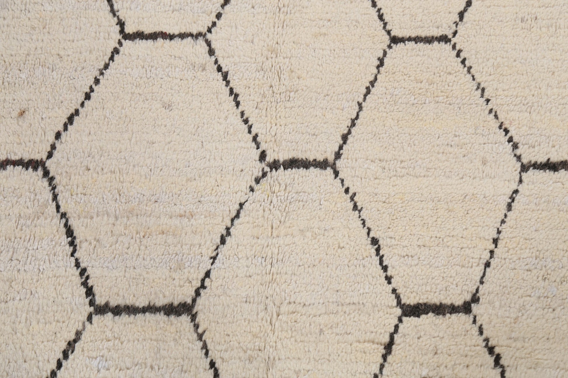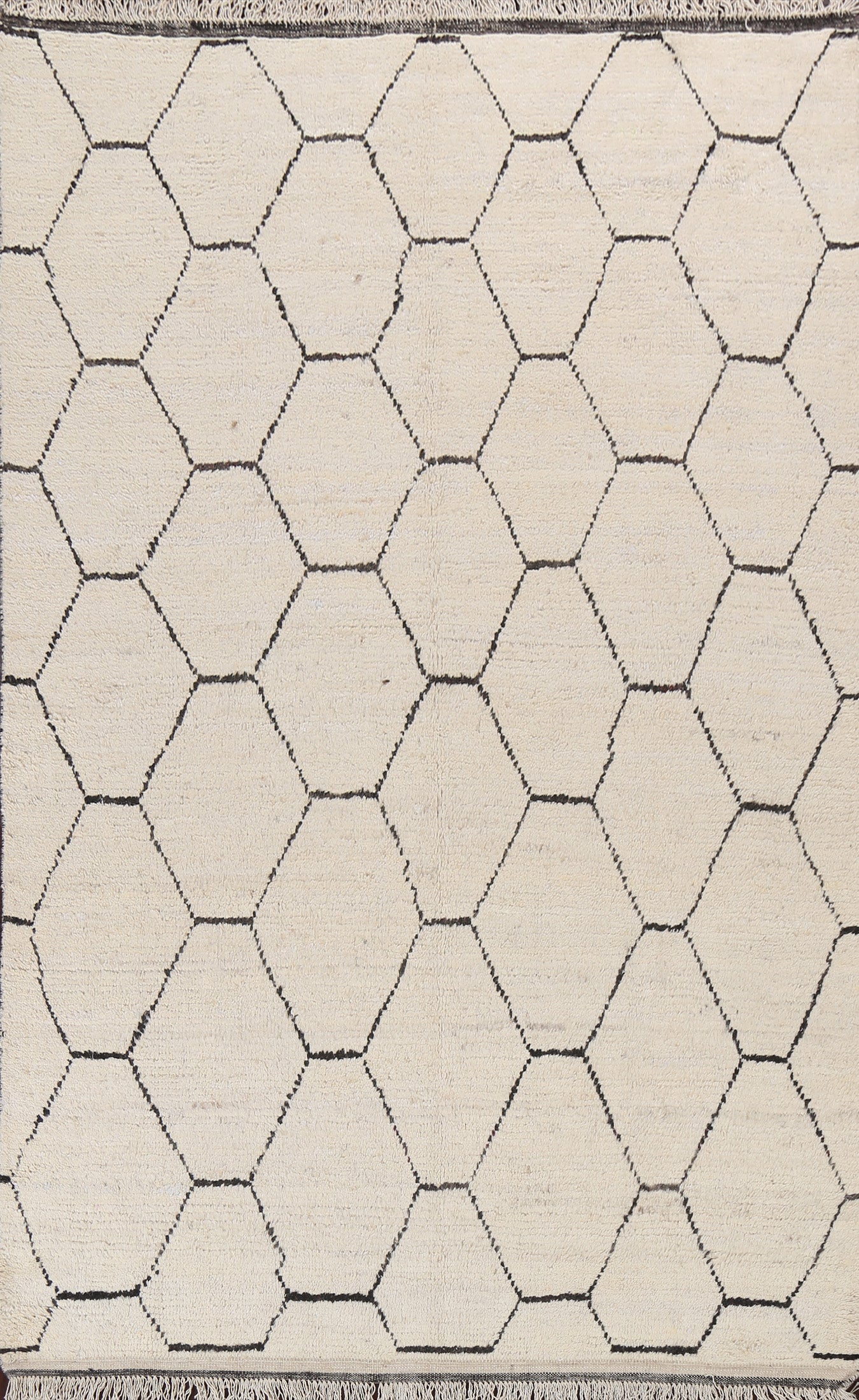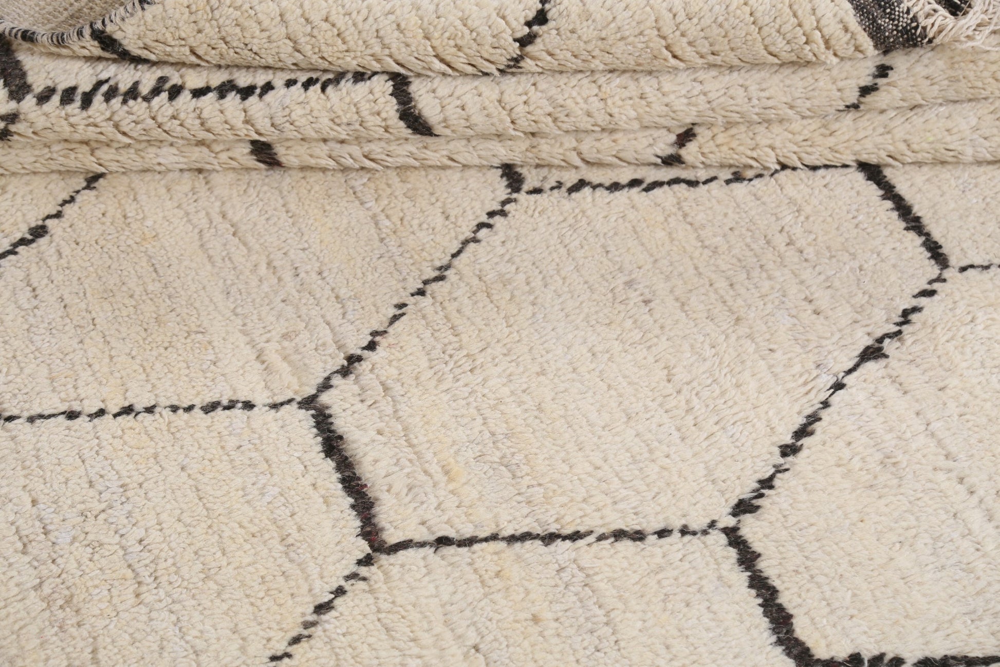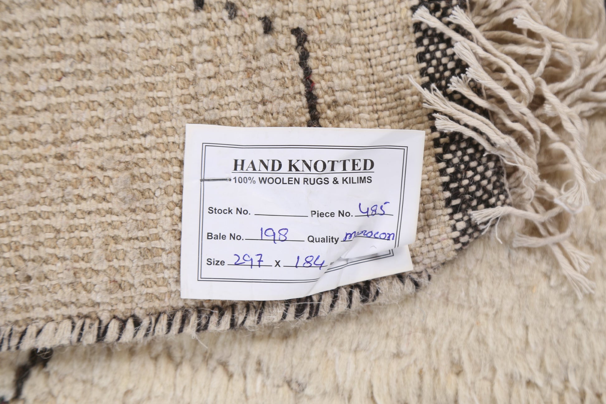 A Beautiful Genuine Morocco Moroccan rug is Hand Knotted by skillful weavers in Morocco with 100% Wool Material. This rug is in New, First Quality condition. dimensions are 10' 2'' X 6' 1'' in foot and 310 X 185 in centimeter. the primary color is Beige & Ivories.