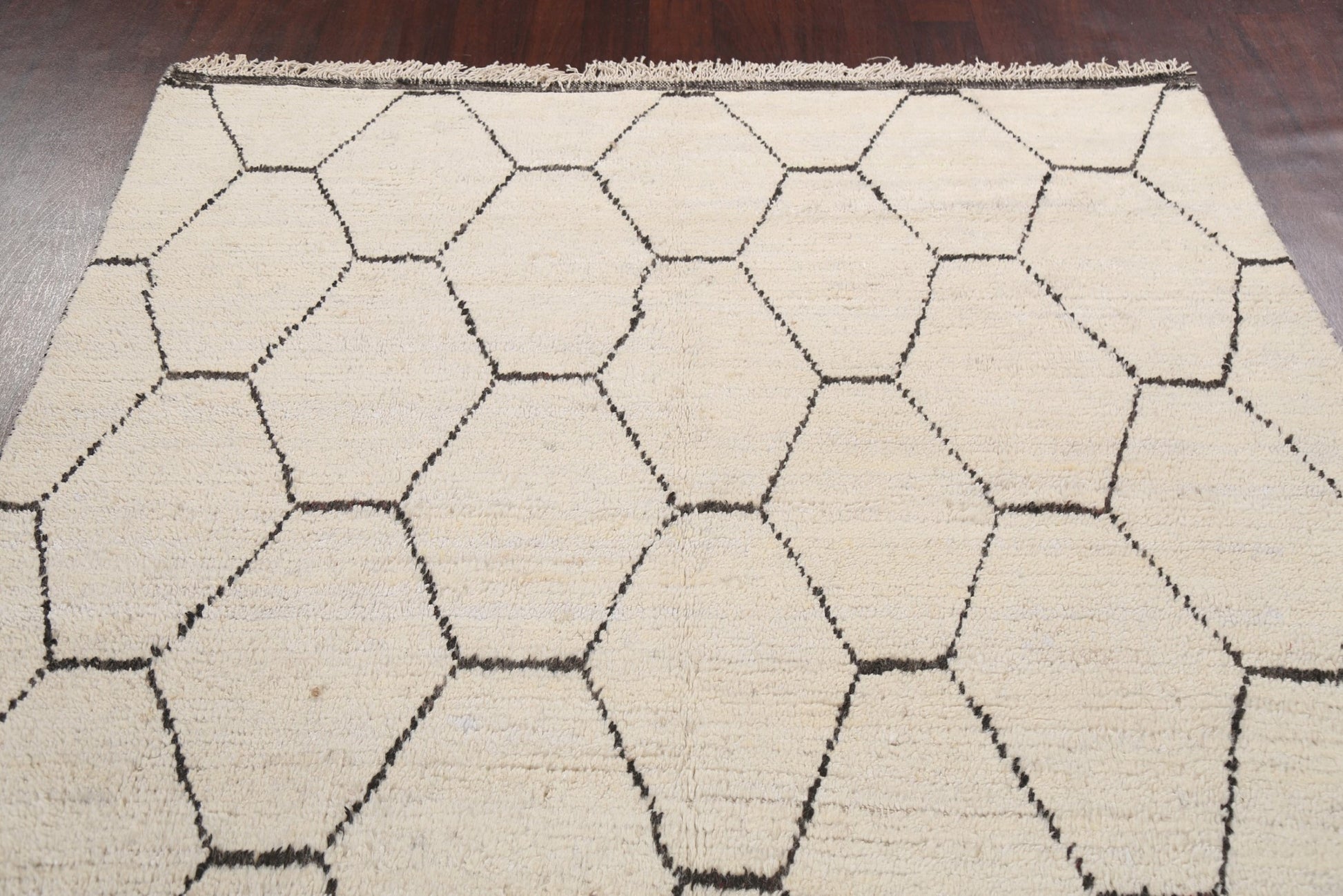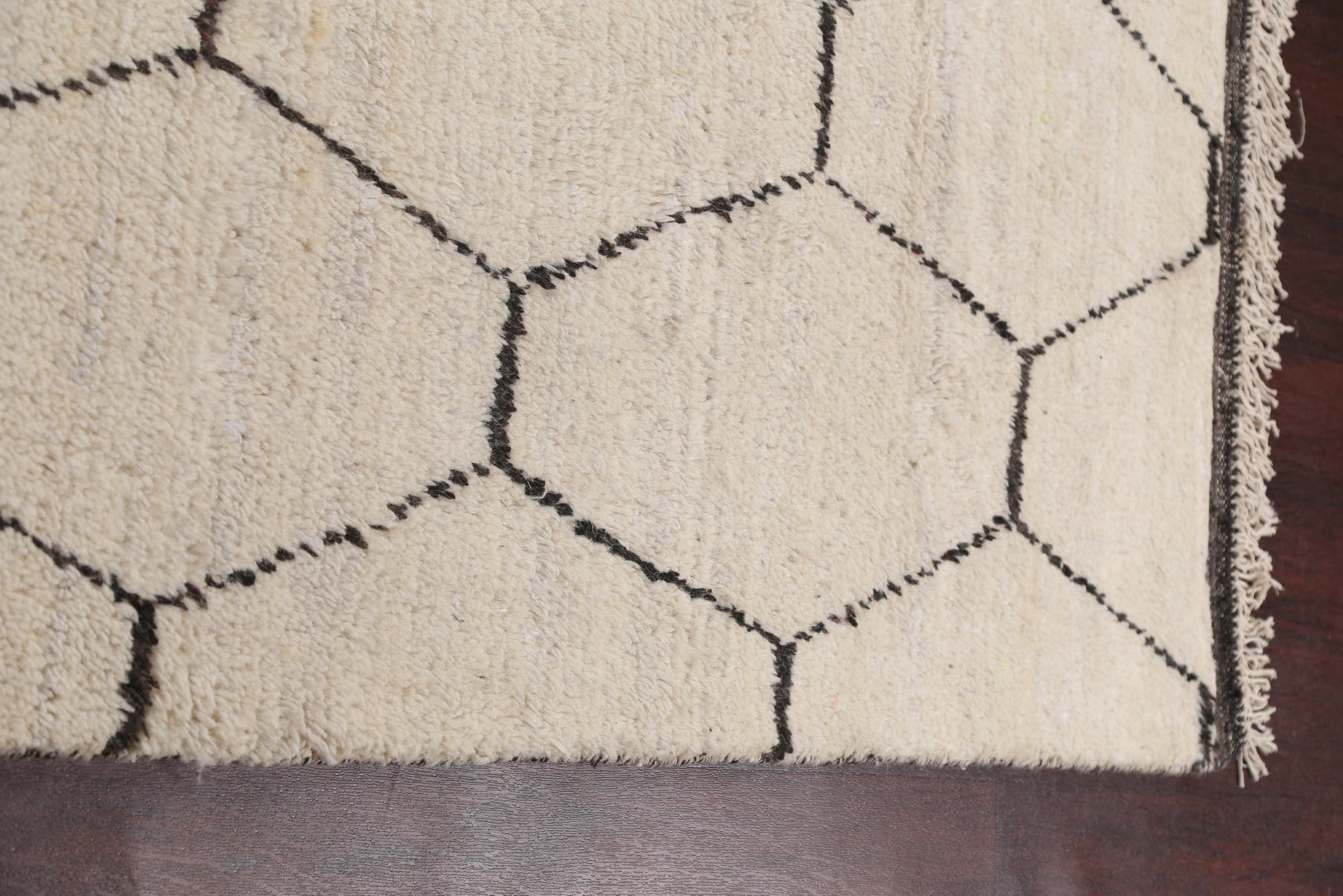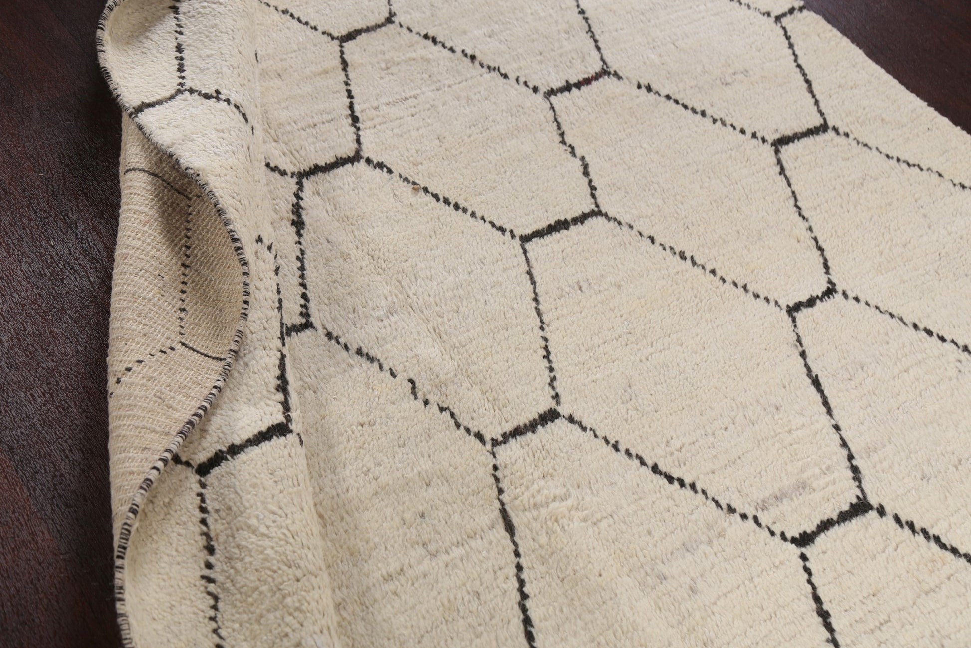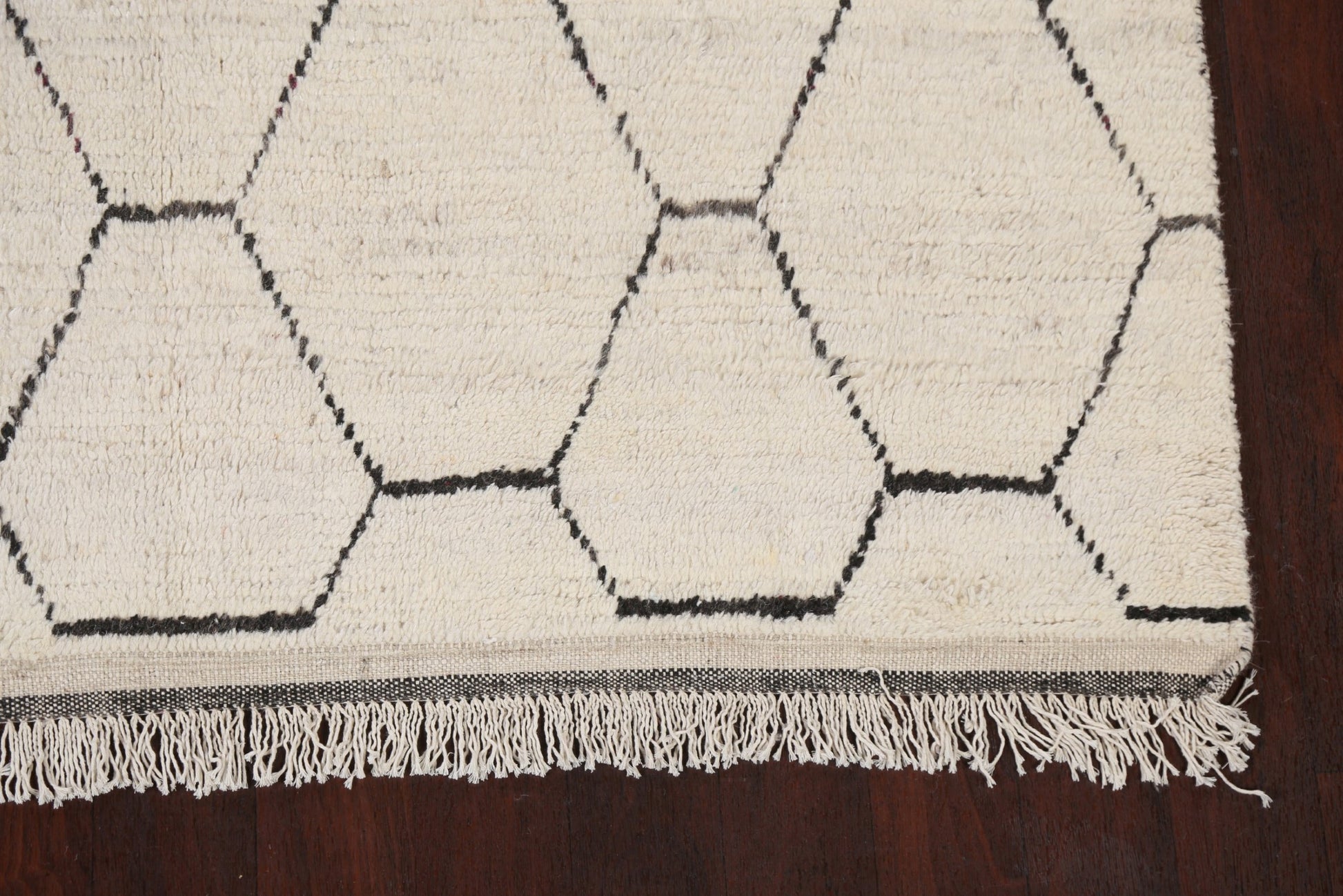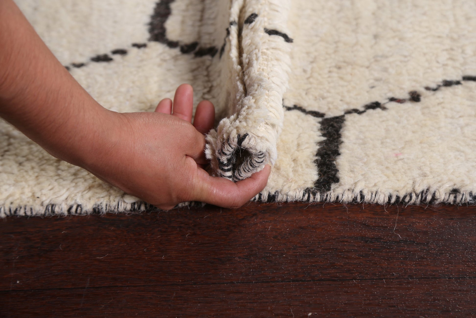 A Beautiful Genuine Morocco Moroccan rug is Hand Knotted by skillful weavers in Morocco with 100% Wool Material. This rug is in New, First Quality condition. dimensions are 10' 2'' X 6' 1'' in foot and 310 X 185 in centimeter. the primary color is Beige & Ivories.
