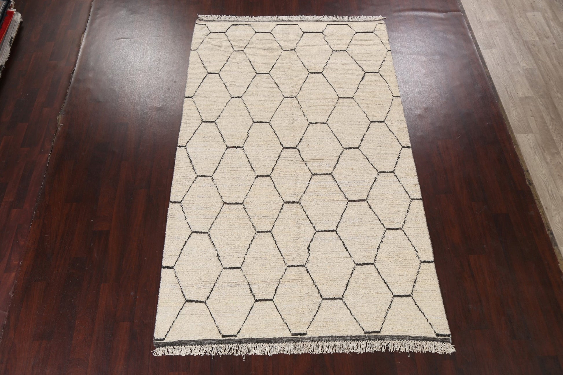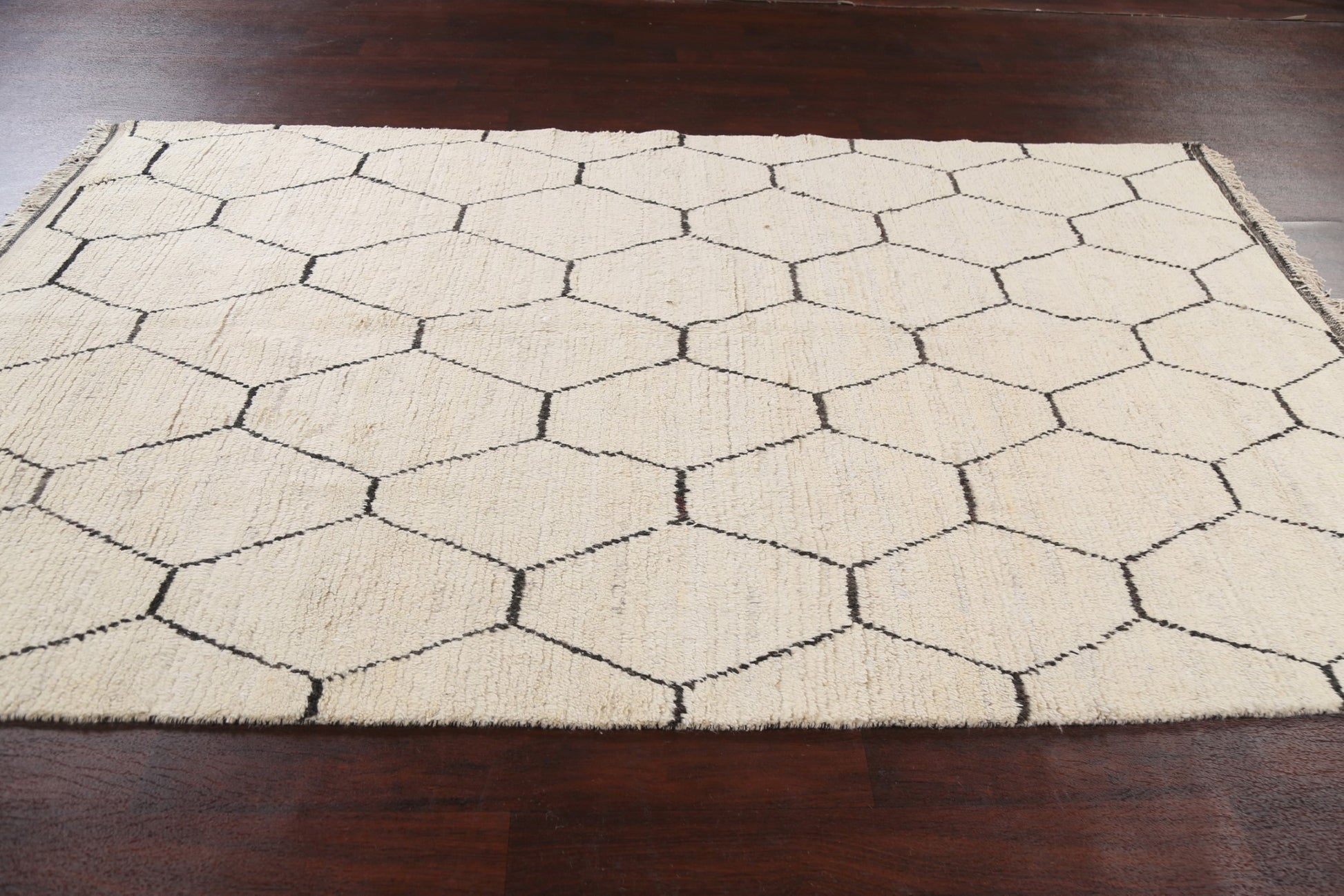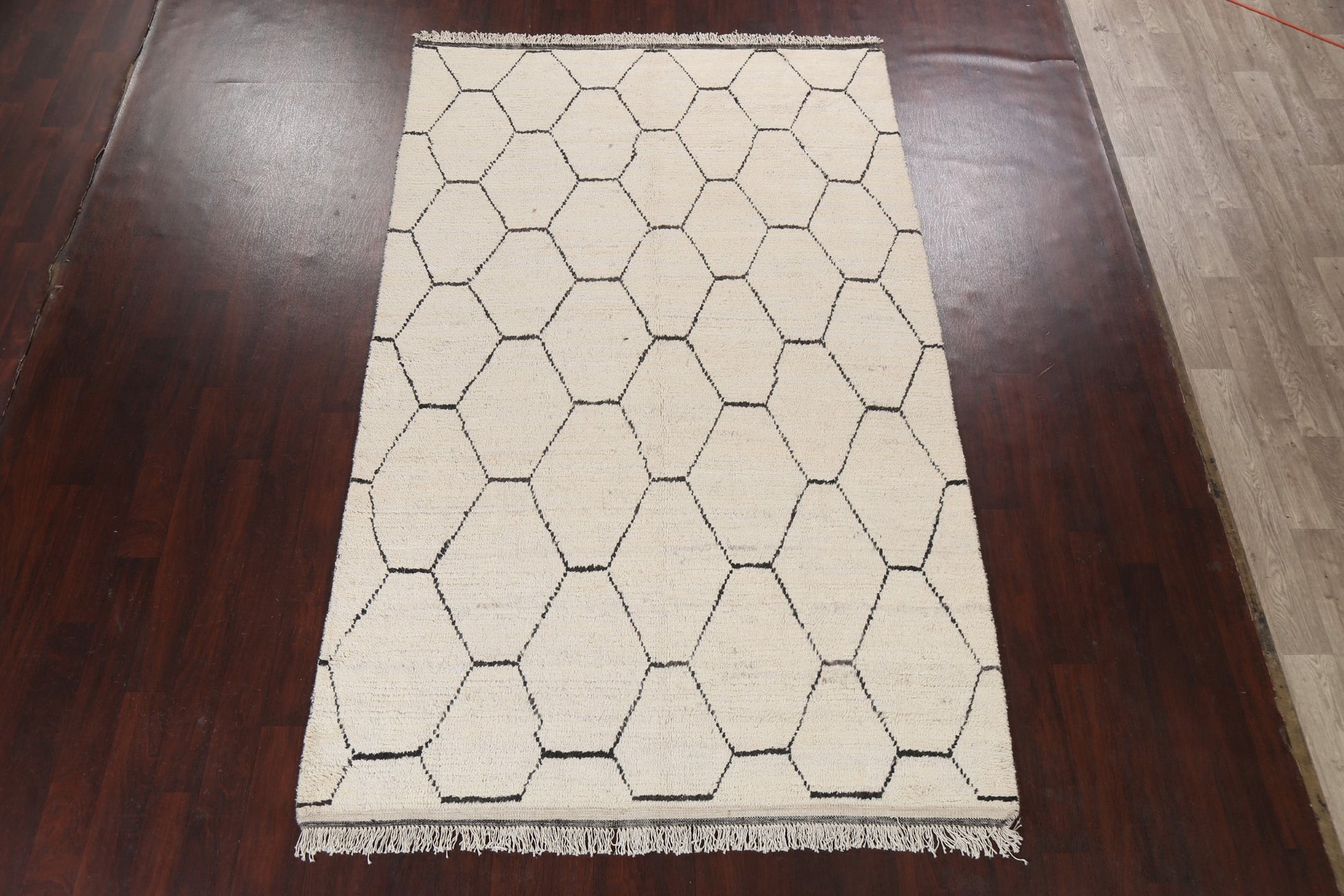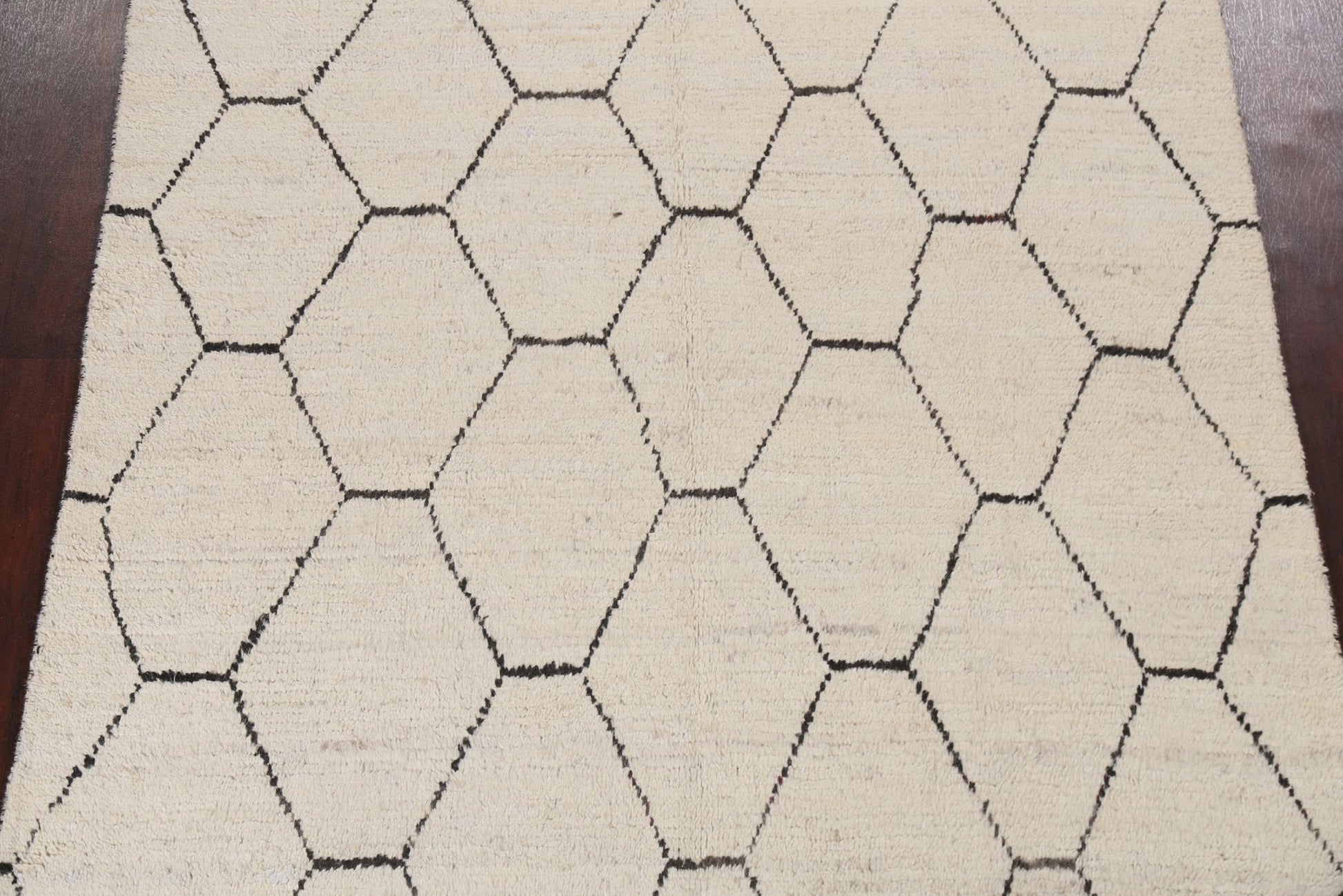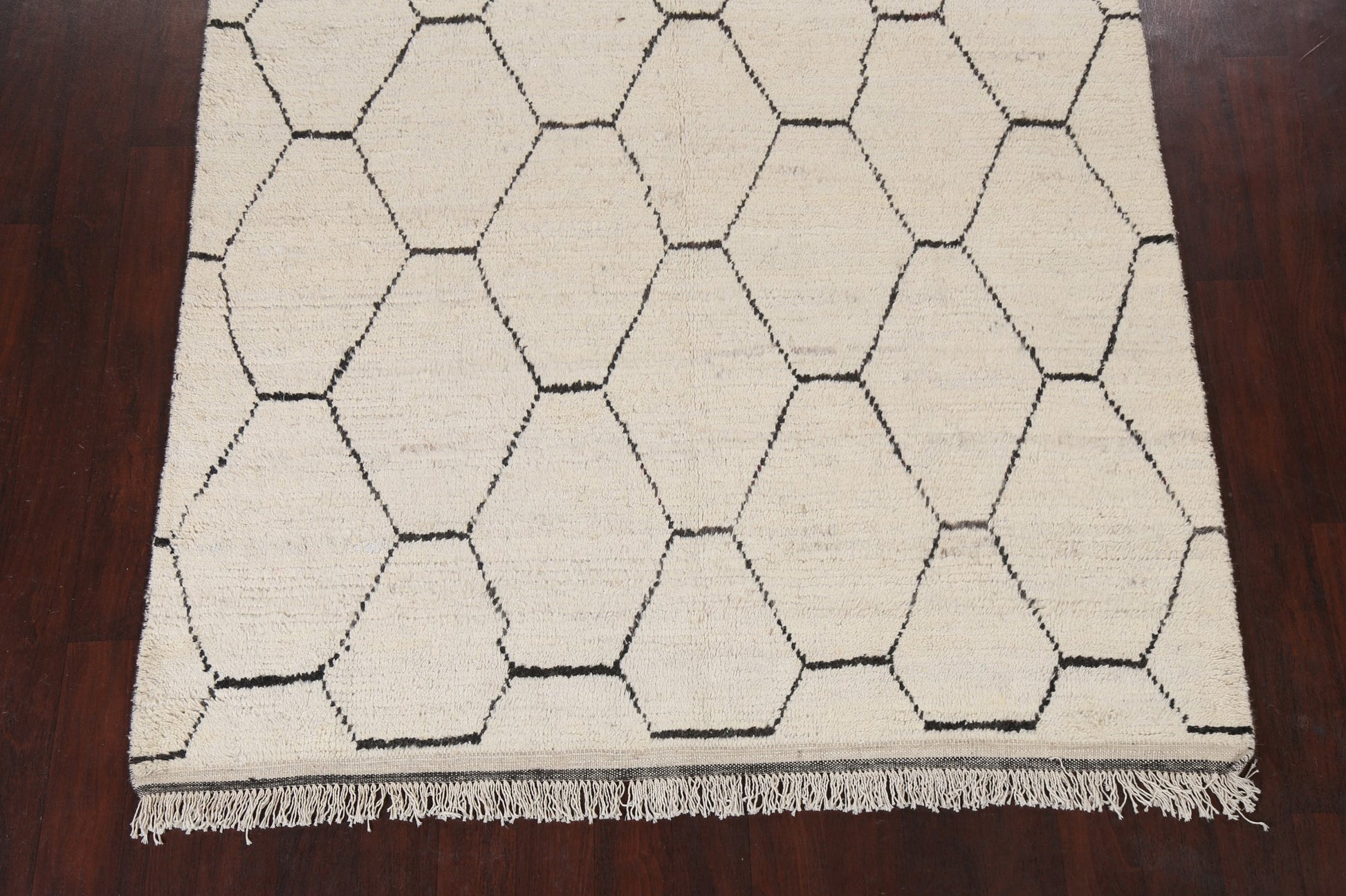 A Beautiful Genuine Morocco Moroccan rug is Hand Knotted by skillful weavers in Morocco with 100% Wool Material. This rug is in New, First Quality condition. dimensions are 10' 2'' X 6' 1'' in foot and 310 X 185 in centimeter. the primary color is Beige & Ivories.