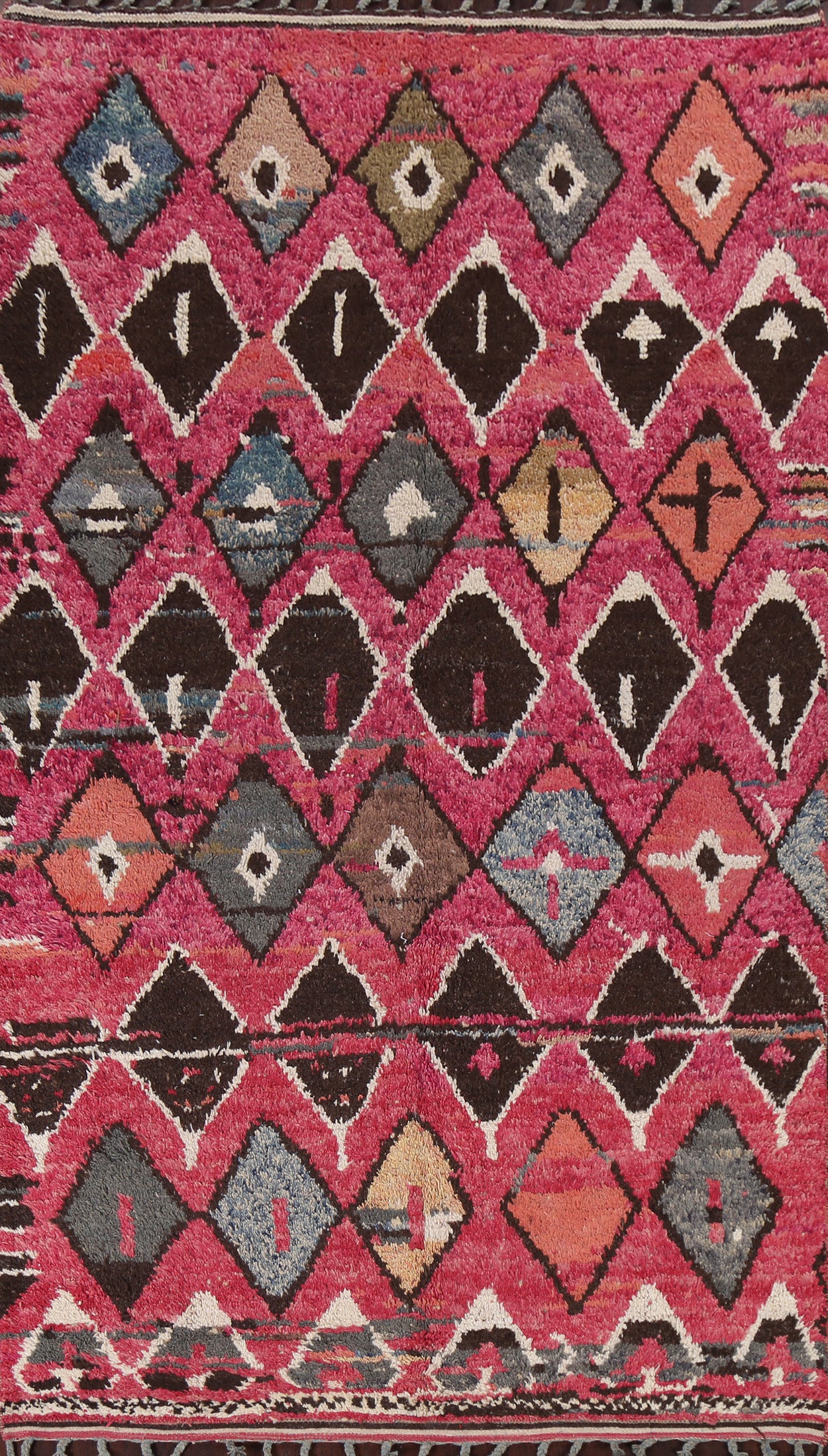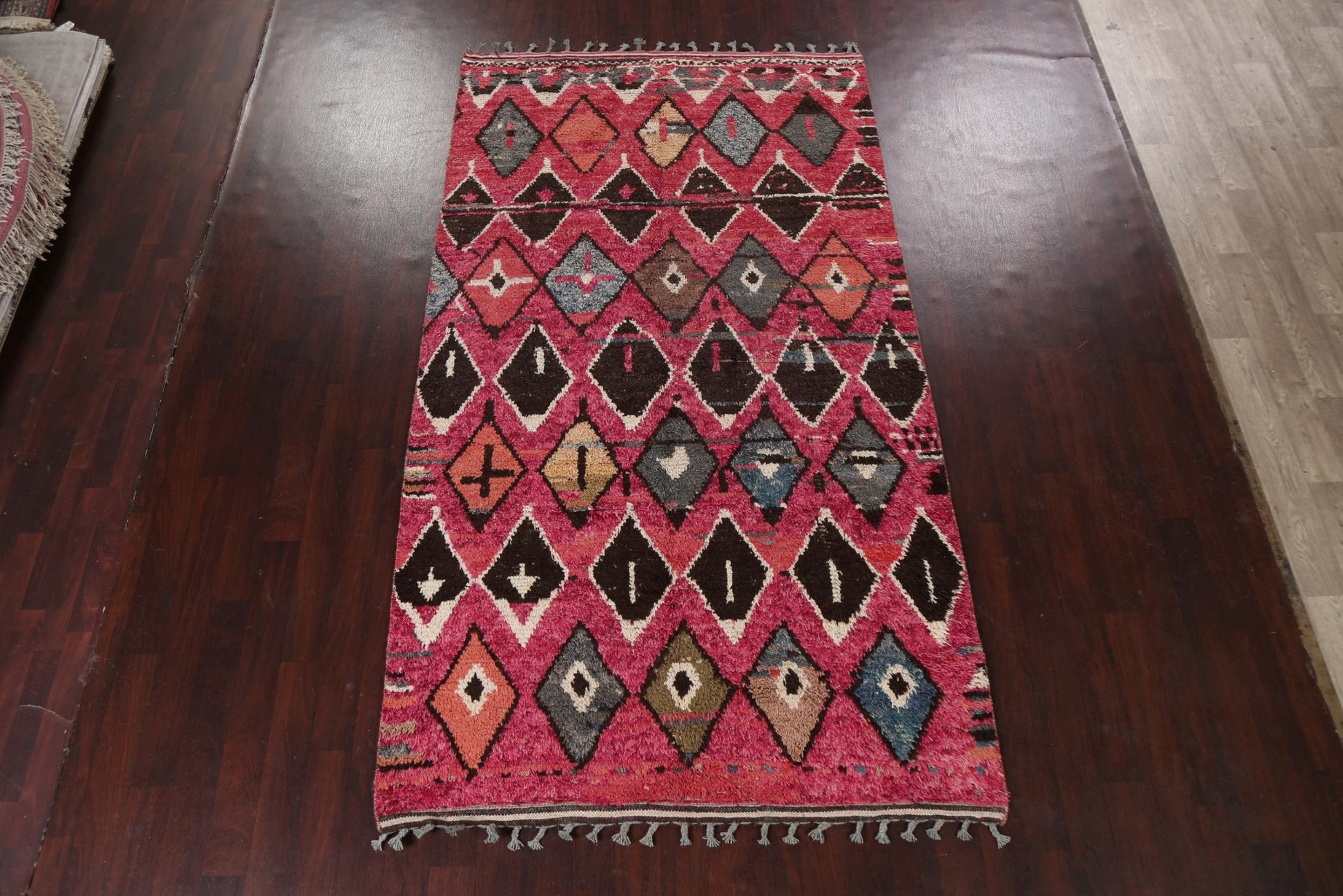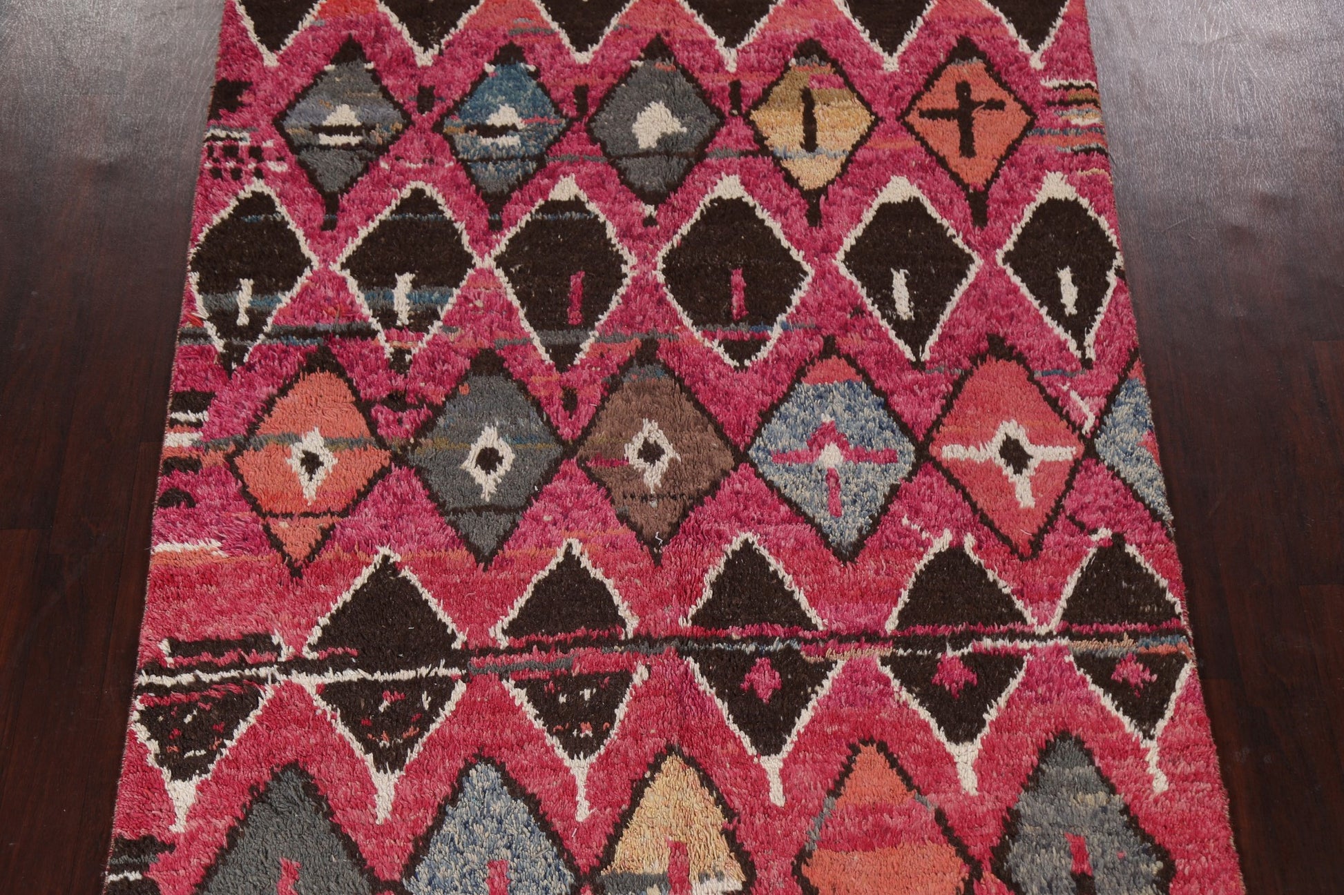 A Beautiful Genuine Morocco Moroccan rug is Hand Knotted by skillful weavers in Morocco with 100% Wool Material. This rug is in New, First Quality condition. dimensions are 10' 6'' X 5' 10'' in foot and 320 X 178 in centimeter. the primary color is Pink.