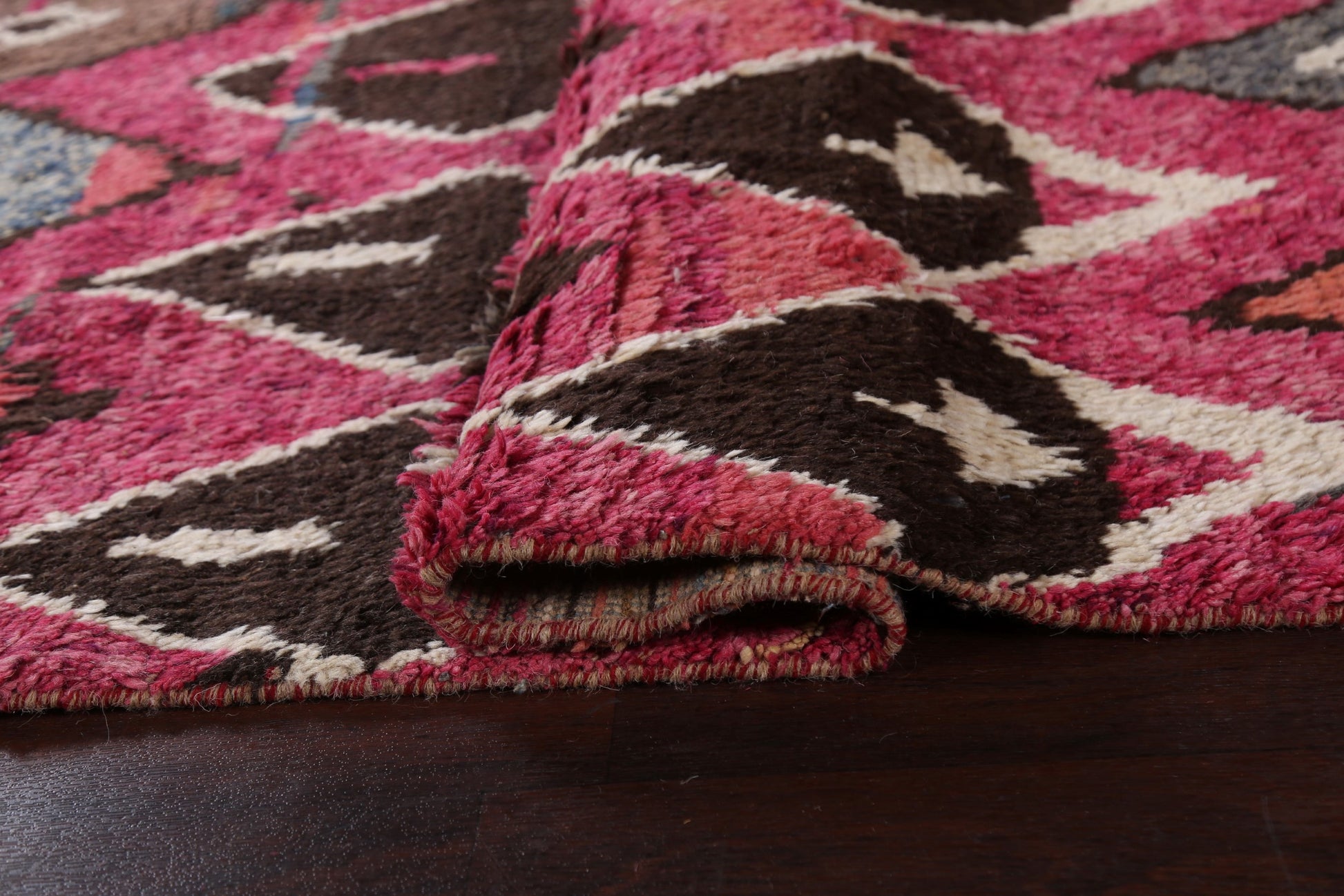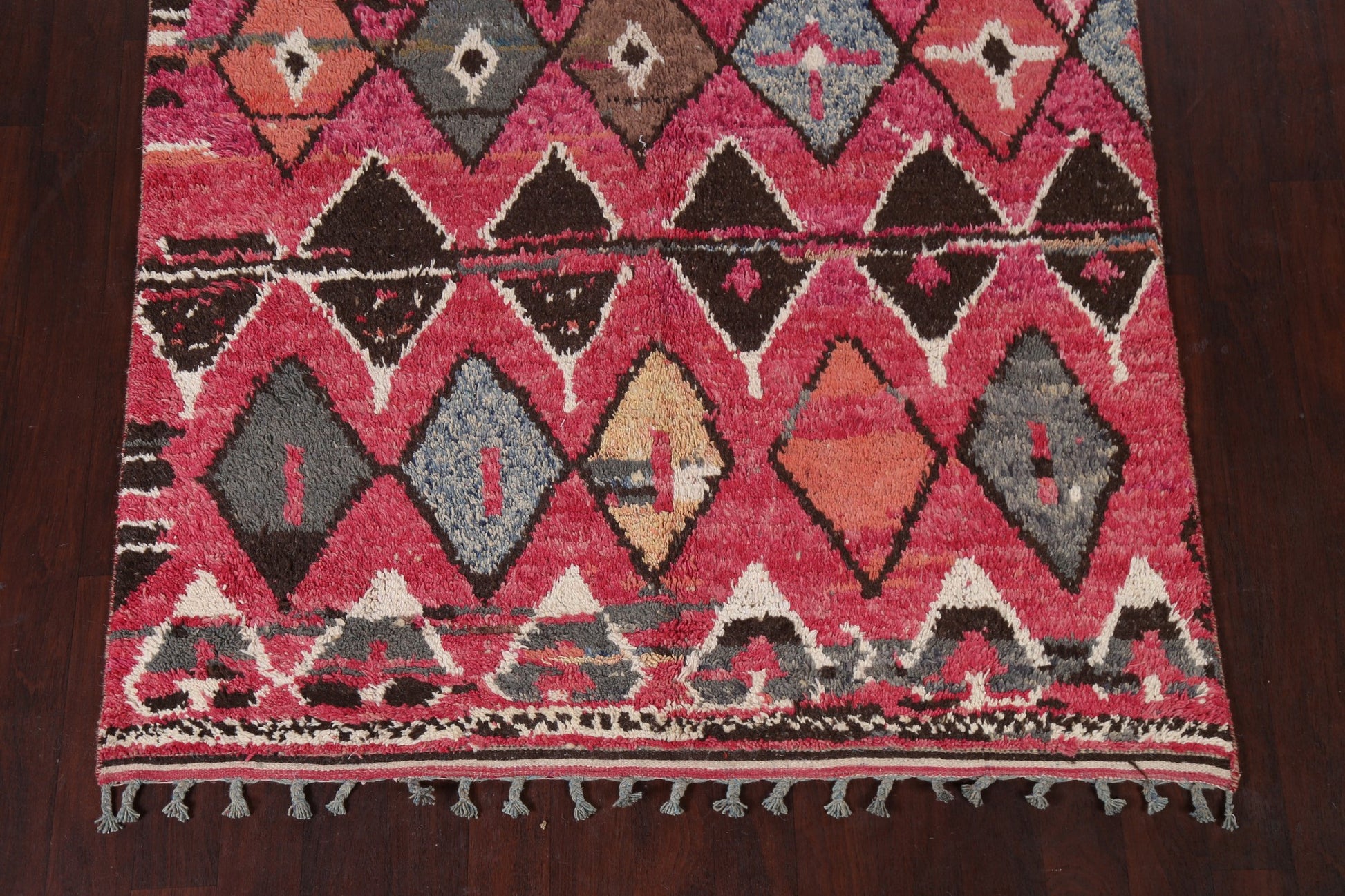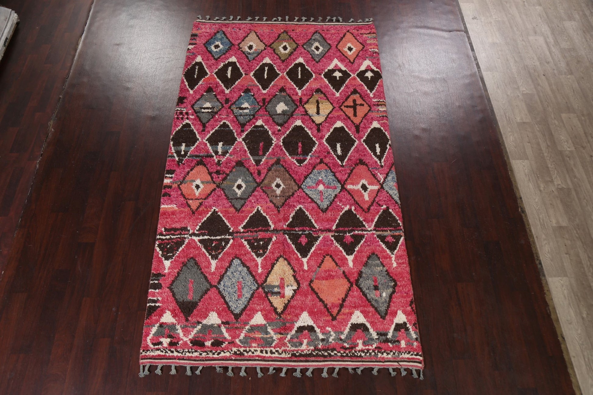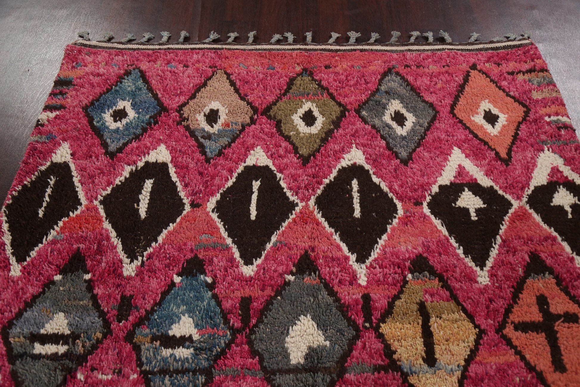 A Beautiful Genuine Morocco Moroccan rug is Hand Knotted by skillful weavers in Morocco with 100% Wool Material. This rug is in New, First Quality condition. dimensions are 10' 6'' X 5' 10'' in foot and 320 X 178 in centimeter. the primary color is Pink.