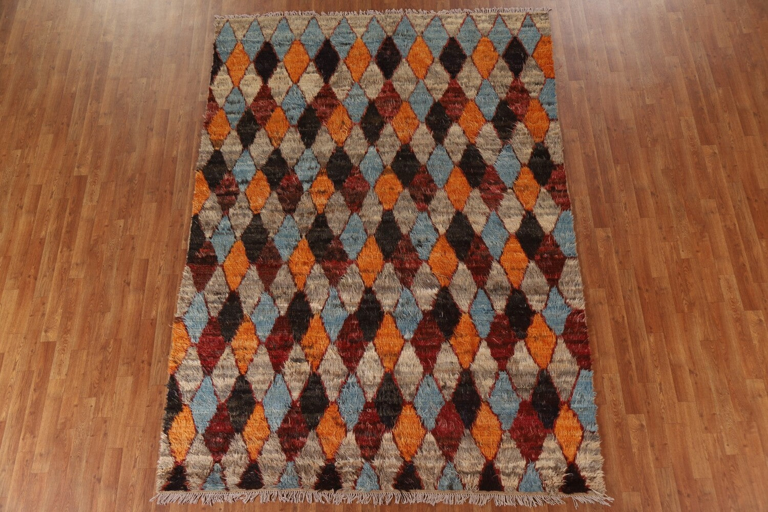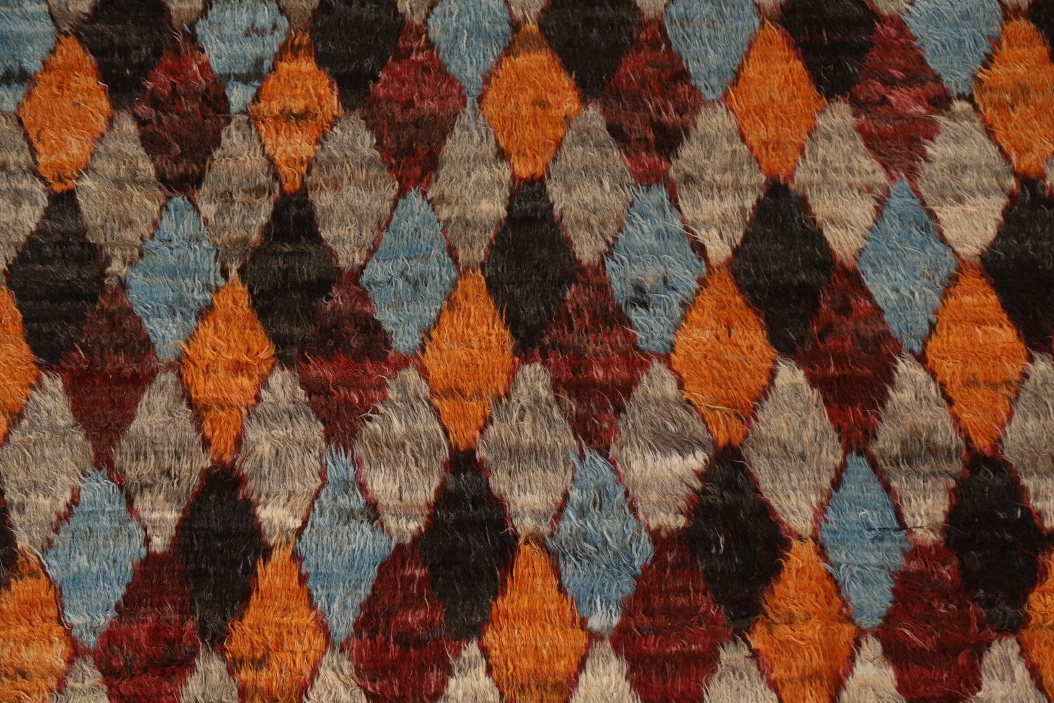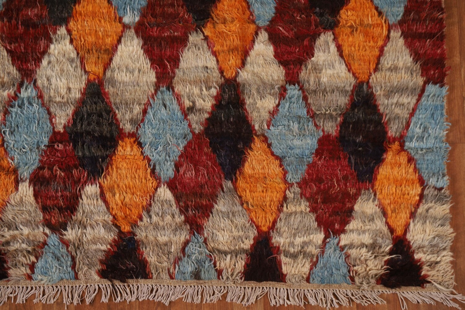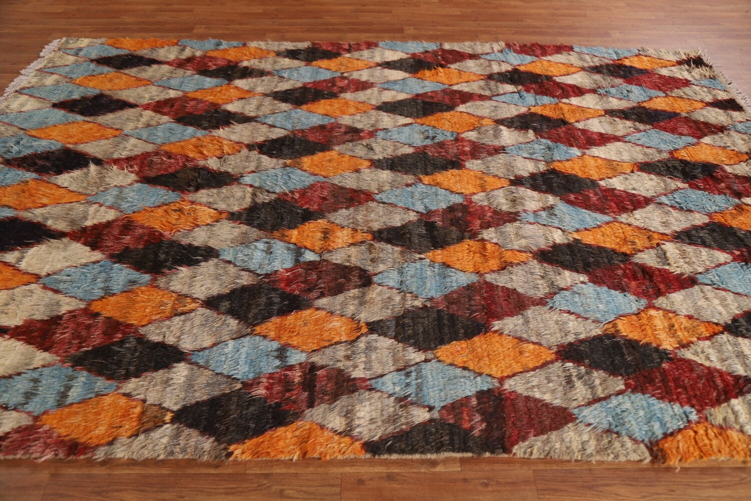A Beautiful Genuine Pakistan Moroccan rug is Hand Knotted by skillful weavers in Pakistan with 100% Wool Material. This rug is in condition. dimensions are 9' 7'' X 6' 9'' in foot and 292 X 206 in centimeter. the primary color is Multi-Colored.