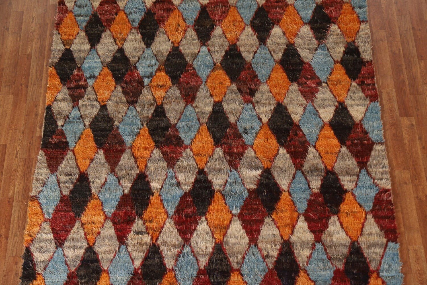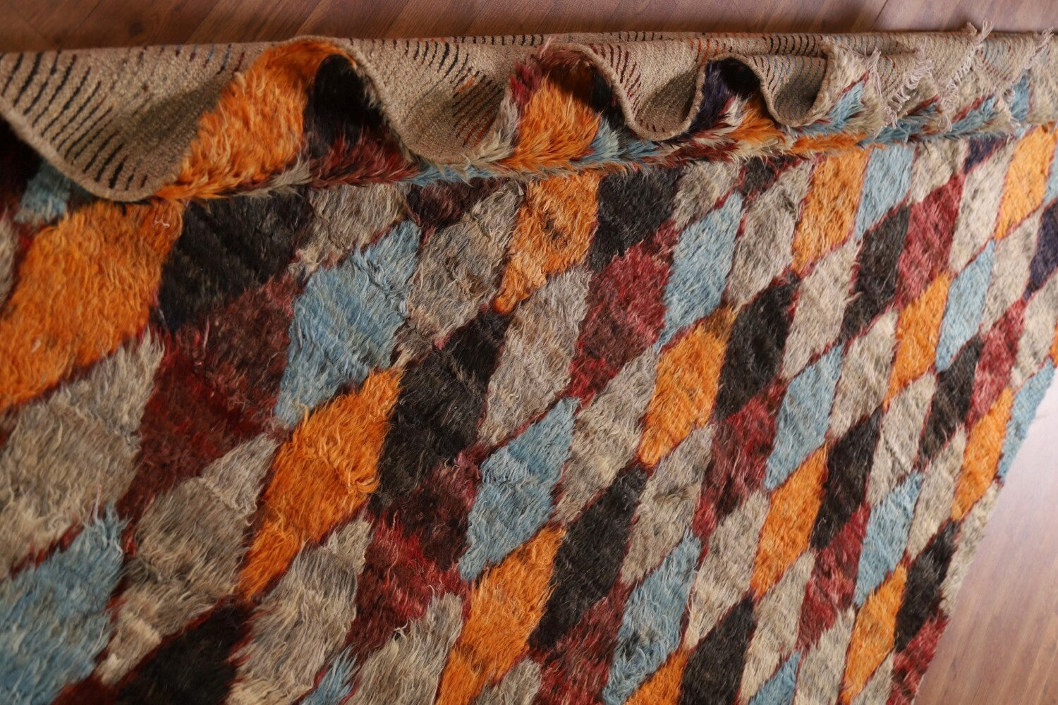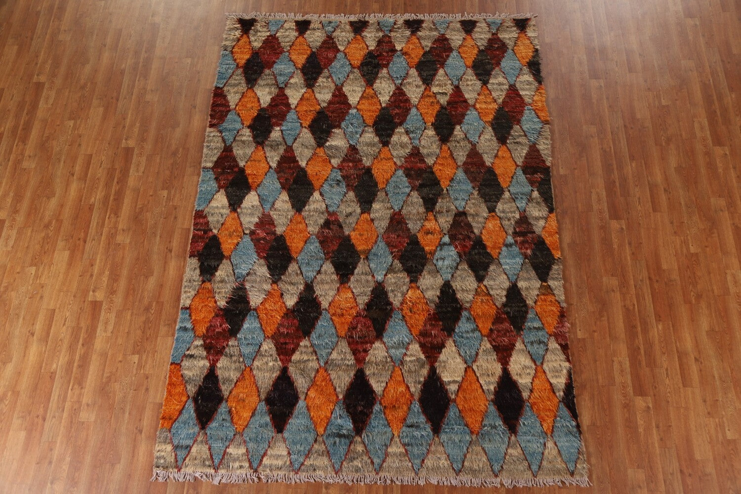A Beautiful Genuine Pakistan Moroccan rug is Hand Knotted by skillful weavers in Pakistan with 100% Wool Material. This rug is in condition. dimensions are 9' 7'' X 6' 9'' in foot and 292 X 206 in centimeter. the primary color is Multi-Colored.