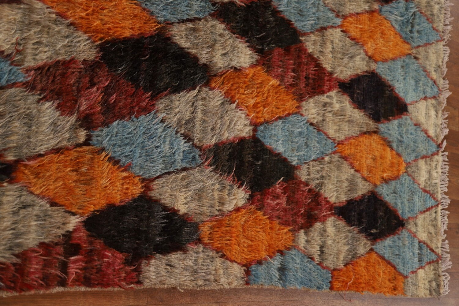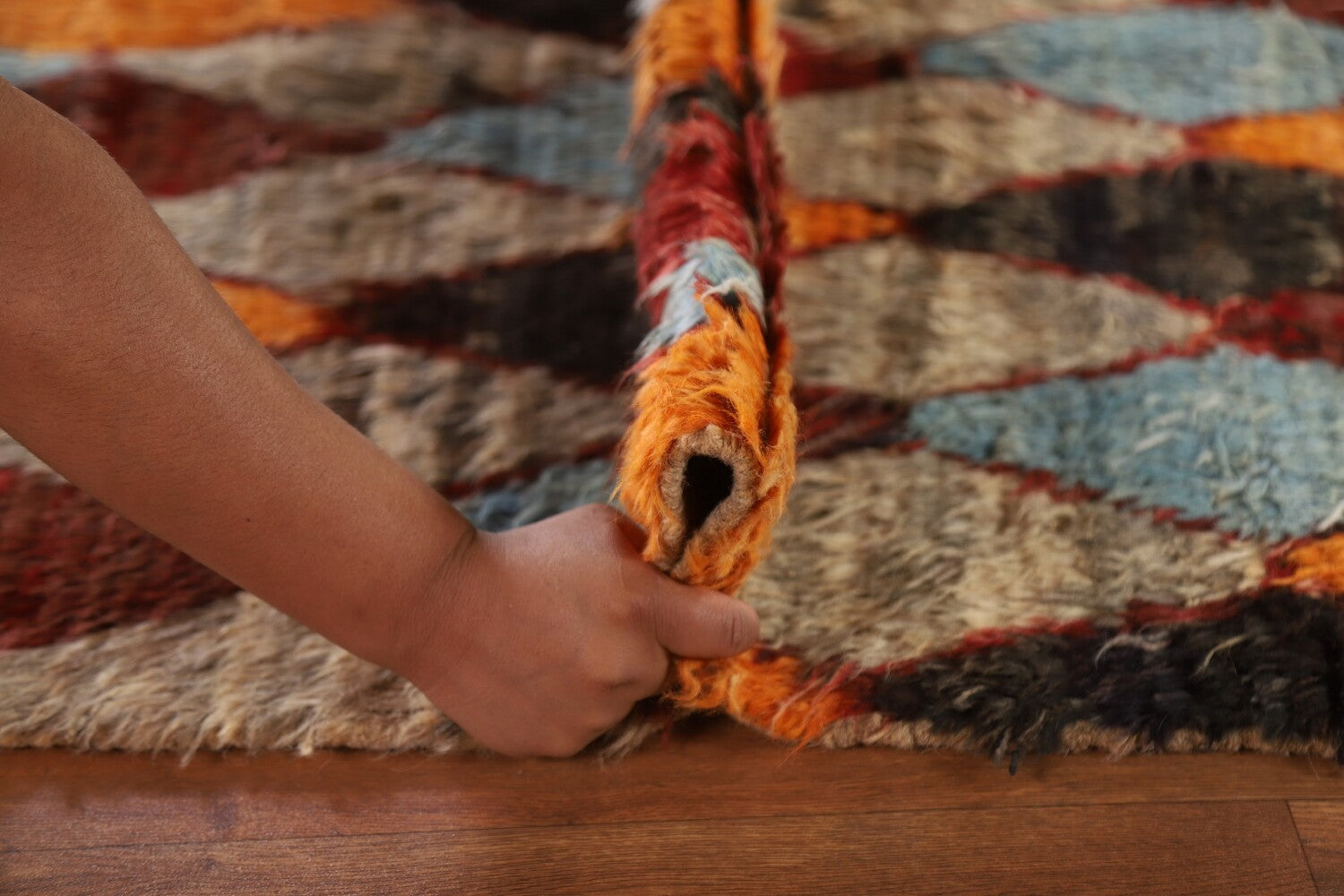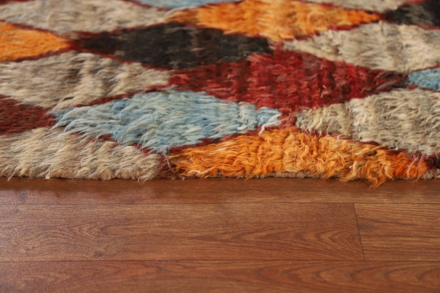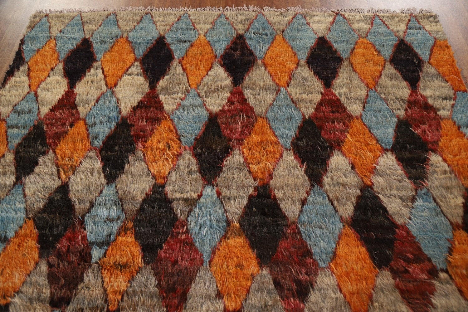A Beautiful Genuine Pakistan Moroccan rug is Hand Knotted by skillful weavers in Pakistan with 100% Wool Material. This rug is in condition. dimensions are 9' 7'' X 6' 9'' in foot and 292 X 206 in centimeter. the primary color is Multi-Colored.