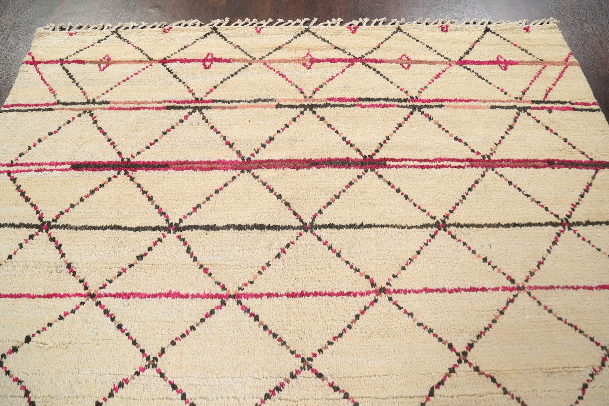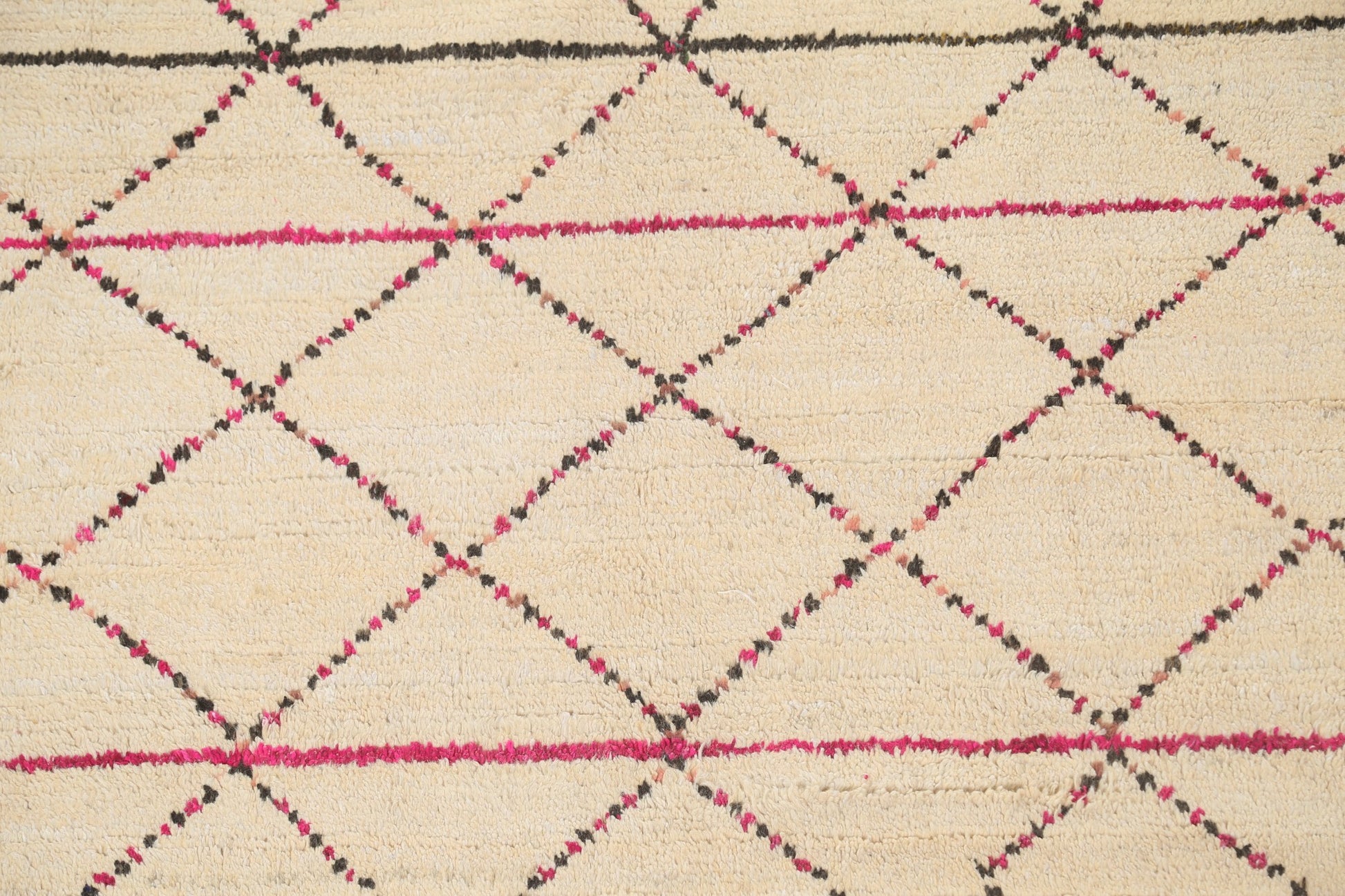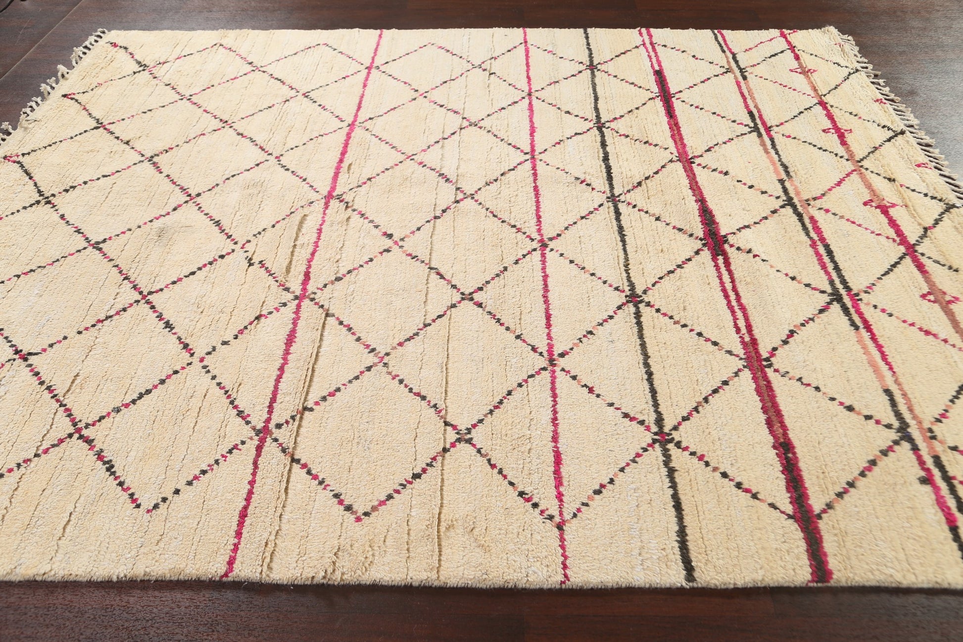 A Beautiful Genuine Morocco Moroccan rug is Hand Knotted by skillful weavers in Morocco with 100% Wool Material. This rug is in New, First Quality condition. dimensions are 9' 9'' X 8' 0'' in foot and 297 X 244 in centimeter. the primary color is Beige & Ivories.