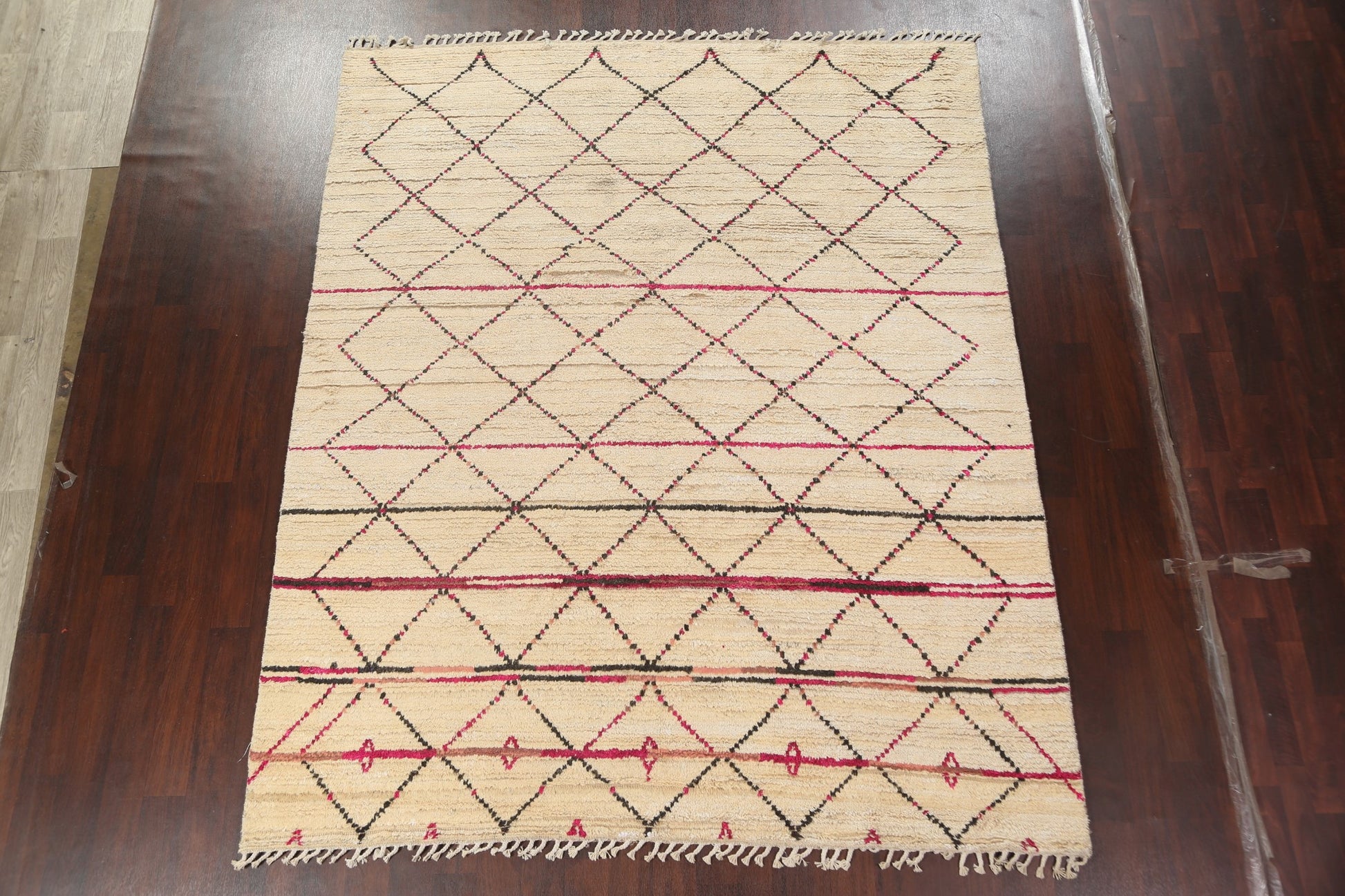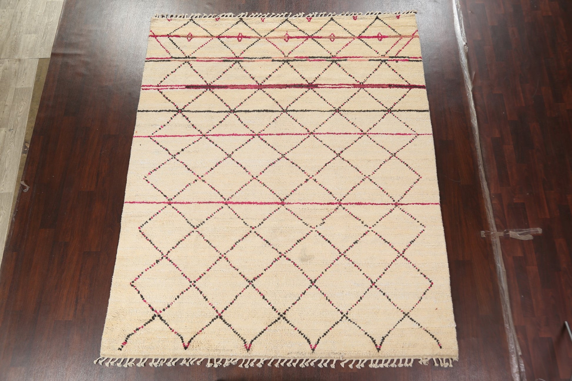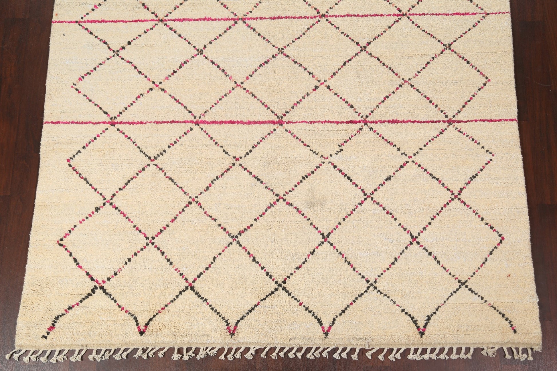 A Beautiful Genuine Morocco Moroccan rug is Hand Knotted by skillful weavers in Morocco with 100% Wool Material. This rug is in New, First Quality condition. dimensions are 9' 9'' X 8' 0'' in foot and 297 X 244 in centimeter. the primary color is Beige & Ivories.