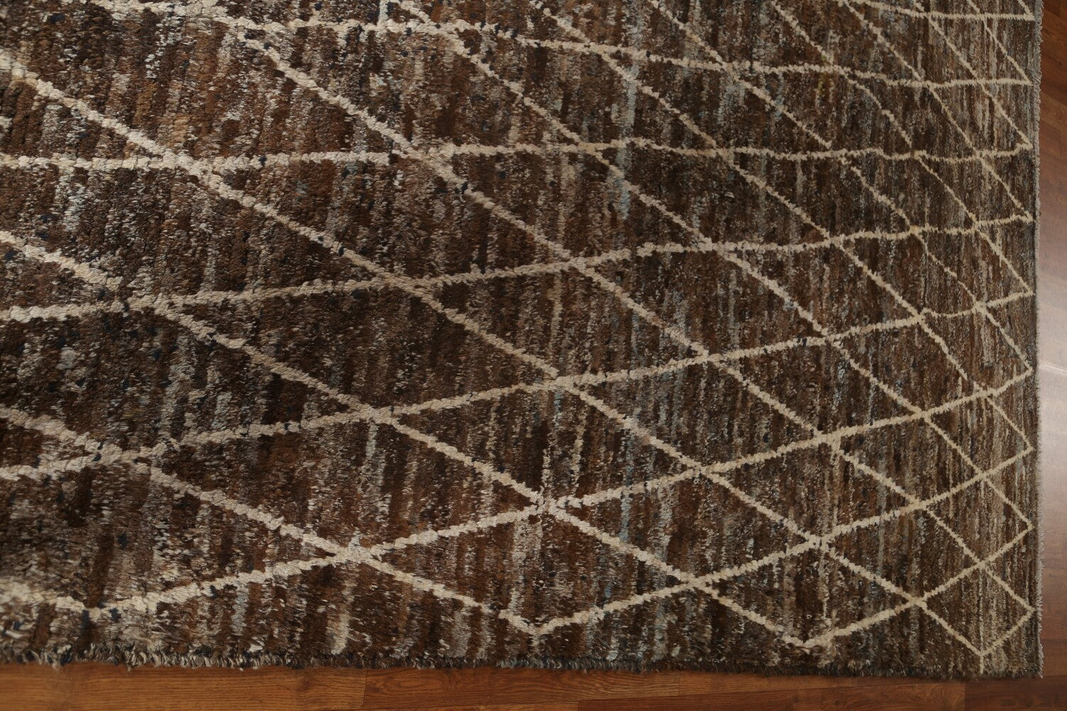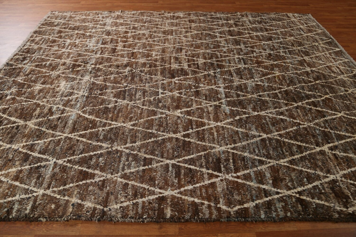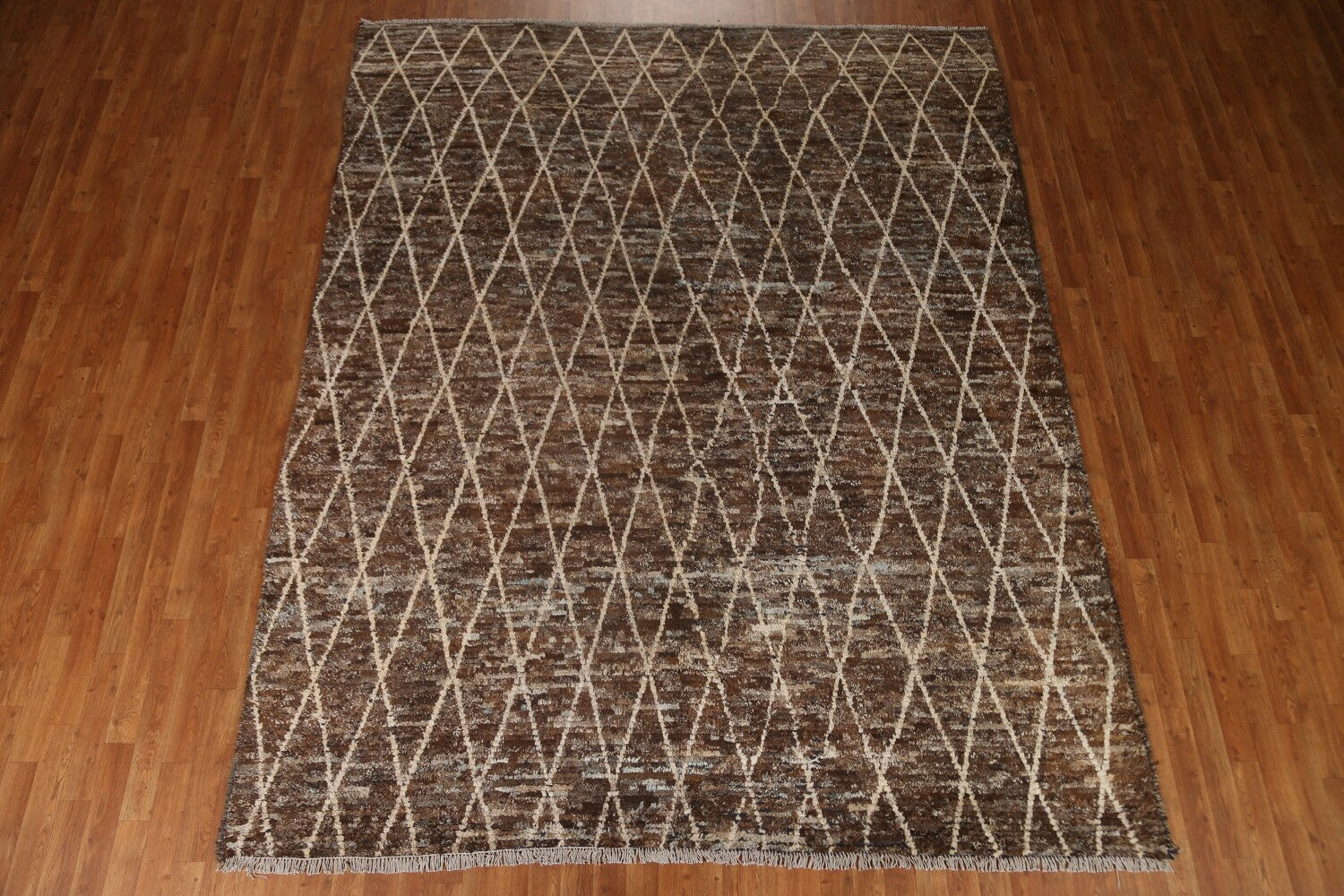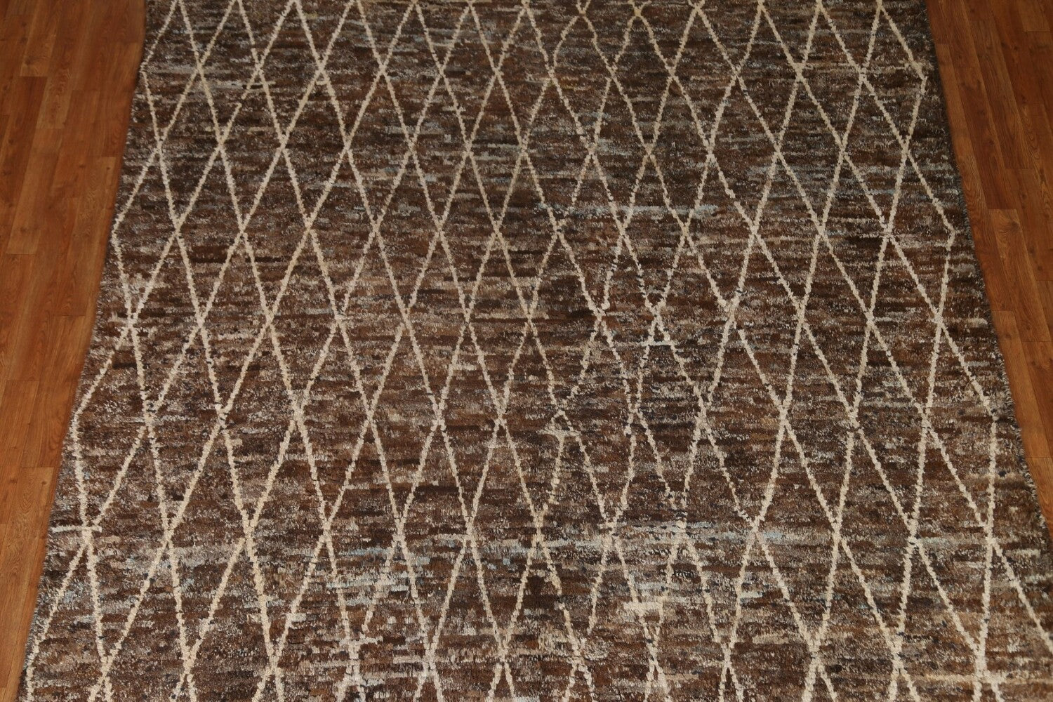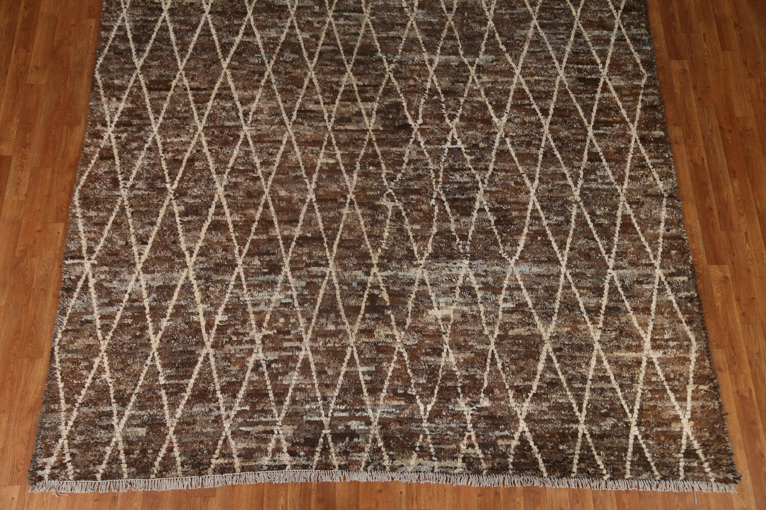 A Beautiful Genuine Pakistan Moroccan rug is Hand Knotted by skillful weavers in Pakistan with 100% Wool Material. This rug is in condition. dimensions are 10' 2'' X 8' 2'' in foot and 310 X 249 in centimeter. the primary color is Brown.