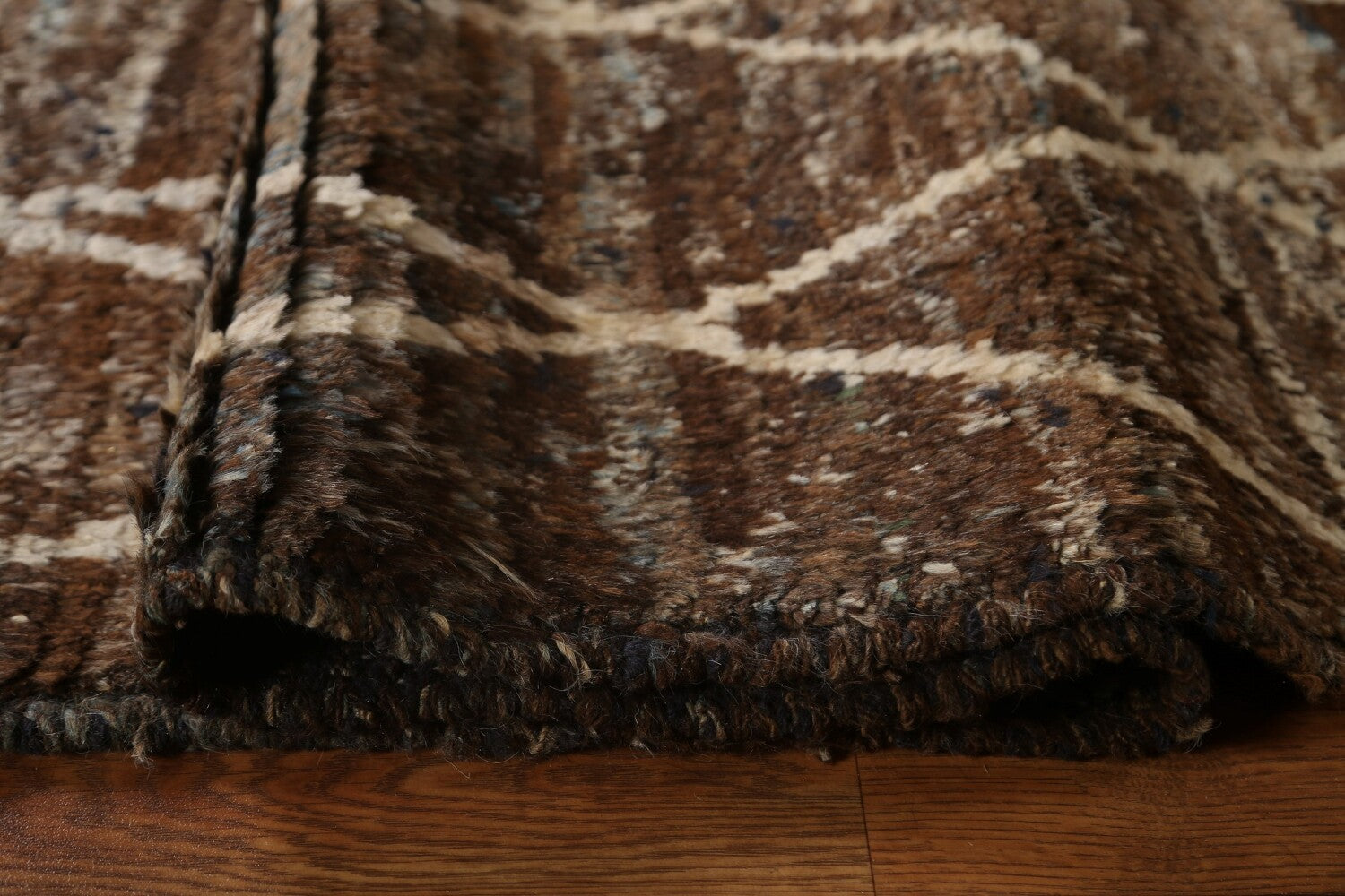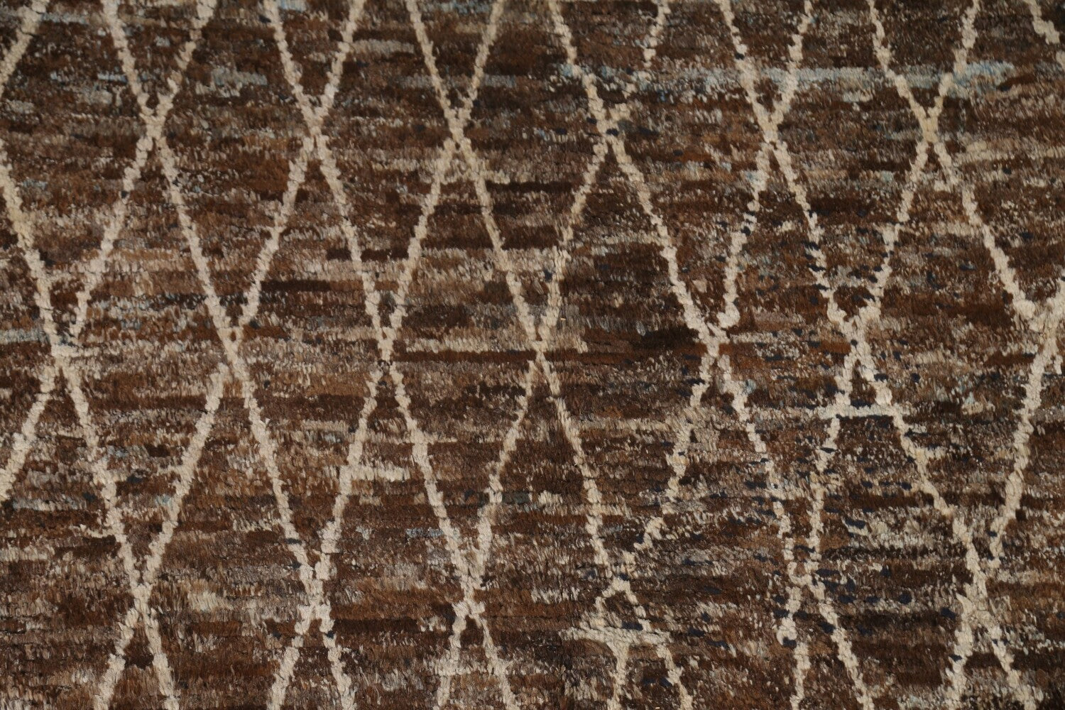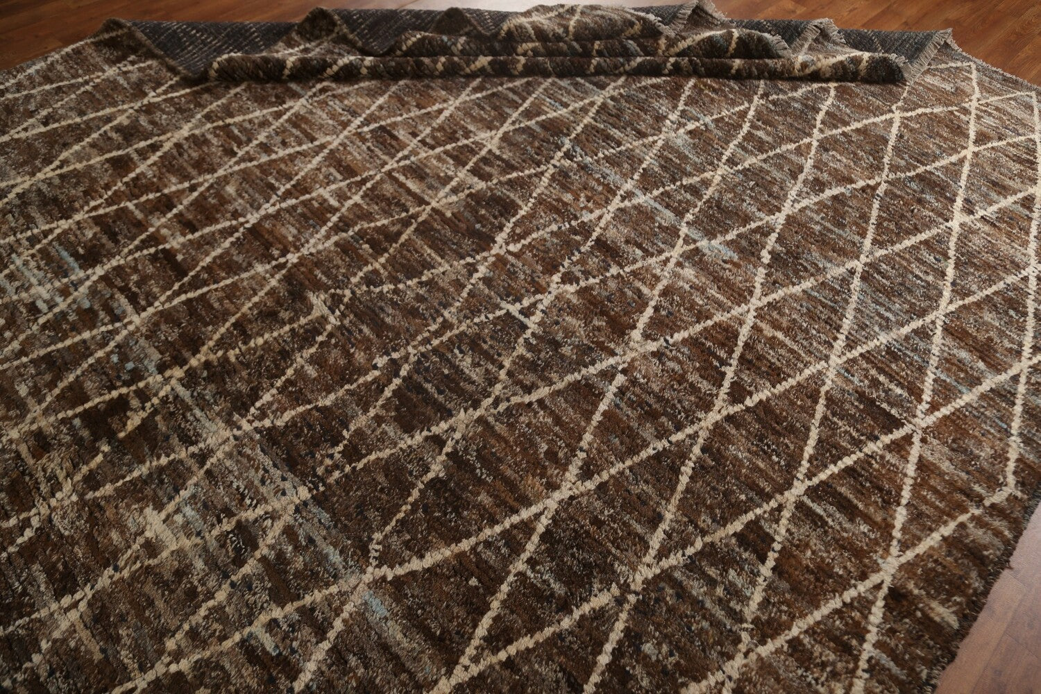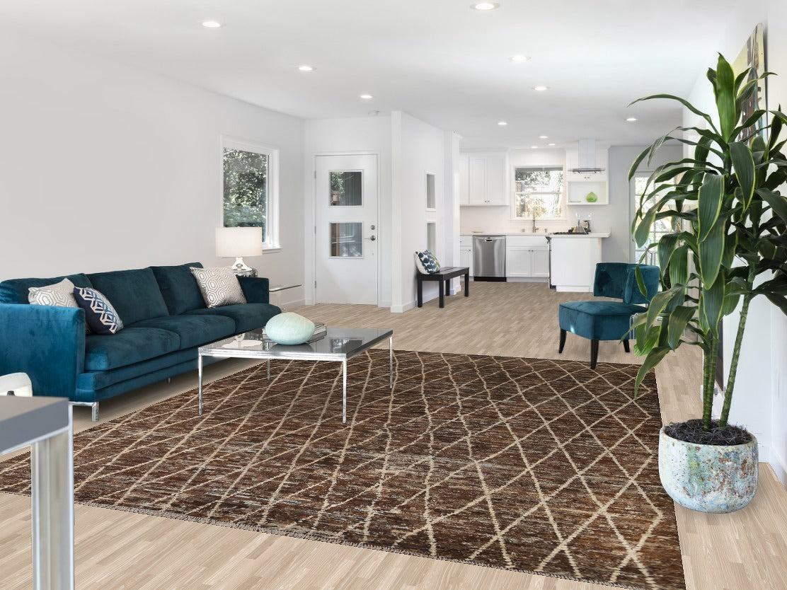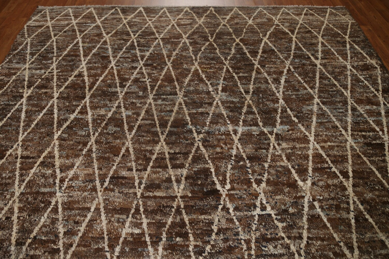 A Beautiful Genuine Pakistan Moroccan rug is Hand Knotted by skillful weavers in Pakistan with 100% Wool Material. This rug is in condition. dimensions are 10' 2'' X 8' 2'' in foot and 310 X 249 in centimeter. the primary color is Brown.