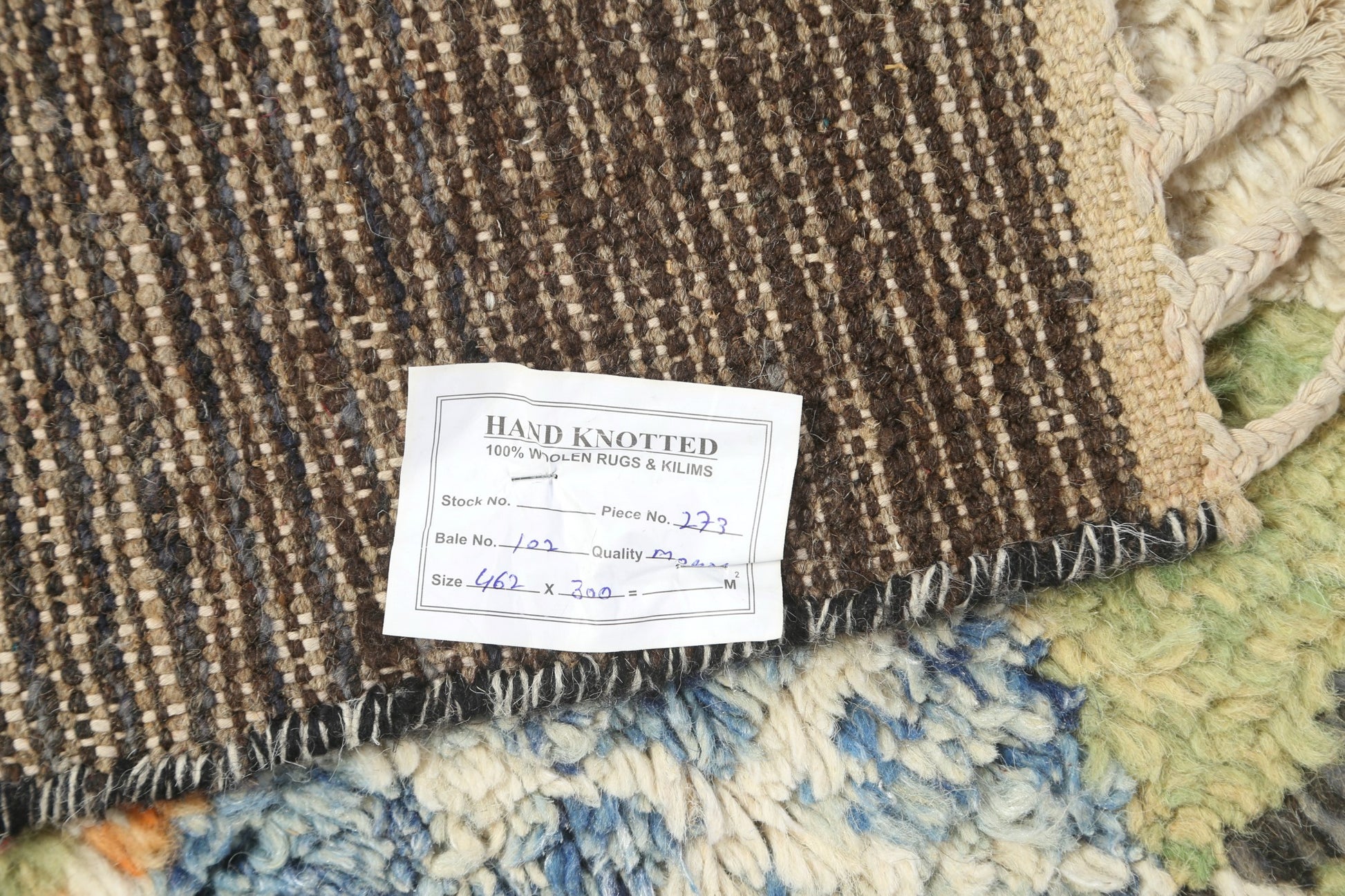 A Beautiful Genuine Morocco Moroccan rug is Hand Knotted by skillful weavers in Morocco with 100% Wool Material. This rug is in New, First Quality condition. dimensions are 15' 4'' X 9' 10'' in foot and 467 X 300 in centimeter. the primary color is Multi-Colored.