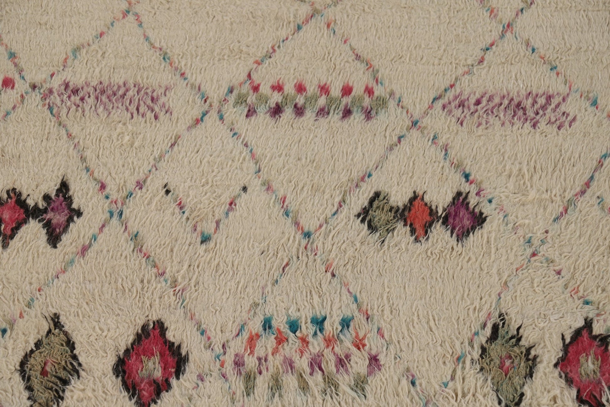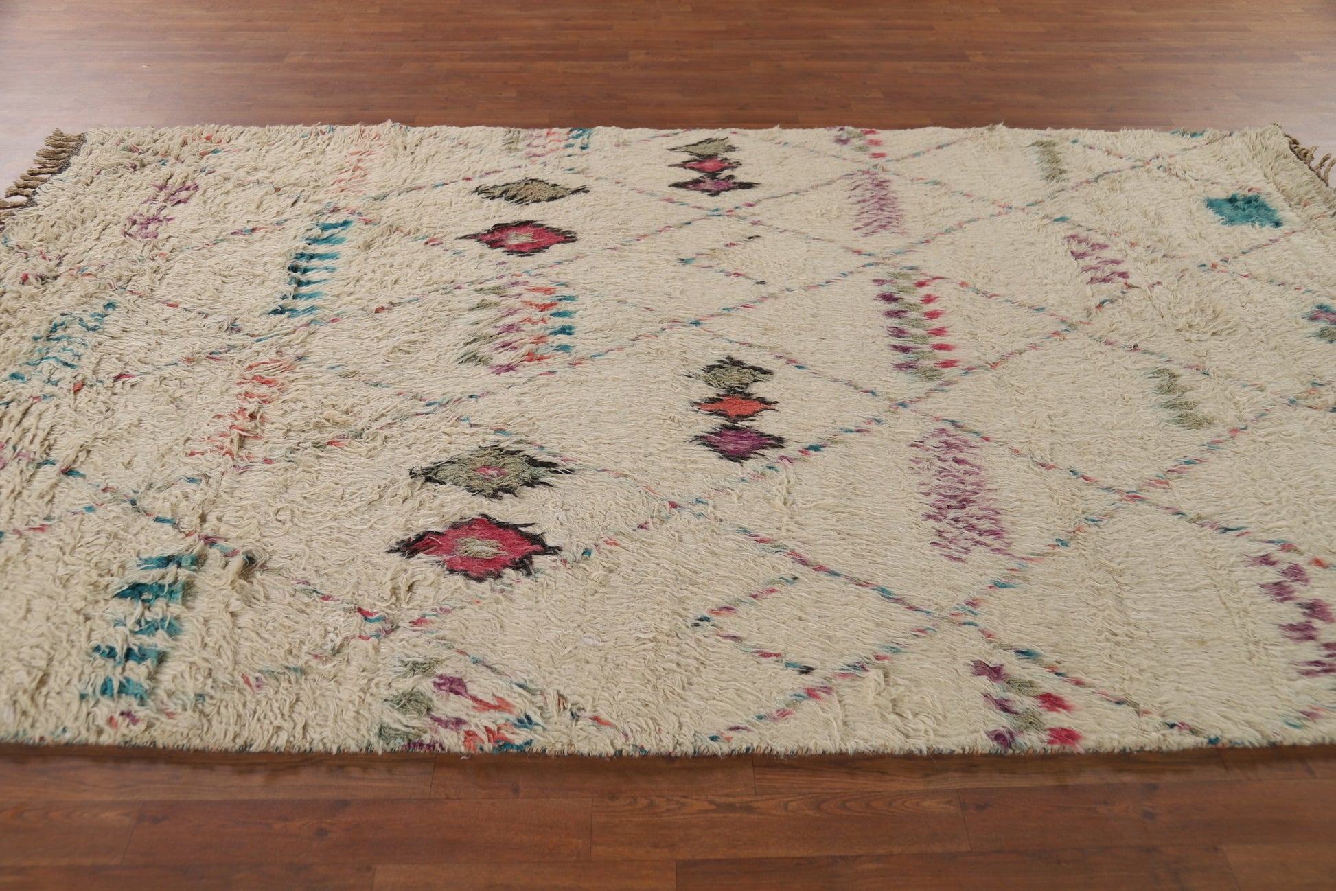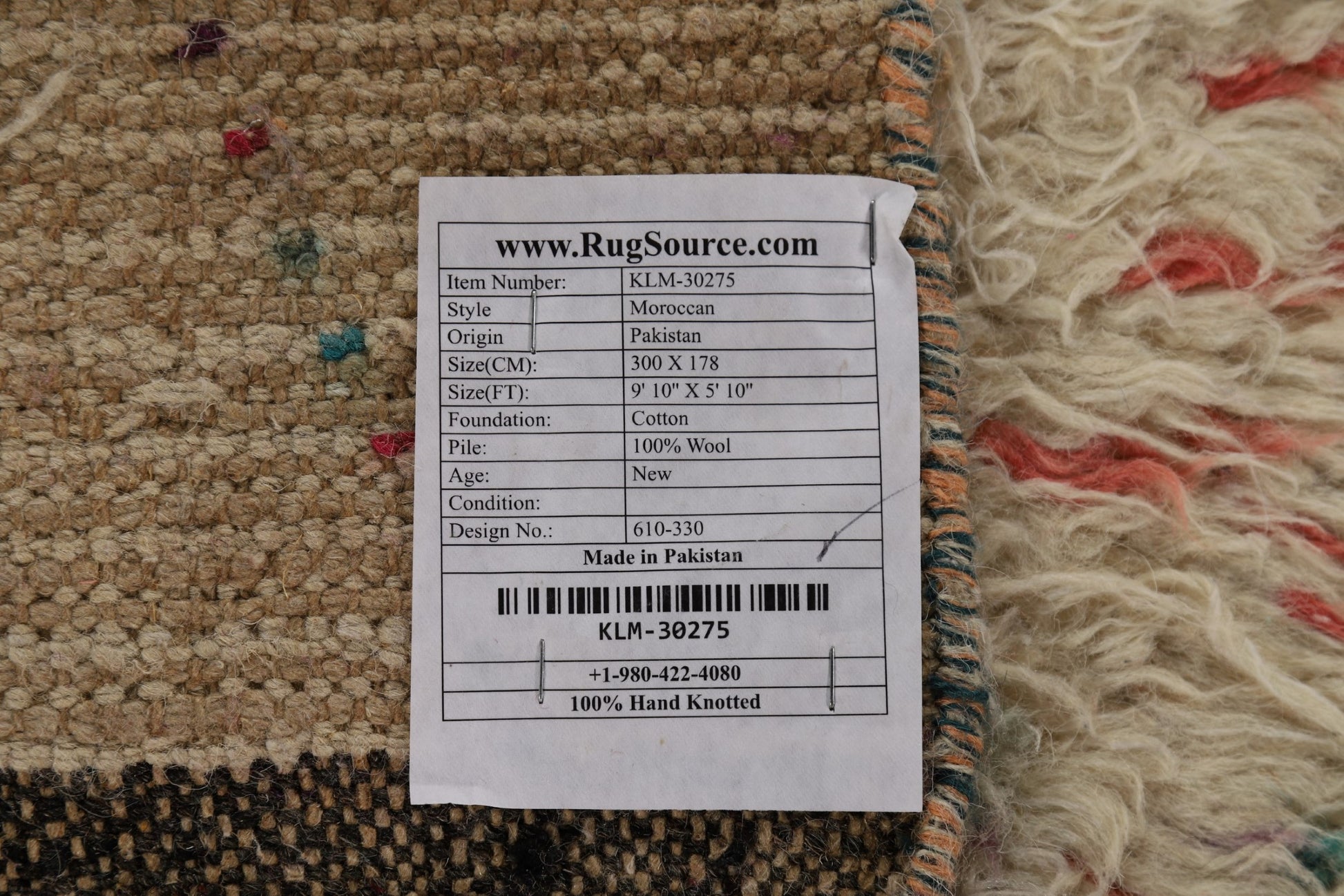 A Beautiful Genuine Pakistan Moroccan rug is Hand Knotted by skillful weavers in Pakistan with 100% Wool Material. This rug is in condition. dimensions are 9' 10'' X 5' 10'' in foot and 300 X 178 in centimeter. the primary color is Beige & Ivories.