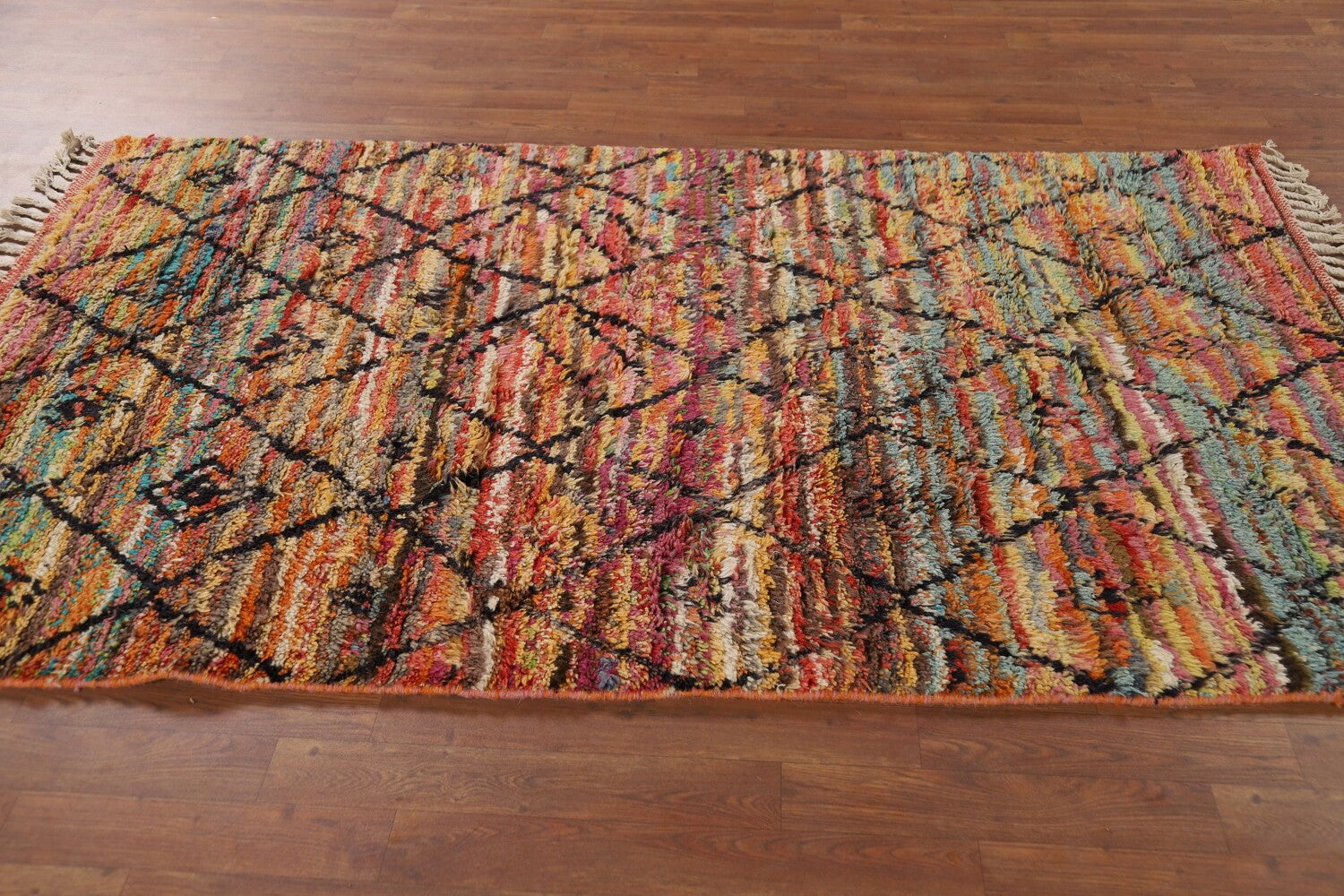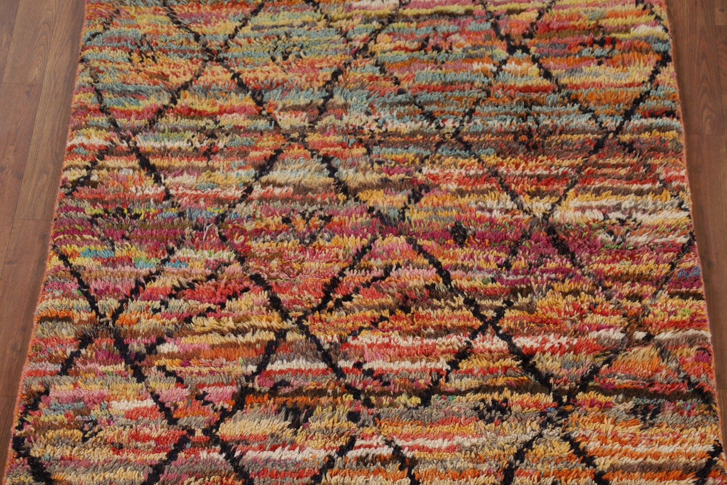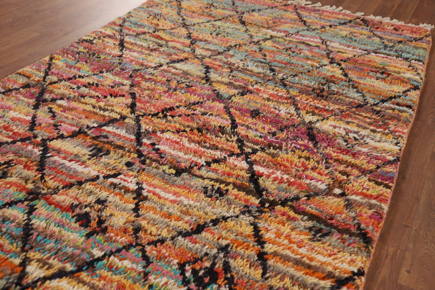 A Beautiful Genuine Pakistan Moroccan rug is Hand Knotted by skillful weavers in Pakistan with 100% Wool Material. This rug is in New, First Quality condition. dimensions are 6' 11'' X 4' 2'' in foot and 211 X 127 in centimeter. the primary color is Multi-Colored.